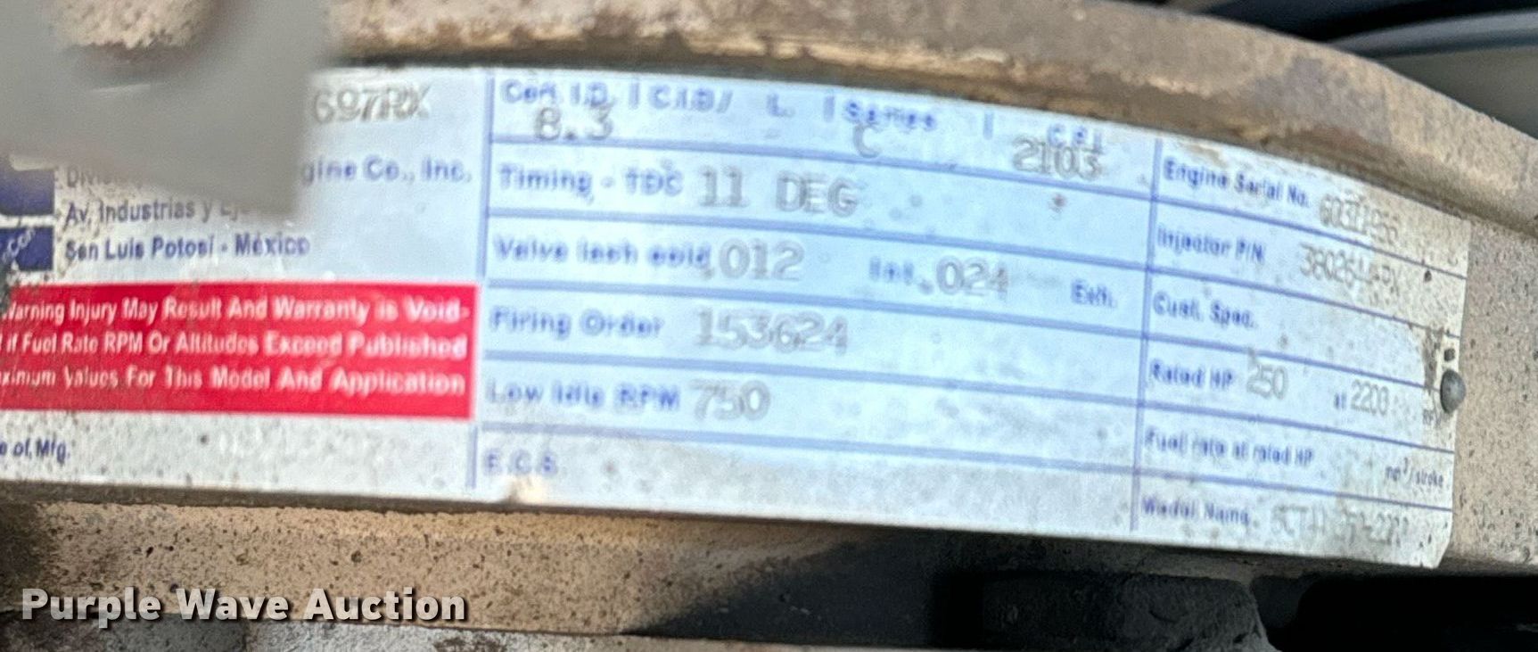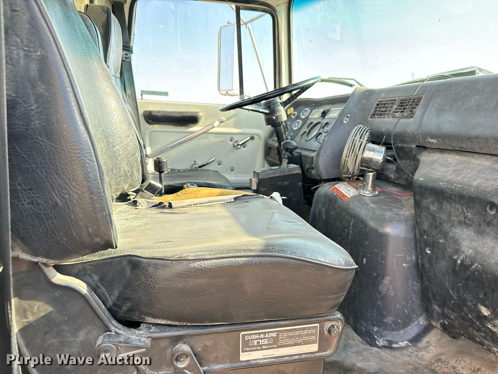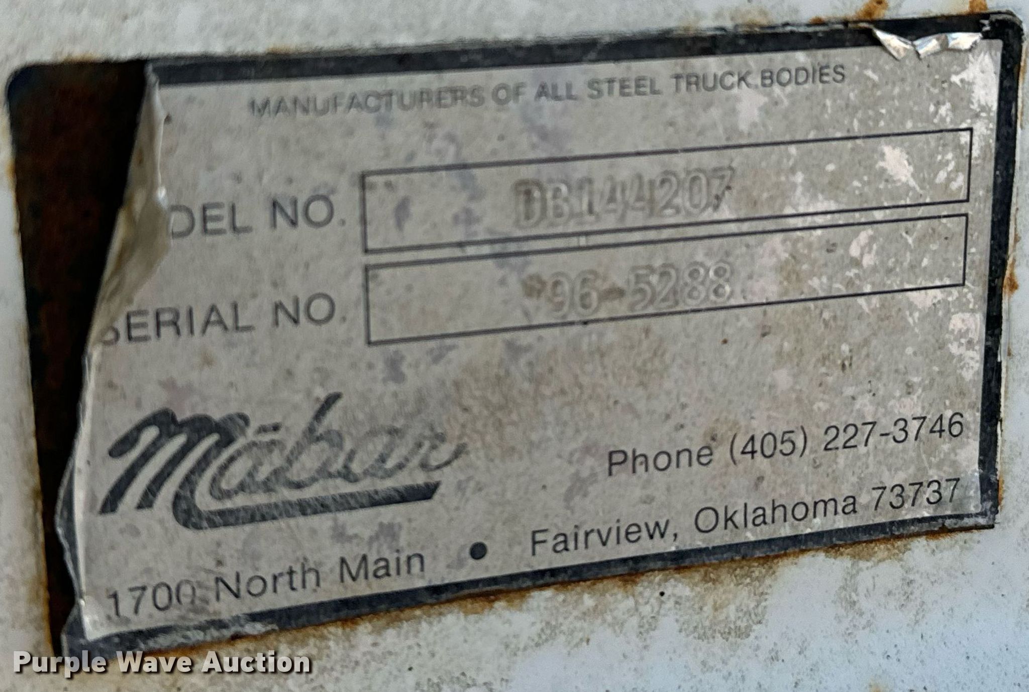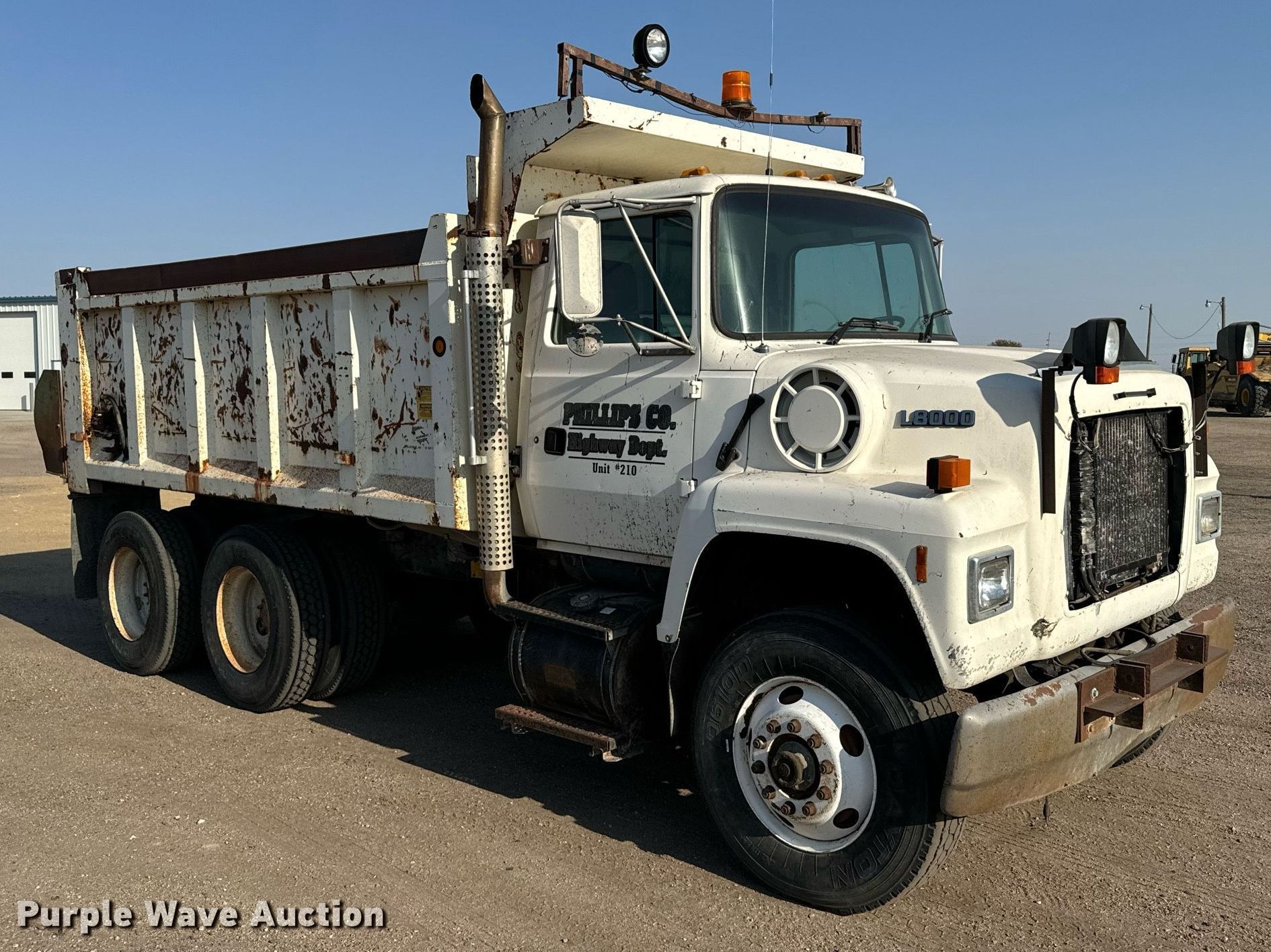 1996 Ford L8000 dump truck. Miles: 349,185 on odometer, Hours: 2,269 on meter, VIN: 1FDYW82E5TVA31224. Engine Cummins, Displacement: 8.3L, Cylinders: 6, Fuel type: Diesel. Transmission Allison, Automatic. Chassis Axles: Tandem, Suspension: Spring over walking beam, Brakes: Air, PTO, GVWR: 53,220 lbs, Wheelbase: 174". Interior AC, Heat. Features Dump bed Mabar DB144207, 14' L x 96" W, Side height: 46", Side board height: 7", Bed type: Steel, Ram: Single, End gate: Air operated, Plow Width: 144", Snowplow. Tires Size: 11R22.5. Notes Windshield chipped or cracked. Kansas title. Phillips County Road and Bridge. Phillipsburg, KS 67661