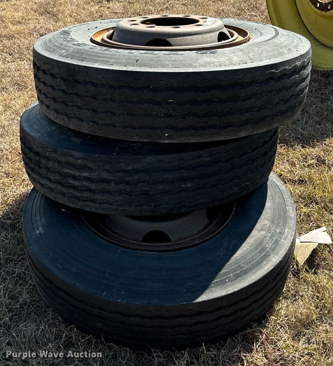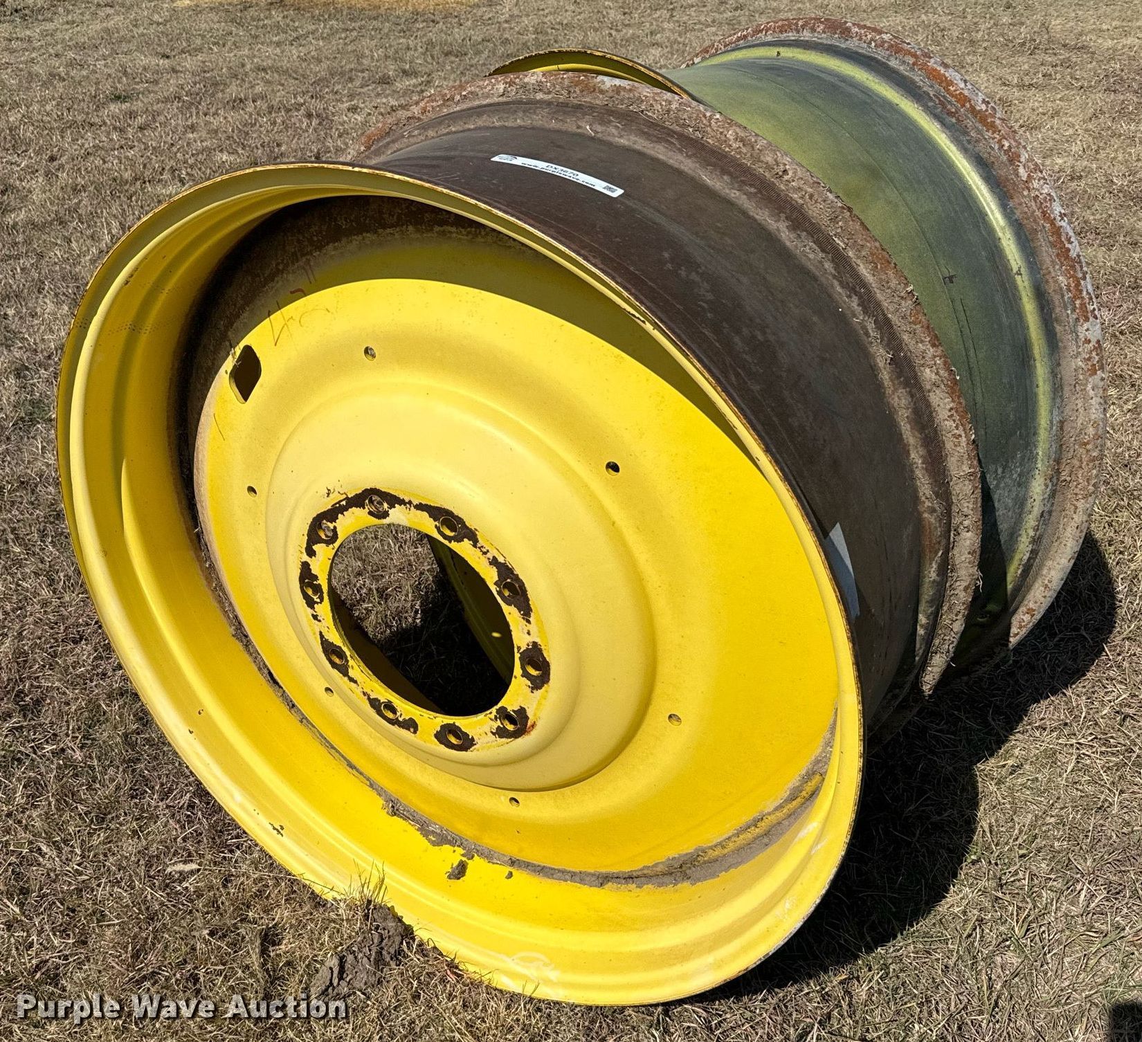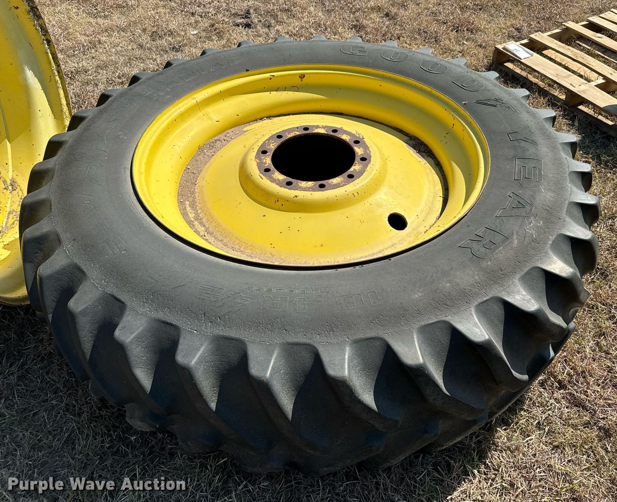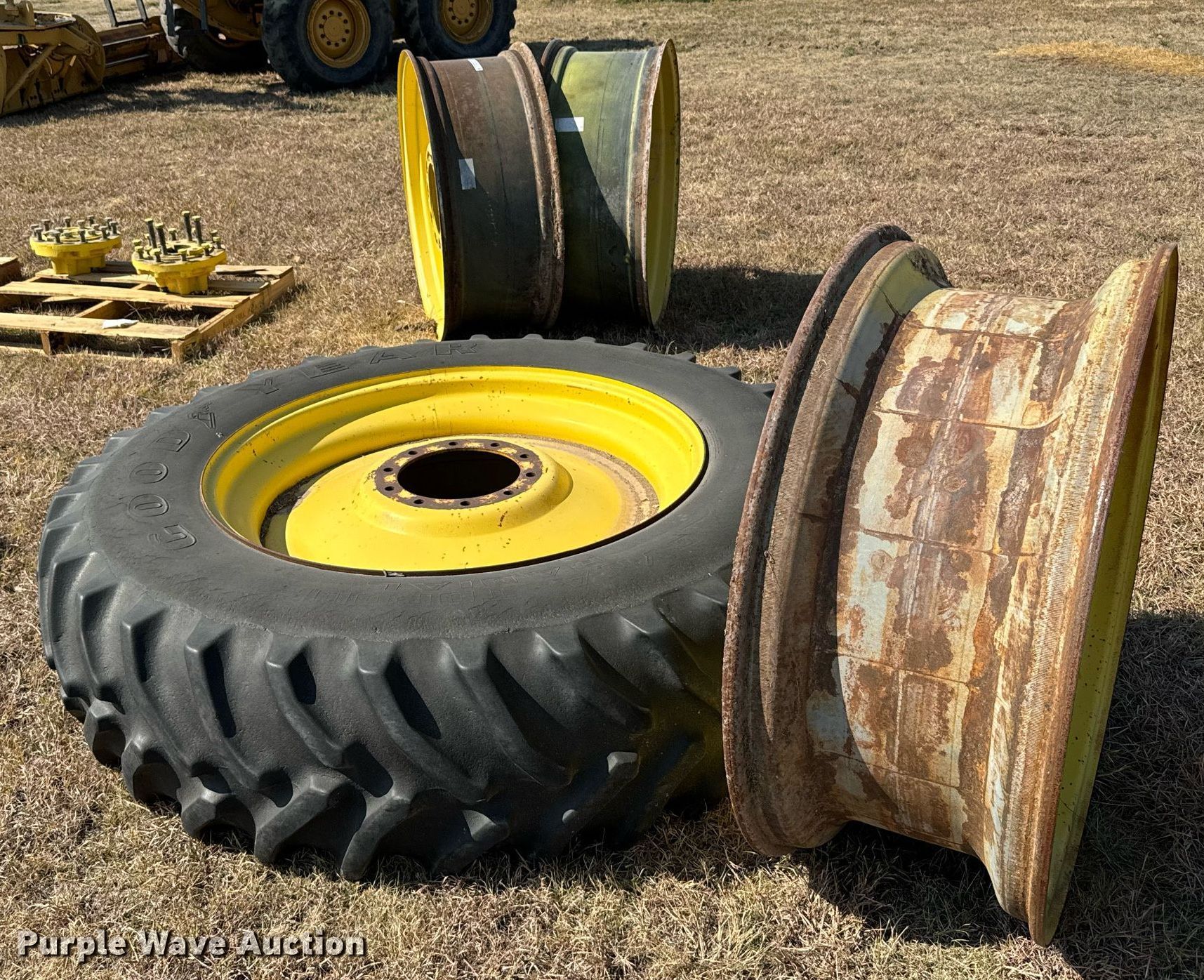 Purple Wave is selling a used Industrial Tires or Tracks in Kansas. This item is a Tractor tires and wheels with the following: Wheels, 16x38, (3) 16" x 42", Tires and wheels, 18.4R42, (3) 10.00R20