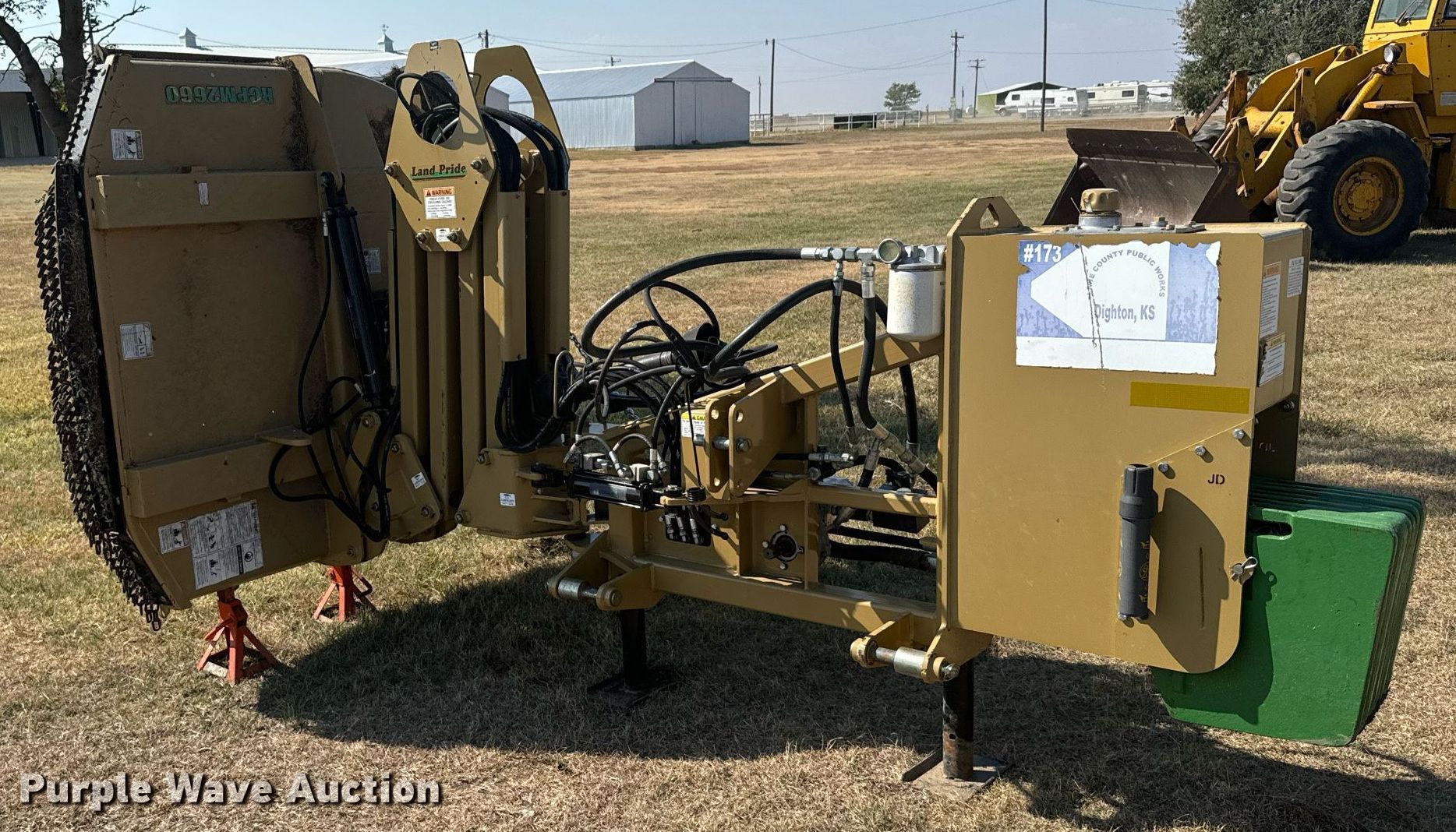 2014 Land Pride RCPM2660 side boom rotary mower. Serial: 848053. Features Width: 5', Hydraulic lift, Hydraulic fold, PTO: 540, Hitch: Three point, Suitcase weights: 8. Notes (8) additional blades. Lane County Public Works. Dighton, KS 67839