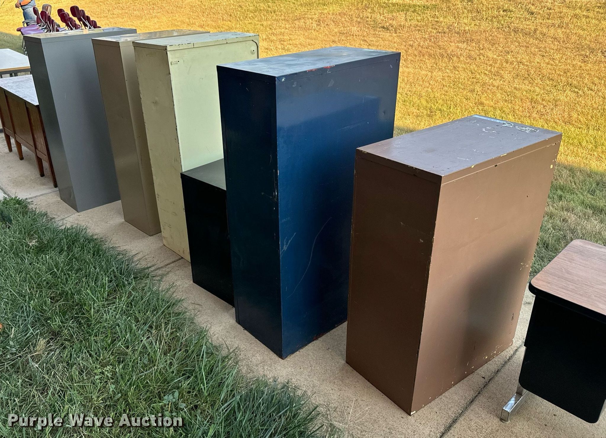 Purple Wave is selling a used Furniture in Kansas. This item is a Office furniture with the following: Filing cabinets: 7, Magazine stand