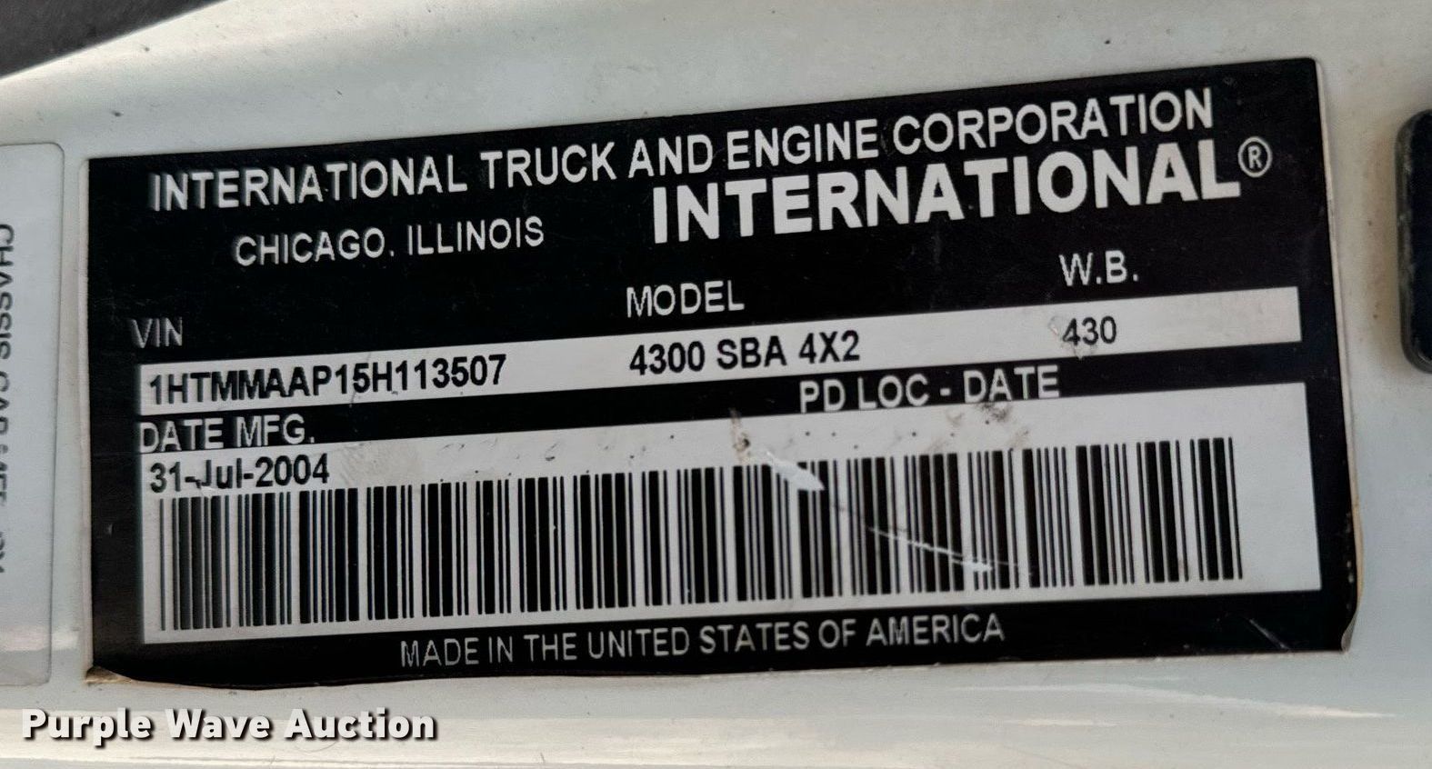 Take a look at this used 2005 International 4300 SBA dump truck being sold on November 5th, 2024 in the SOLD! November 05 Government Auction made by International. Take a look at all of the item information below or take a look at similar auctions for Construction Trucks.