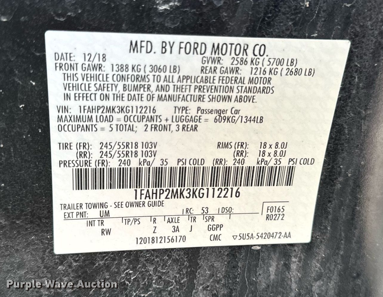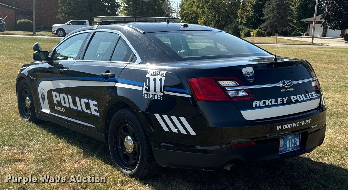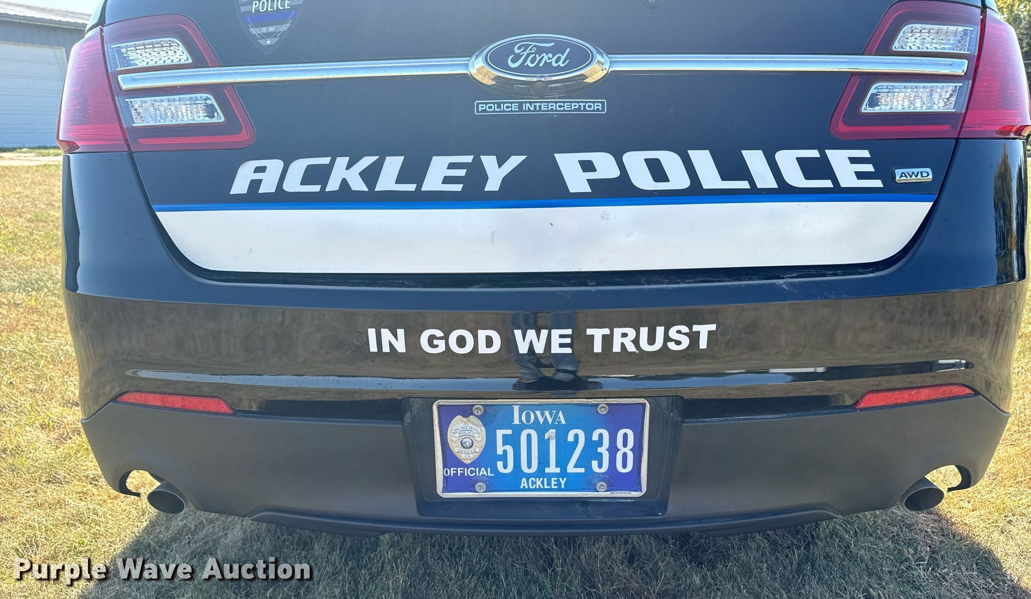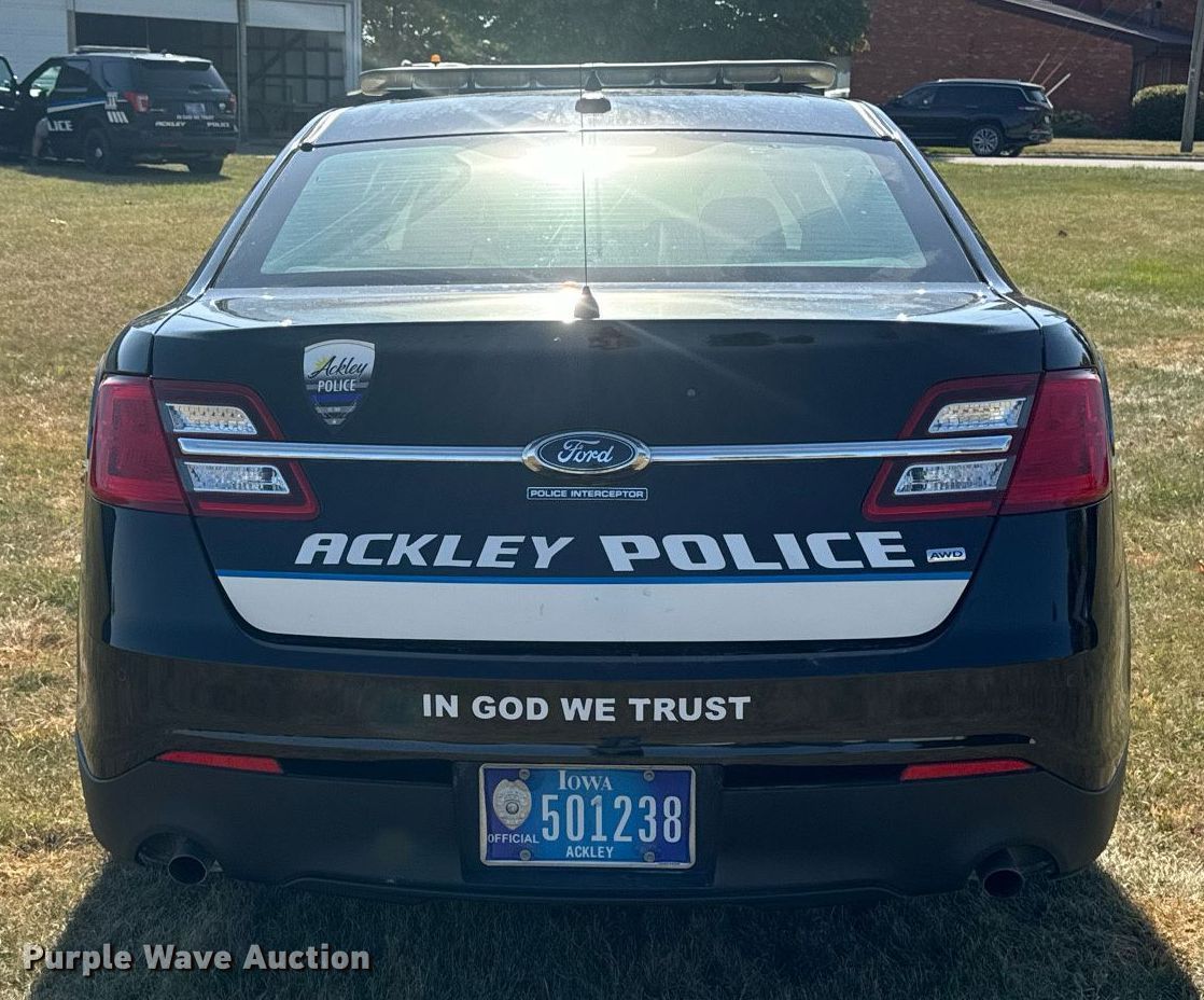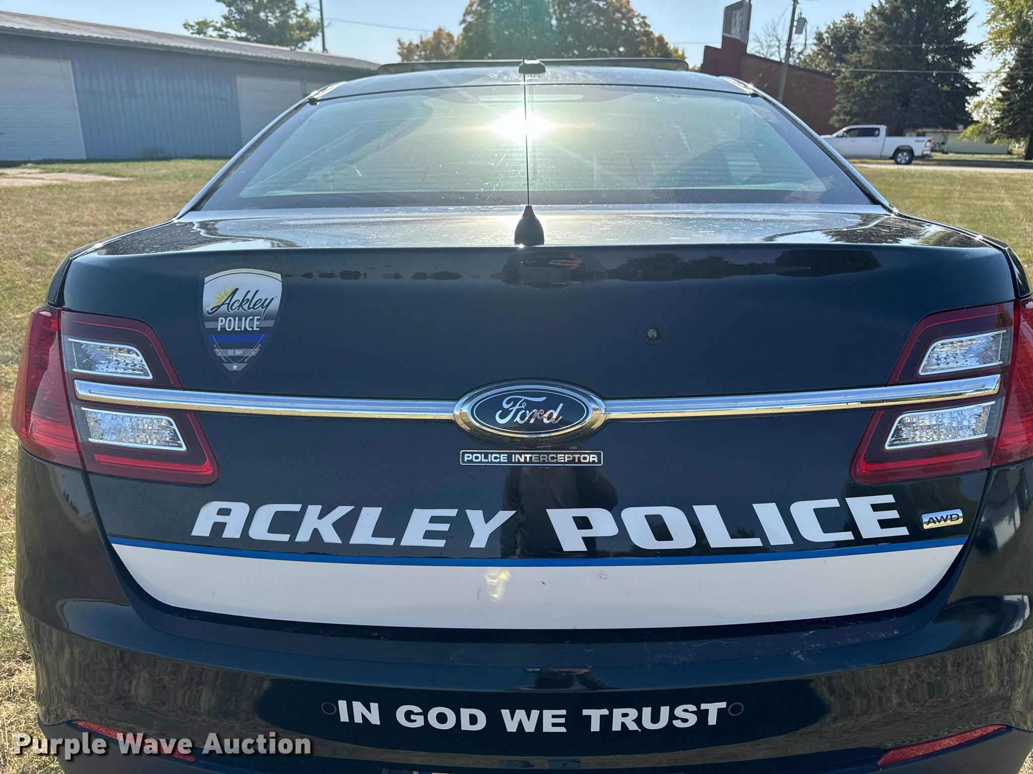 2019 Ford Taurus Police Interceptor. Miles: 25,084 on odometer, Hours: 2,089 on meter, VIN: 1FAHP2MK3KG112216. Engine Displacement: 3.7L V6 DOHC, Cylinders: 6, Fuel type: Gas. Transmission Automatic, All wheel drive. Interior AC, Heat, Seat: Power driver, Heated mirrors, Power windows, Power locks, Cruise control, Backup camera. Tires Size: 245/55R18. Notes Dash warning indicator: TPMS. Iowa title. Title distribution may be delayed up to 30 days from verification of funds. City Of Ackley. Ackley, IA 50601