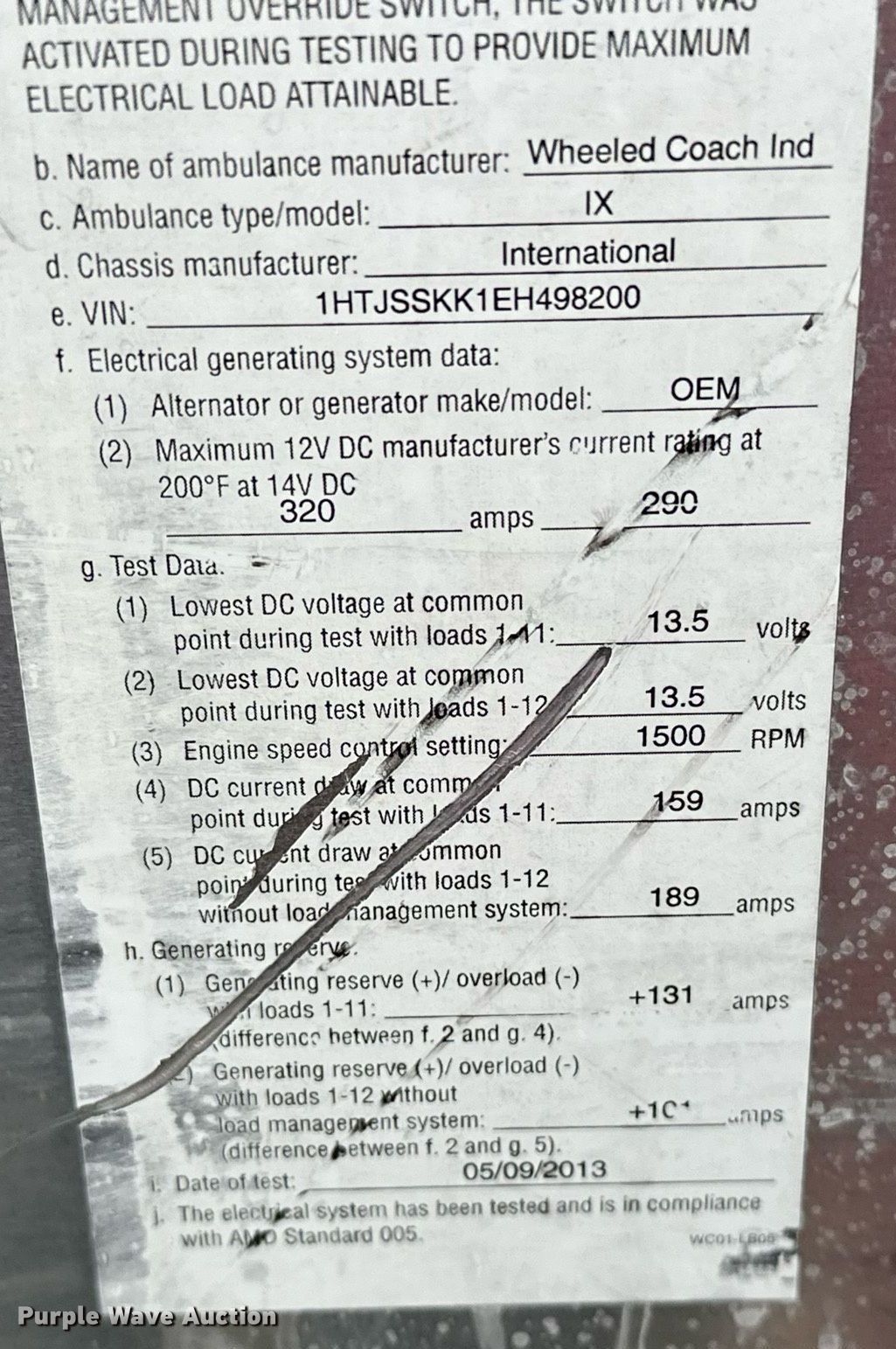 2014 International TerraStar SFA 4X2 ambulance. Miles: Unknown, VIN: 1HTJSSKK1EH498200, Unit #: 1402. Engine International Maxxforce, Displacement: 6.4L, Cylinders: 8, Fuel type: Diesel. Transmission Automatic. Chassis Axles: Single, Suspension: Air, Brakes: Hydraulic, GVWR: 19,000 lbs. Interior AC, Heat, Heated mirrors, Power windows, Power locks, Cruise control, Backup camera, Auxiliary controls. Features Ambulance body Wheeled Coached Industries, Oxygen hookups. Tires Size: 225/70R19.5. Notes Windshield chipped or cracked, Dead battery, Engine issues , Transmission issues , Non-operational unit. Oklahoma title. Mileage has not been verified. Exempt will be written in the odometer disclosure on the title. Title distribution may be delayed up to 30 days from verification of funds. City of Broken Arrow. Broken Arrow, OK 74012