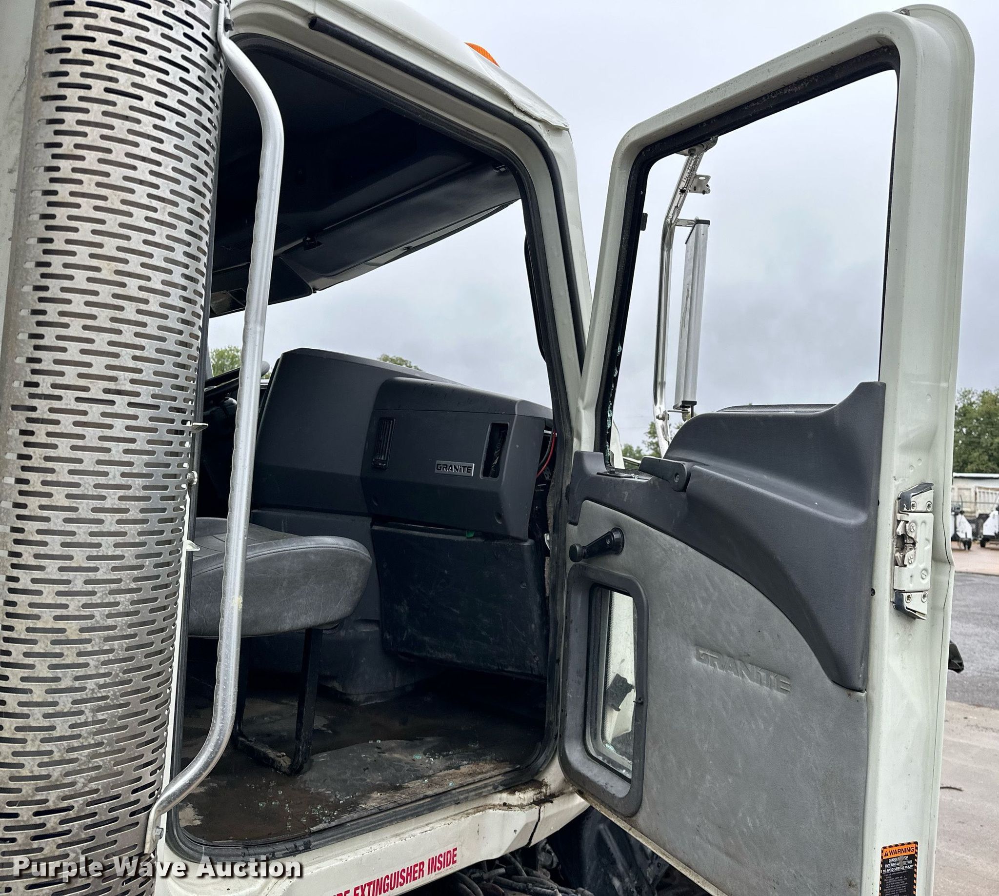 2016 Mack Granite GU433 dump truck. Miles: Unknown, VIN: 1M2AX32C1GM010754, Unit #: 1599. Engine Cummins, Displacement: 8.9L, Cylinders: 6, Fuel type: Diesel. Transmission Automated manual. Chassis Double frame, Axles: Tandem, Differential lock: Inter-axle, Suspension: Spring over walking beam, Brakes: Air, PTO, Front mount PTO, GVWR: 56,500 lbs FAWR: 16,500 lbs, RAWR: 20,000 lbs. Interior AC, Heat, Cruise control. Features Dump bed HilArk 151113, 15' L x 96" W, Side height: 32", Side board height: 8", Bed type: Steel, Ram: Single, End gate: Air operated. Tires Size: 11R22.5. Notes Dead battery, Collision damage, Windshield missing, Passenger window missing, Non-operational passenger door, Unknown operating condition of dump bed, Non-operational unit. Oklahoma title. Mileage has not been verified. Exempt will be written in the odometer disclosure on the title. Title distribution may be delayed up to 30 days from verification of funds. City of Broken Arrow. Broken Arrow, OK 74012