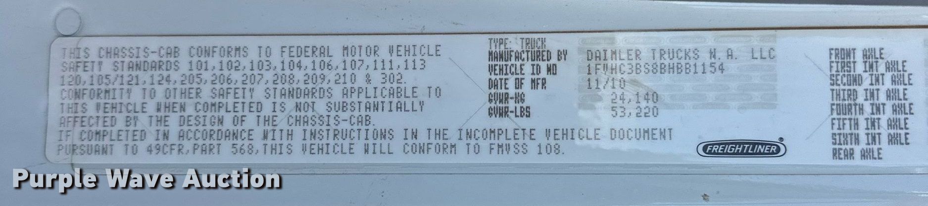 - VIN: 1FVHC3BS8BHBB1154
