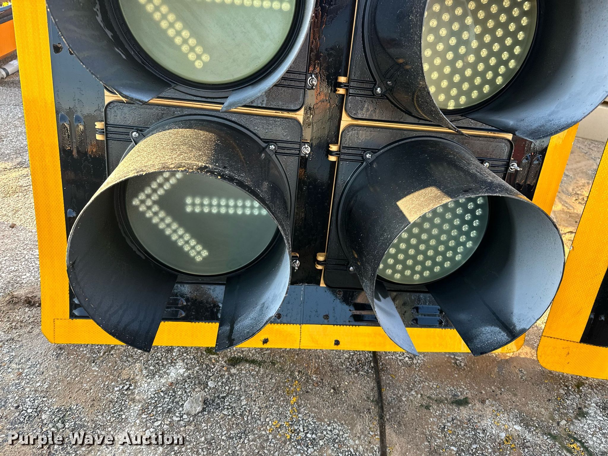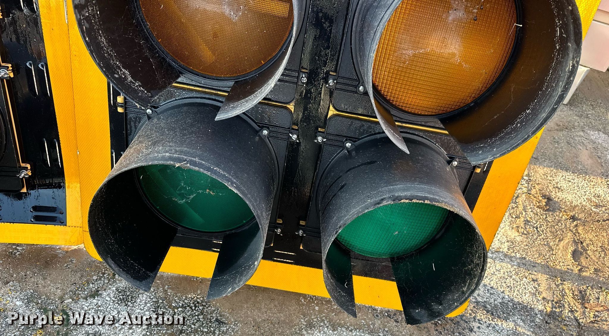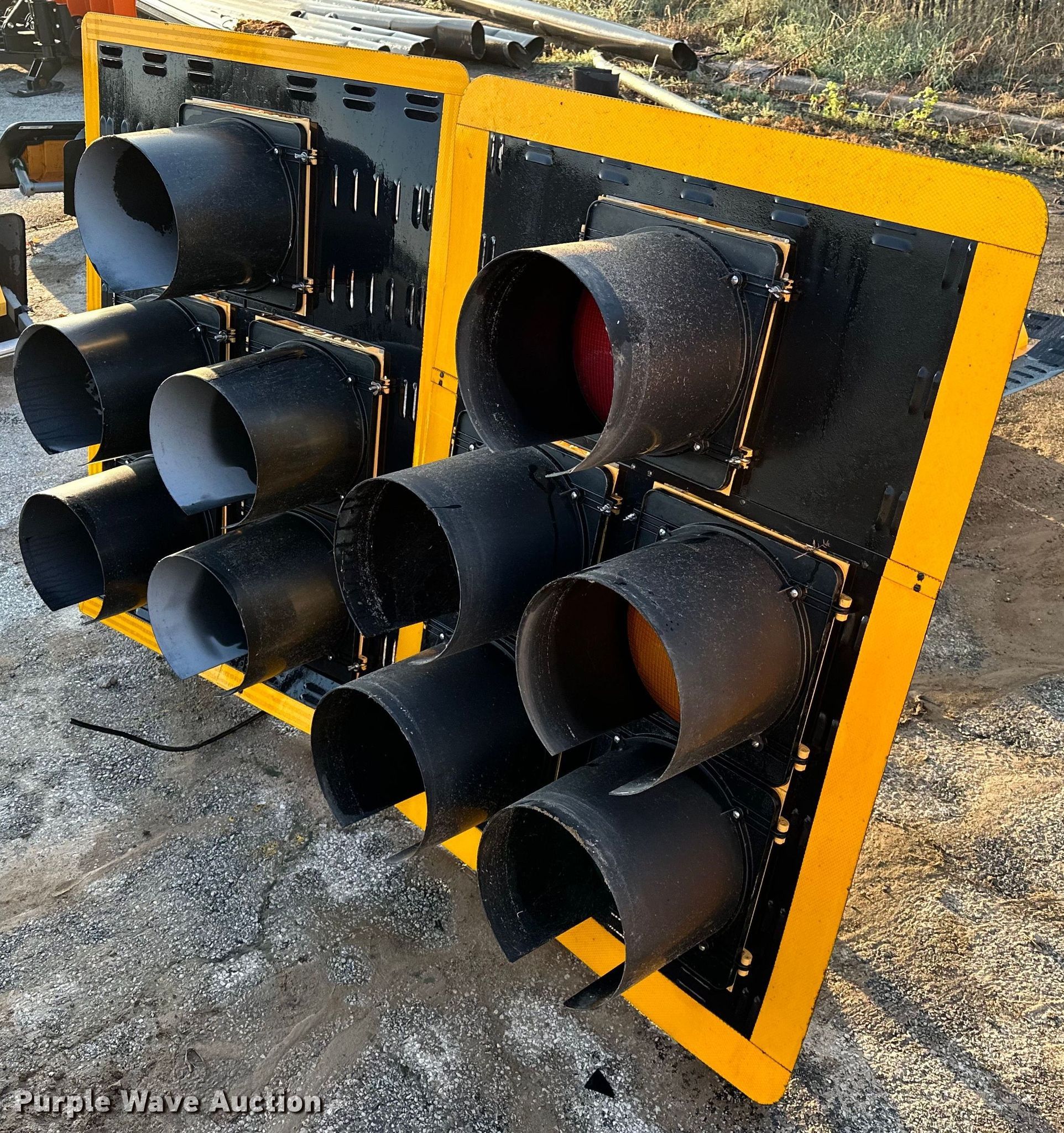 Purple Wave is selling a used Road Safety Equip. in Oklahoma. This item is a (2) traffic lights with the following: 51.5" L x 38 3/4" W, Unknown operating condition