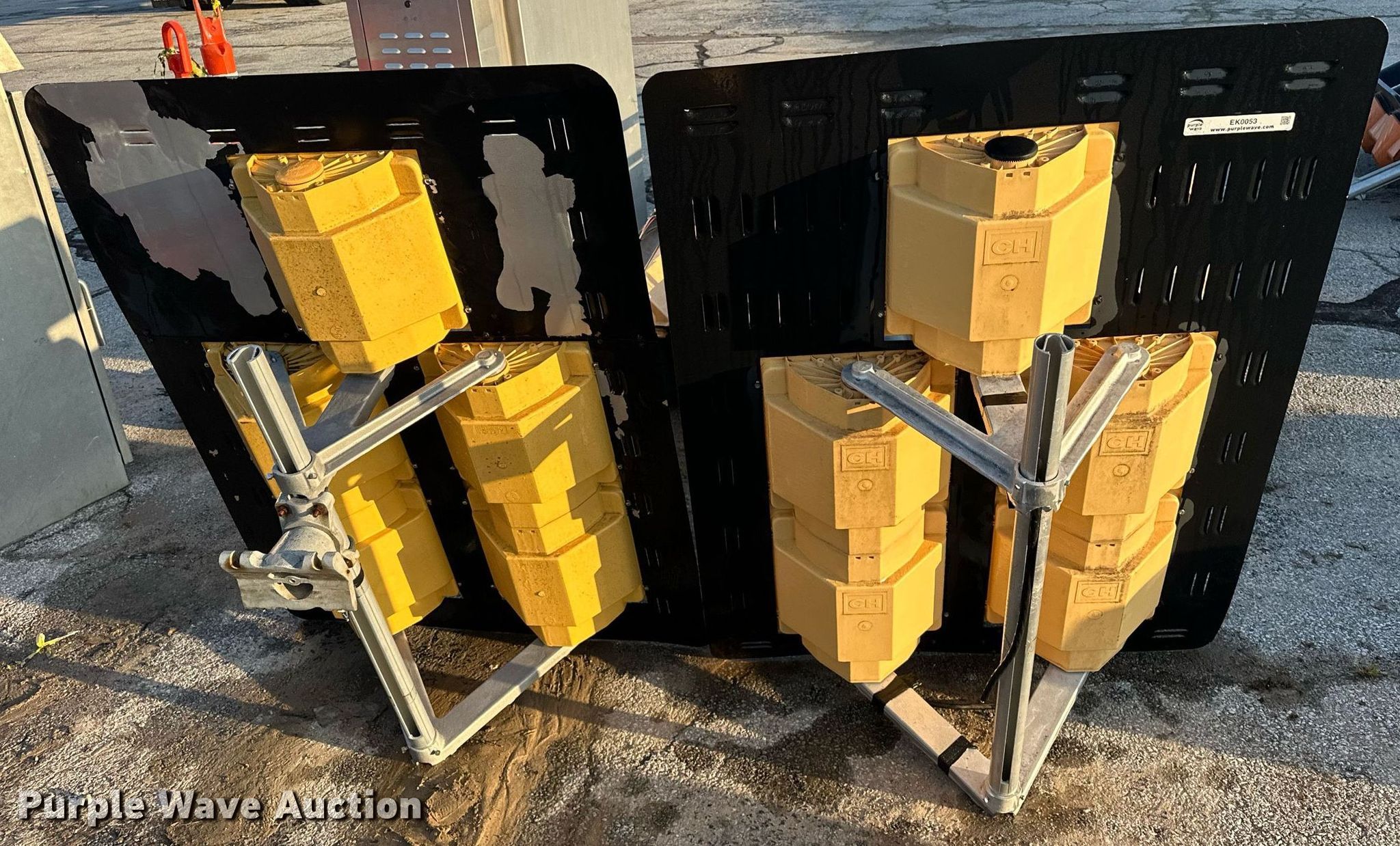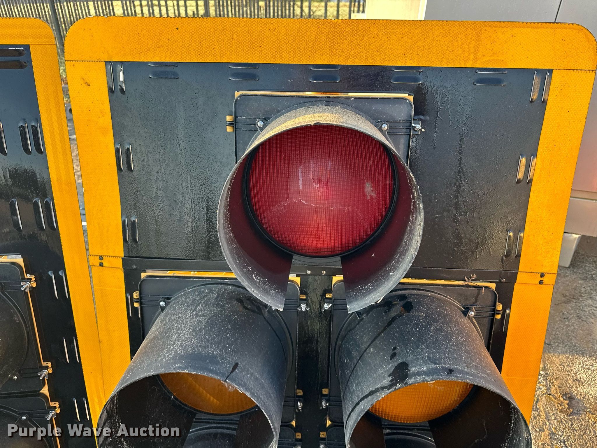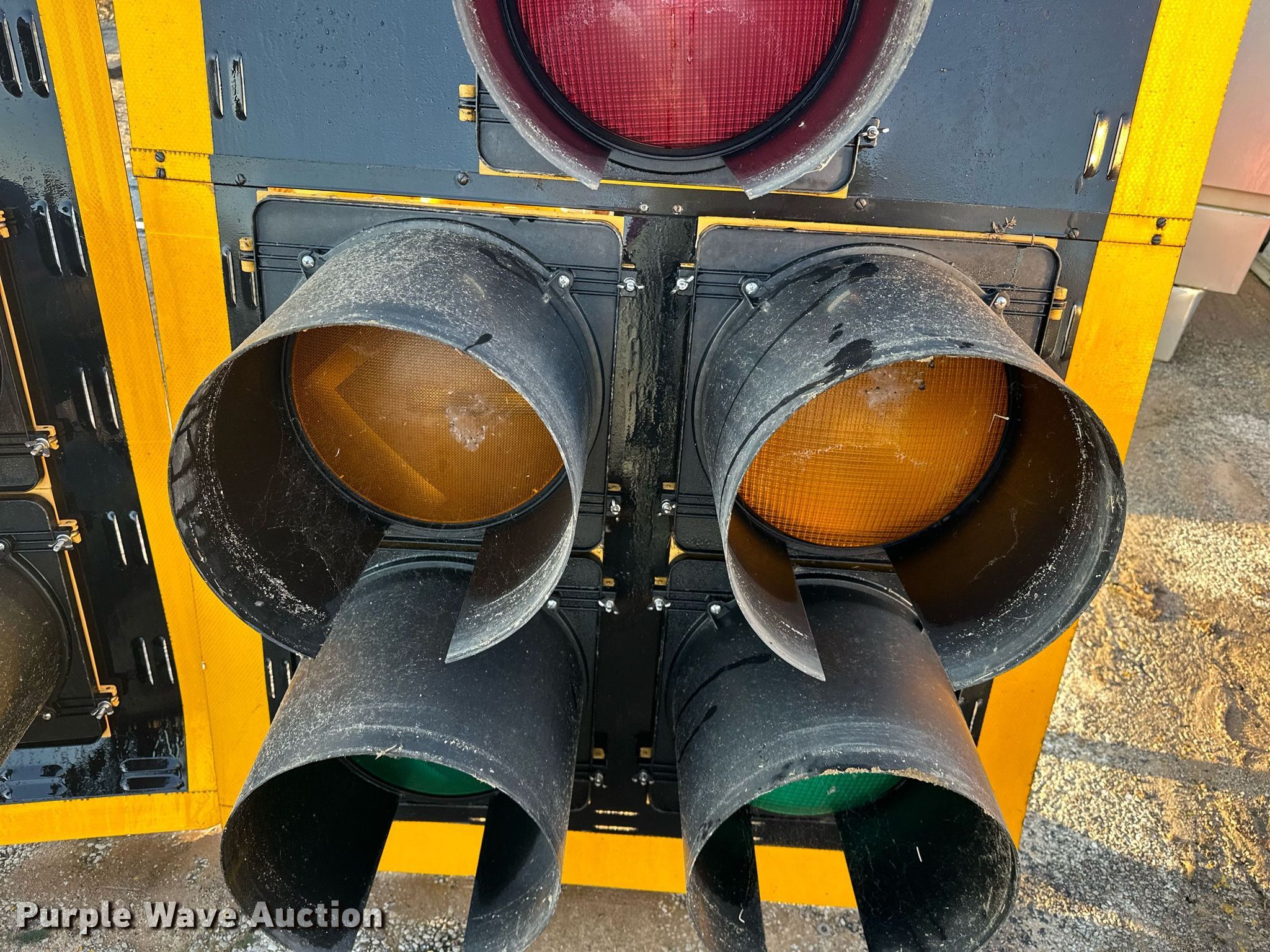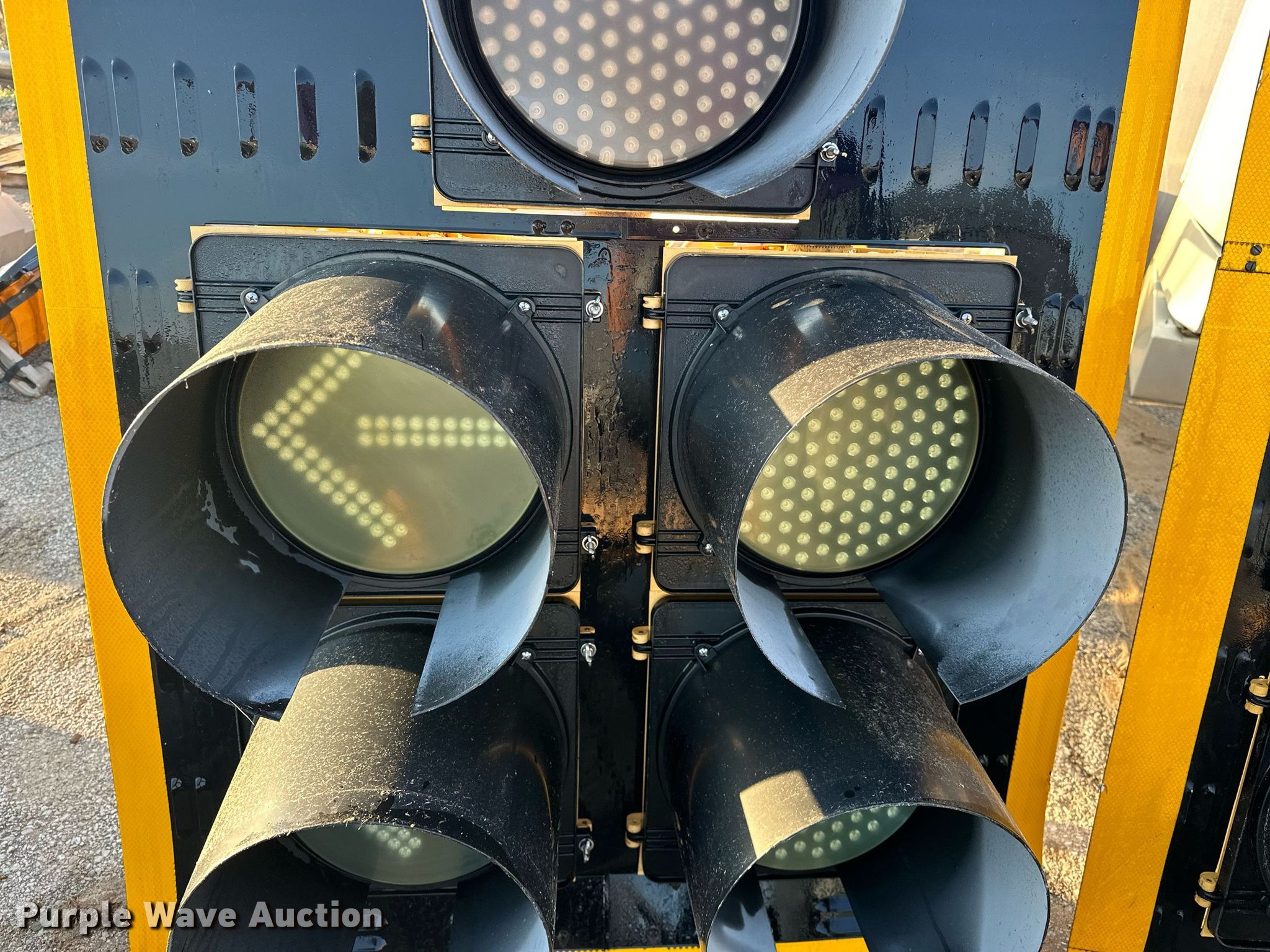 Purple Wave is selling a used Road Safety Equip. in Oklahoma. This item is a (2) traffic lights with the following: 51.5" L x 38 3/4" W, Unknown operating condition