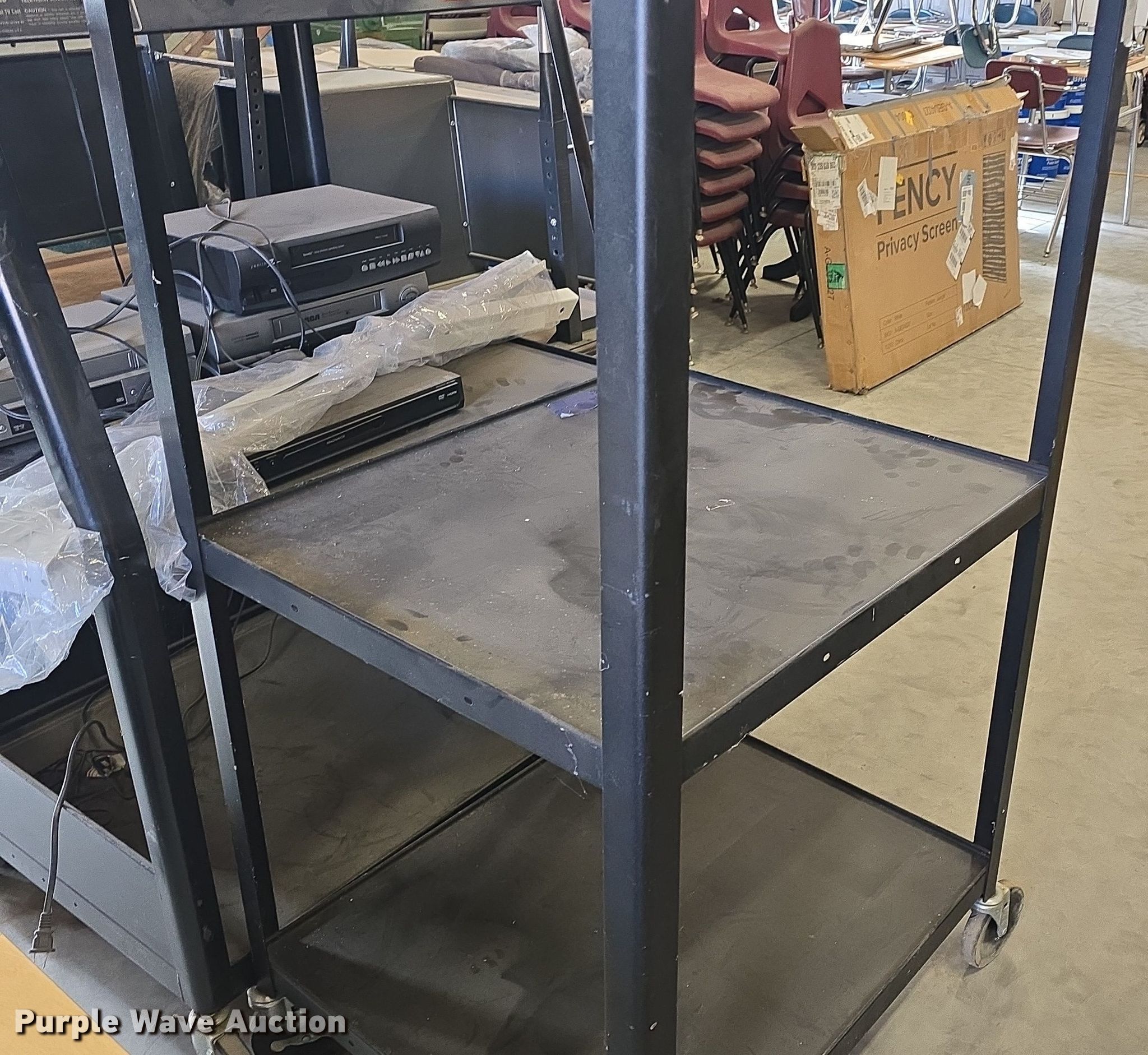 Purple Wave is selling a used Furniture in Kansas. This item is a Furniture with the following: (2) carts, Contents not included, (2) tables, 6' x 2', 6' x 30"