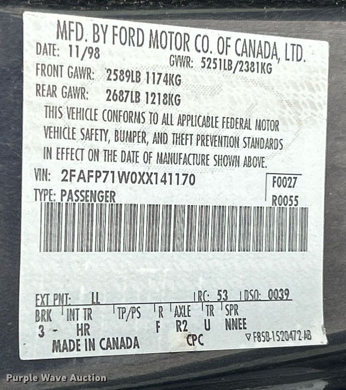 - VIN: 2FAFP71W0XX141170