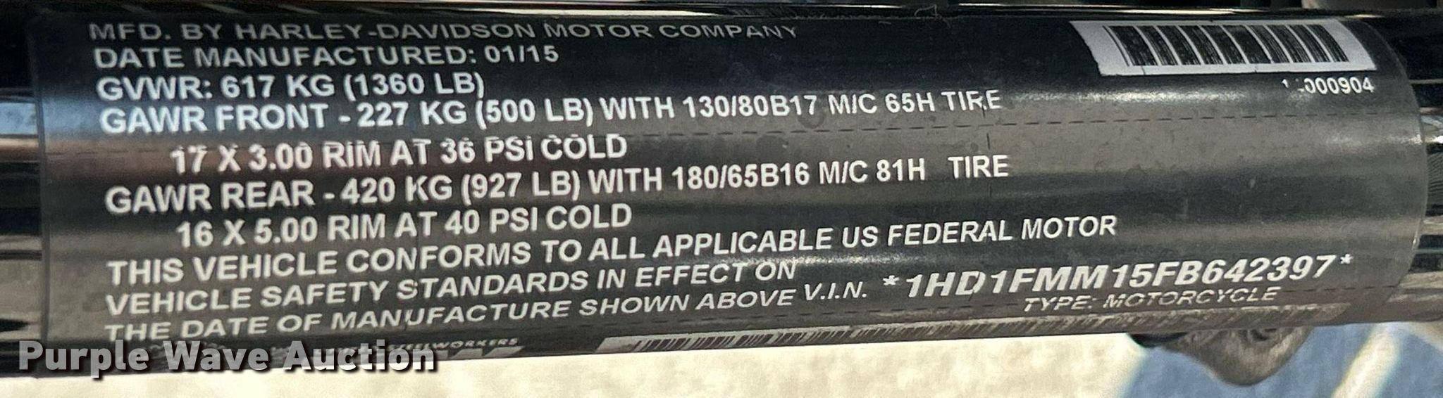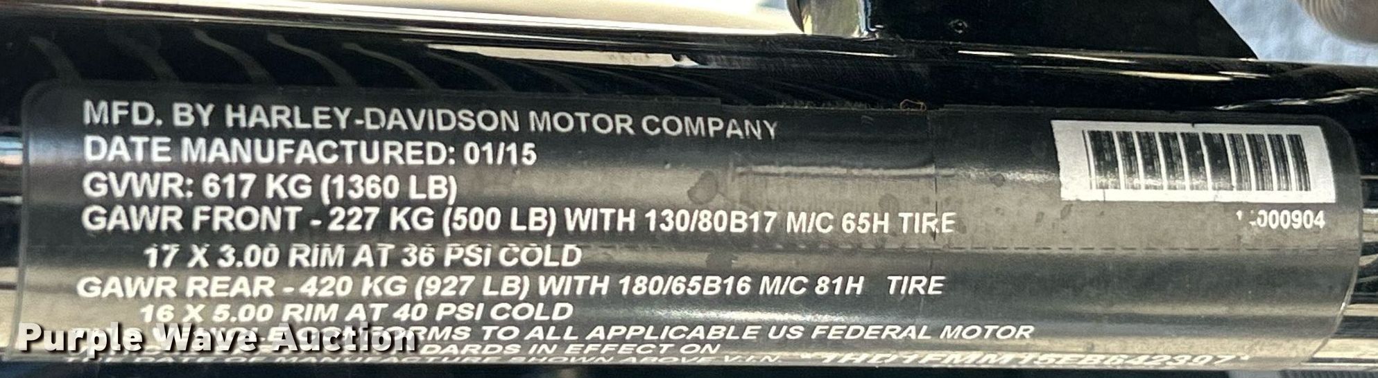 Purple Wave is selling a used Motorcycle in Missouri. This item is a 2015 Harley Davidson Electra Glide Police motorcycle with the following: Miles: 8,655 on odometer, VIN: 1HD1FMM15FB642397