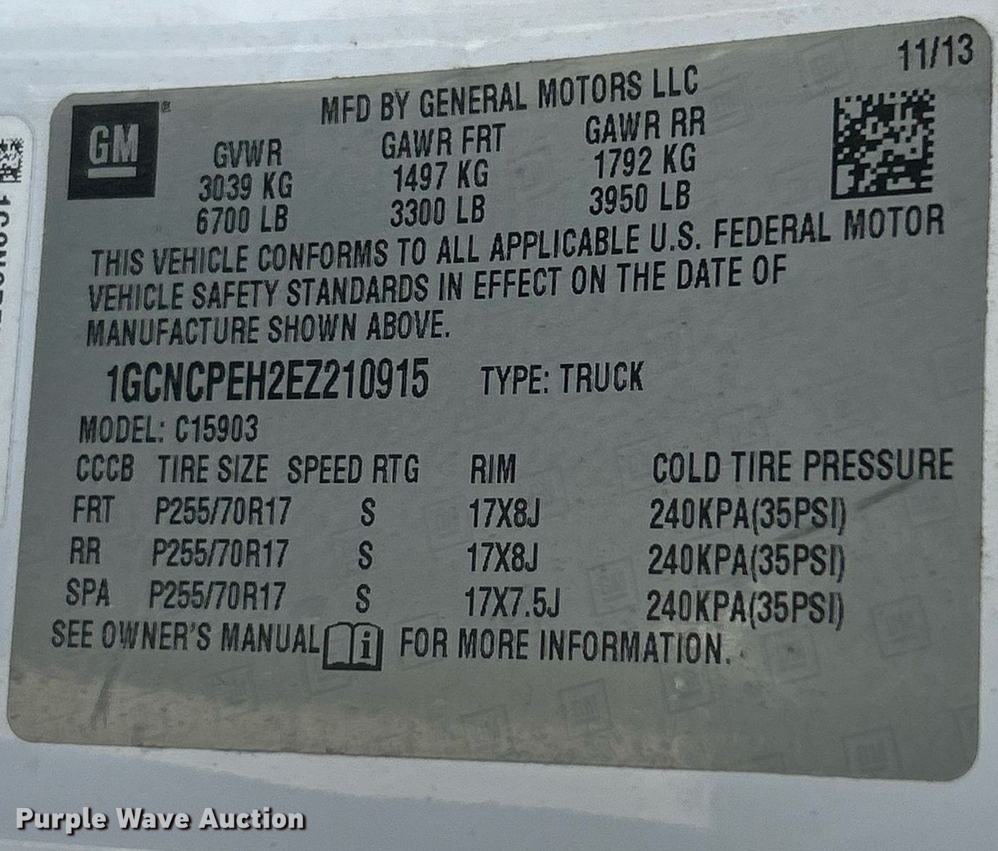 Purple Wave is selling a used 1/2 Ton Pickup or Van in Missouri. This item is a 2014 Chevrolet Silverado 1500 pickup truck with the following: Miles: 223,794 on odometer, Miles or hours may vary, unit still in use, VIN: 1GCNCPEH2EZ210915, Unit #: B7141
