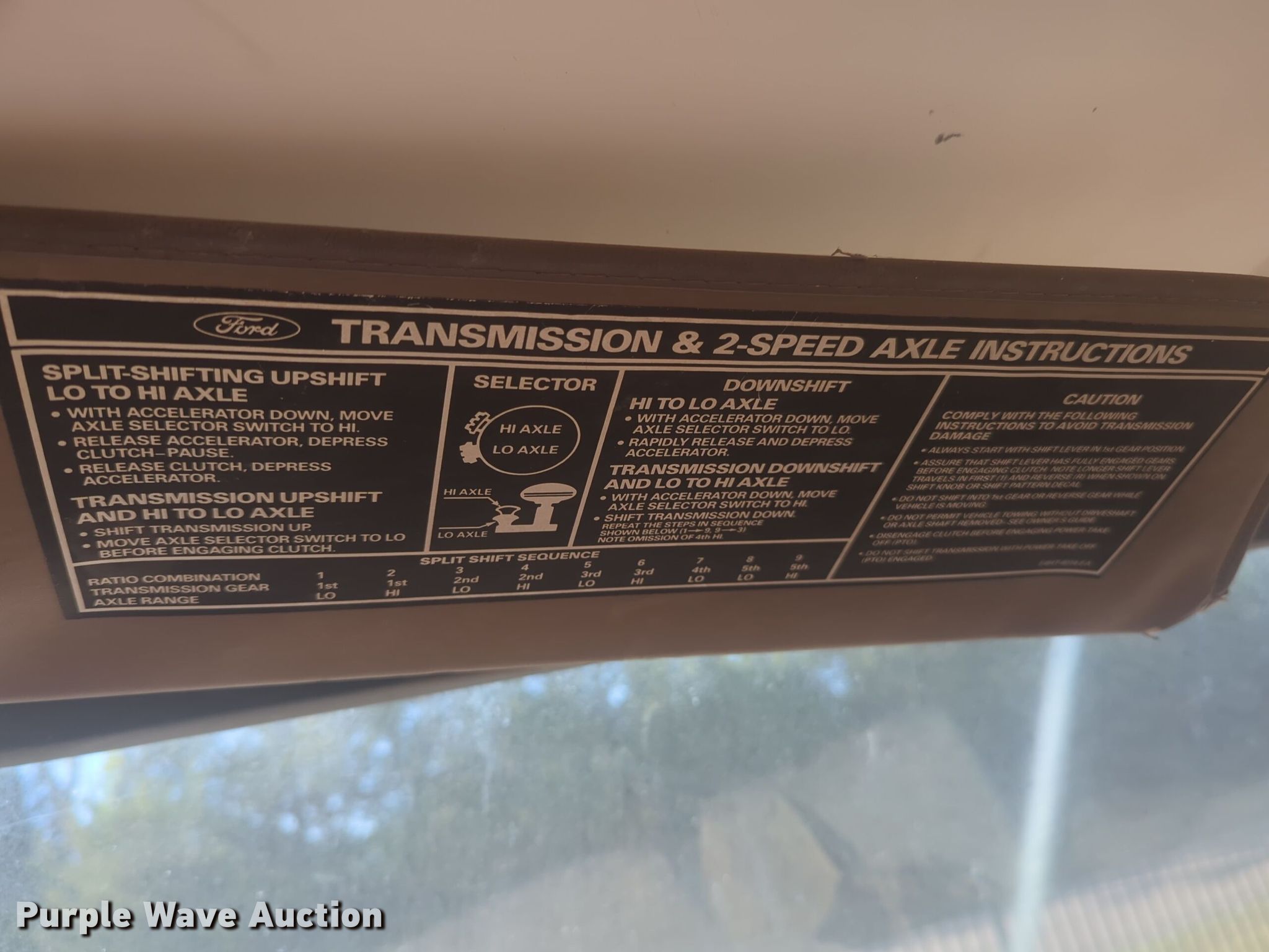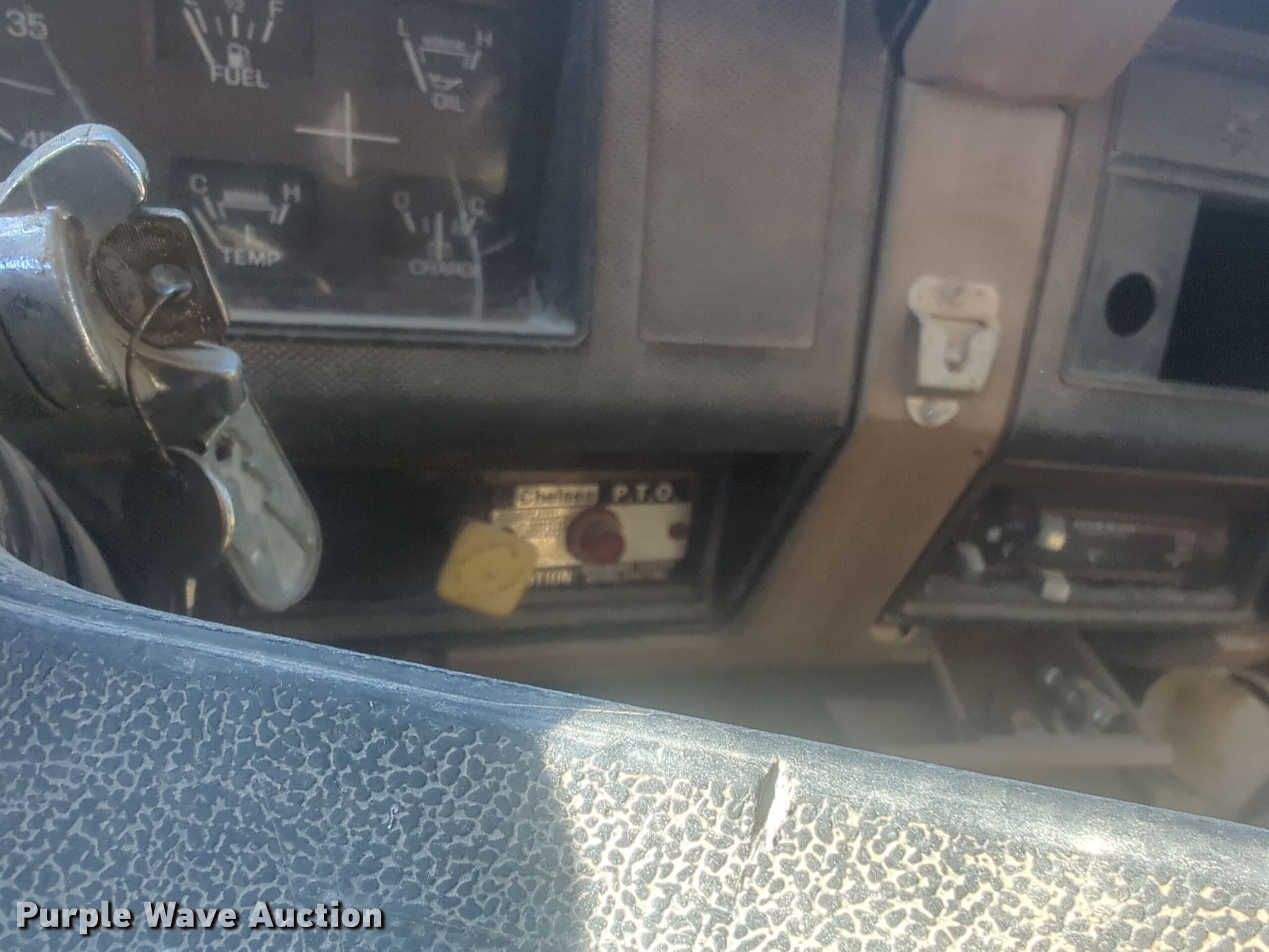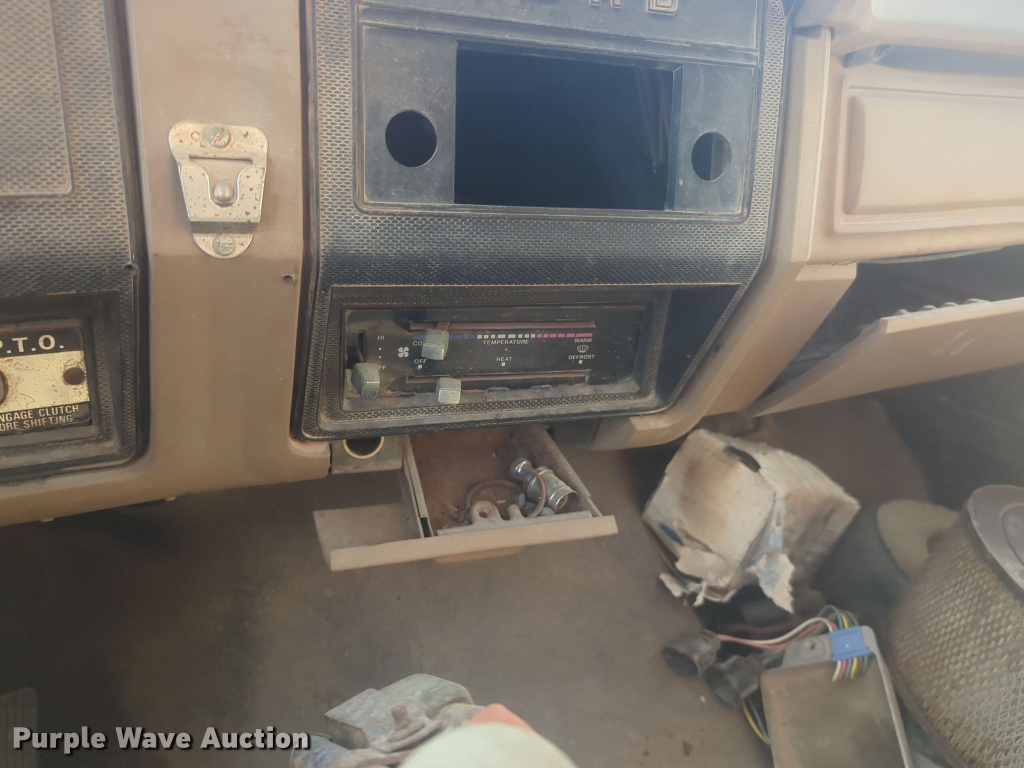 1986 Ford F700 dump truck. Miles: 106,705 on odometer, VIN: 1FDNF70H2GVA06846. Engine Displacement: 6.1L, Cylinders: 8, Fuel type: Gas. Transmission Manual, Speed: 5, plus 2. Chassis Axles: Single, Suspension: Spring, Brakes: Air, PTO, GVWR: 25,100 lbs. Interior Heat. Features Dump bed 16' L x 96" W, Bed type: Steel. Tires Size: 8.25-20. Notes Windshield chipped or cracked. Oklahoma classic title. Title distribution may be delayed up to 30 days from verification of funds. Town of Washington. Washington, OK 73093