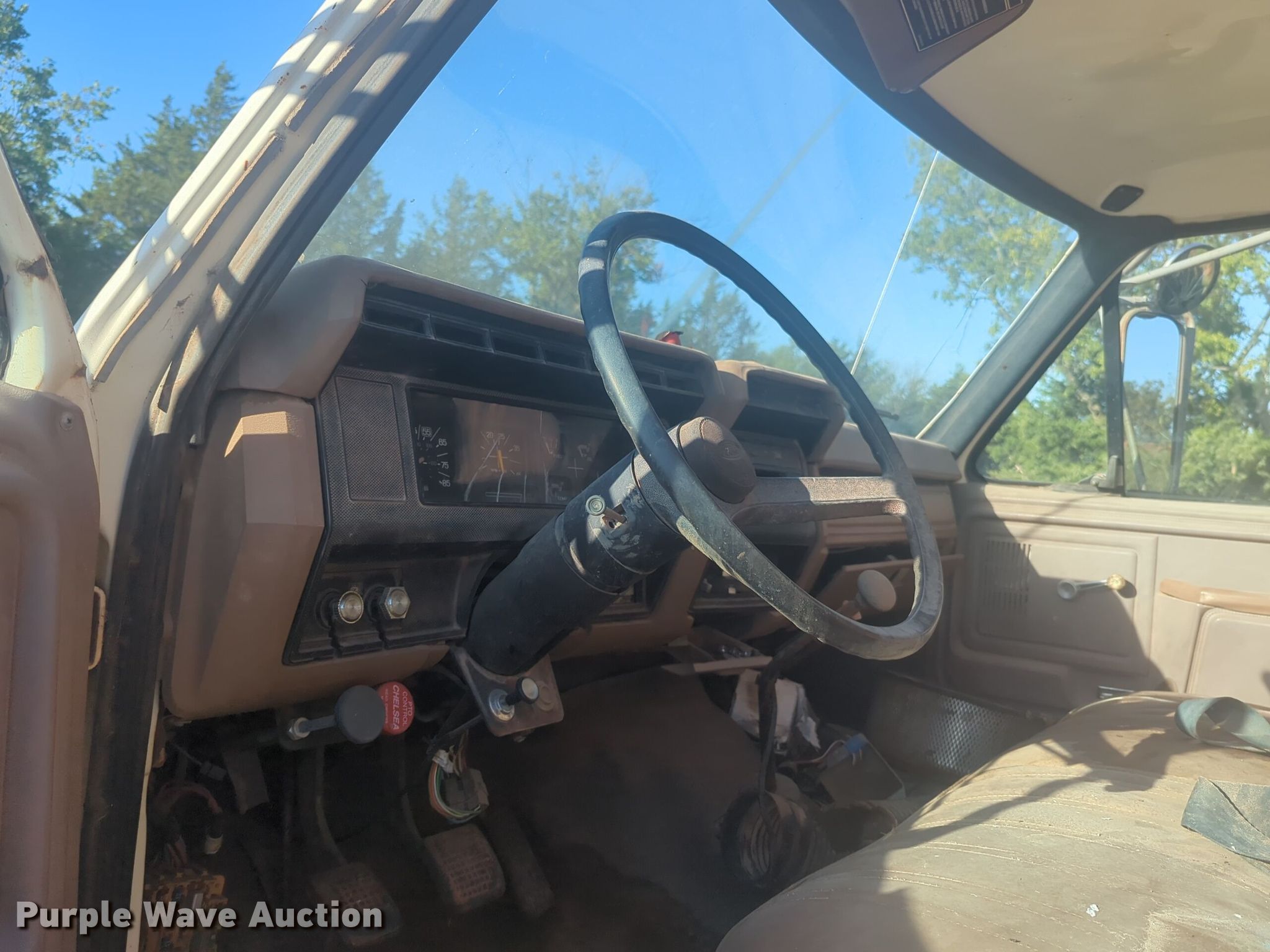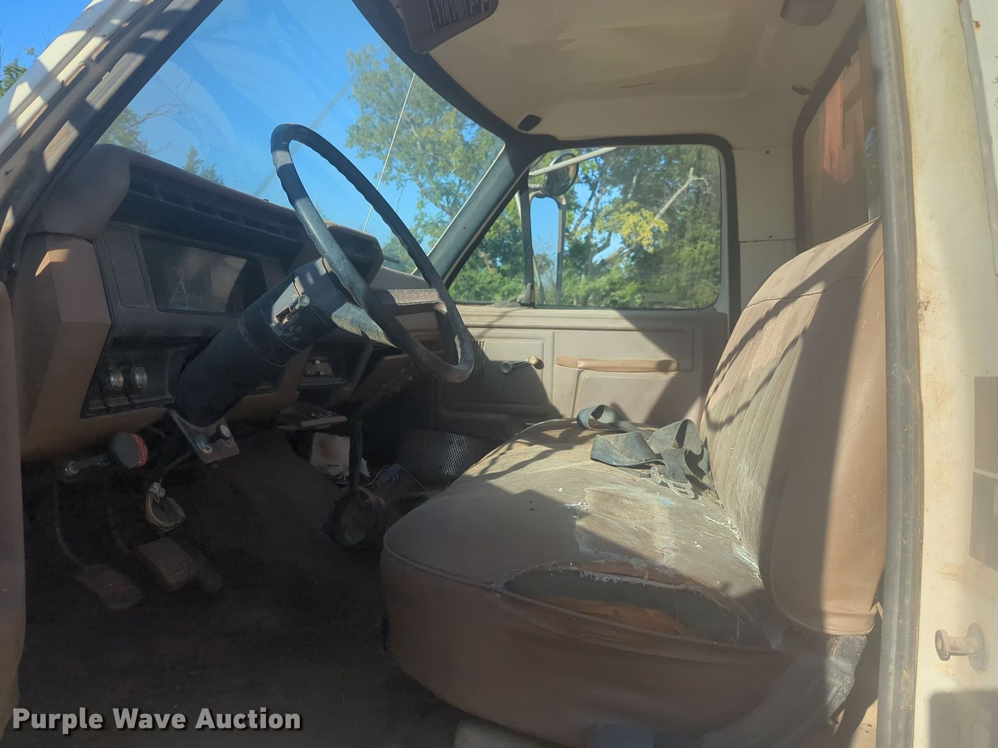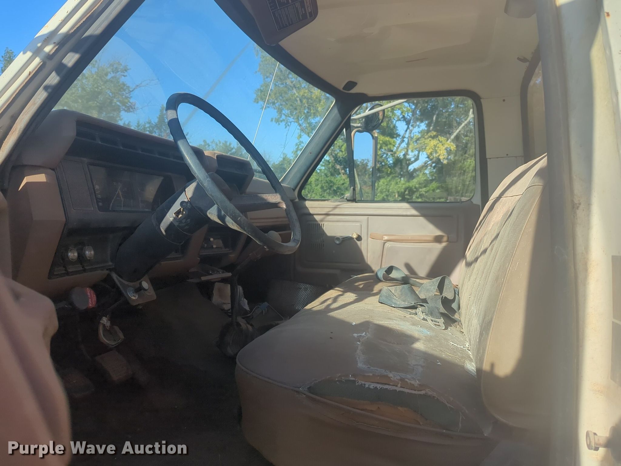 1986 Ford F700 dump truck. Miles: 106,705 on odometer, VIN: 1FDNF70H2GVA06846. Engine Displacement: 6.1L, Cylinders: 8, Fuel type: Gas. Transmission Manual, Speed: 5, plus 2. Chassis Axles: Single, Suspension: Spring, Brakes: Air, PTO, GVWR: 25,100 lbs. Interior Heat. Features Dump bed 16' L x 96" W, Bed type: Steel. Tires Size: 8.25-20. Notes Windshield chipped or cracked. Oklahoma classic title. Title distribution may be delayed up to 30 days from verification of funds. Town of Washington. Washington, OK 73093
