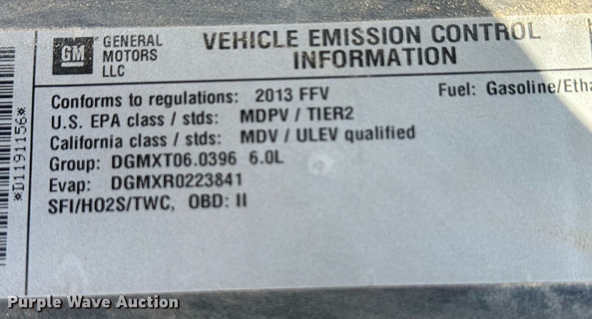 - VIN: 1GAZGZFG1D1191156