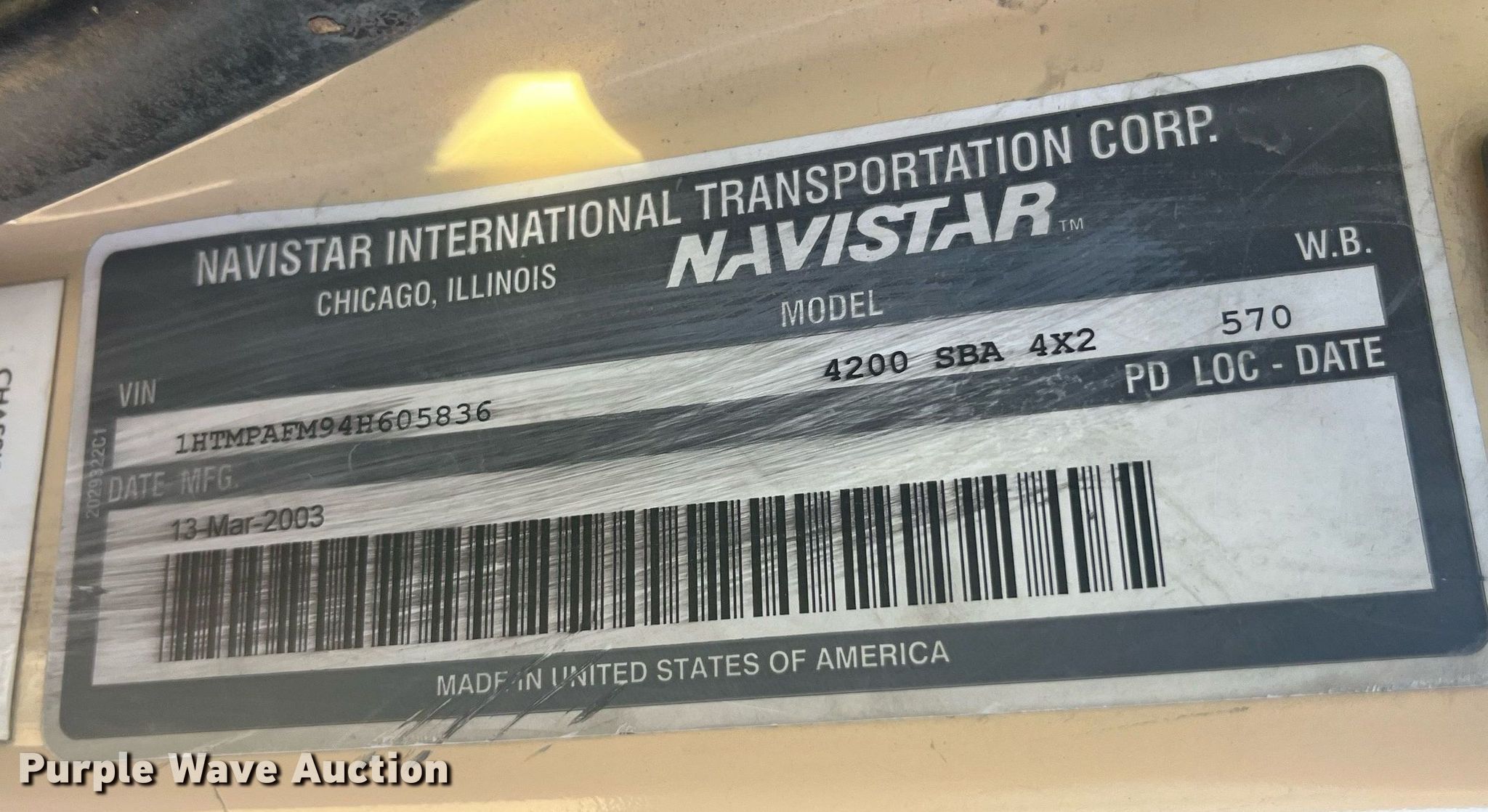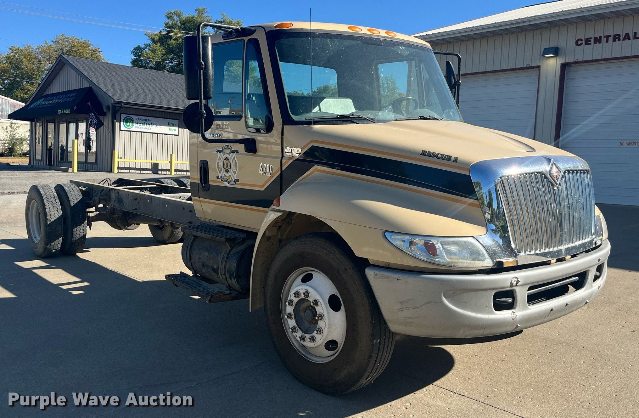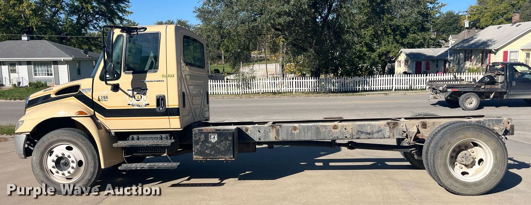 This 2004 International 4200 SBA truck cab and chassis will sell to the highest bidder regardless of price.