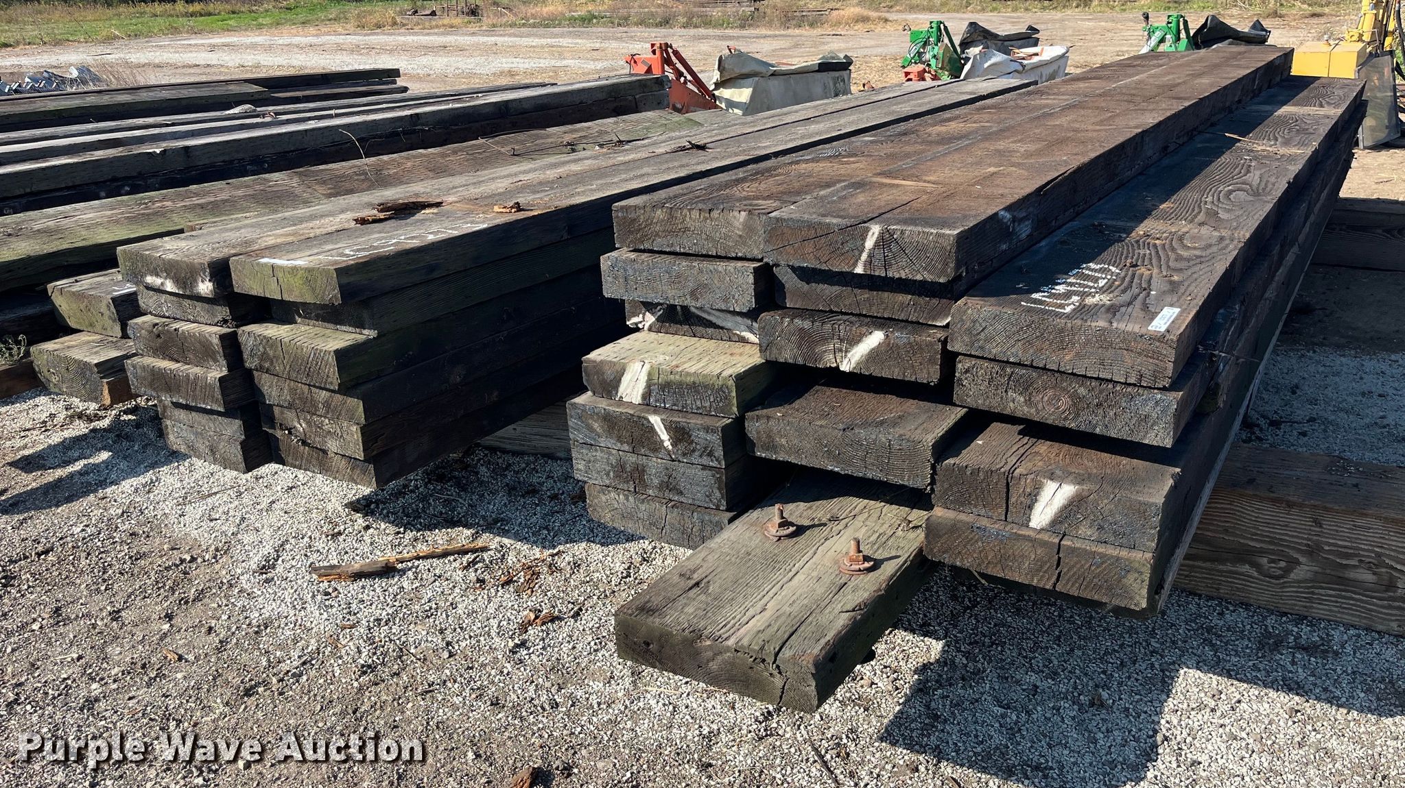Approximately 32 wood planks. Approx. dimensions: 18' L x 15" x 3.5". Davis County Highway. Bloomfield, IA 52537