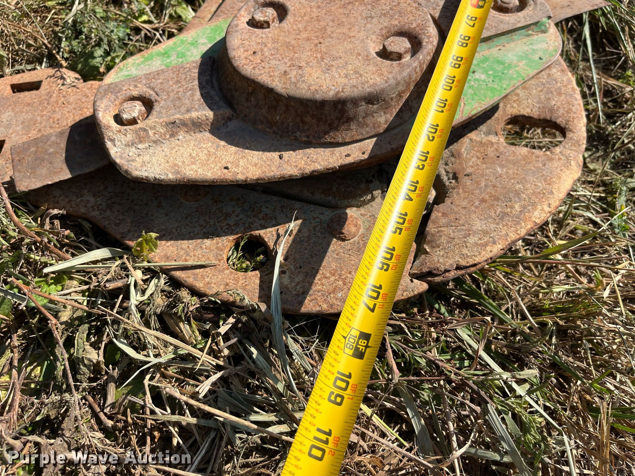 Purple Wave is selling a used Disc or Sickle Mower in Iowa. This item is a John Deere 275 disc mower with the following: Width: 9', Hydraulic lift, PTO: 540, Hitch: Three point