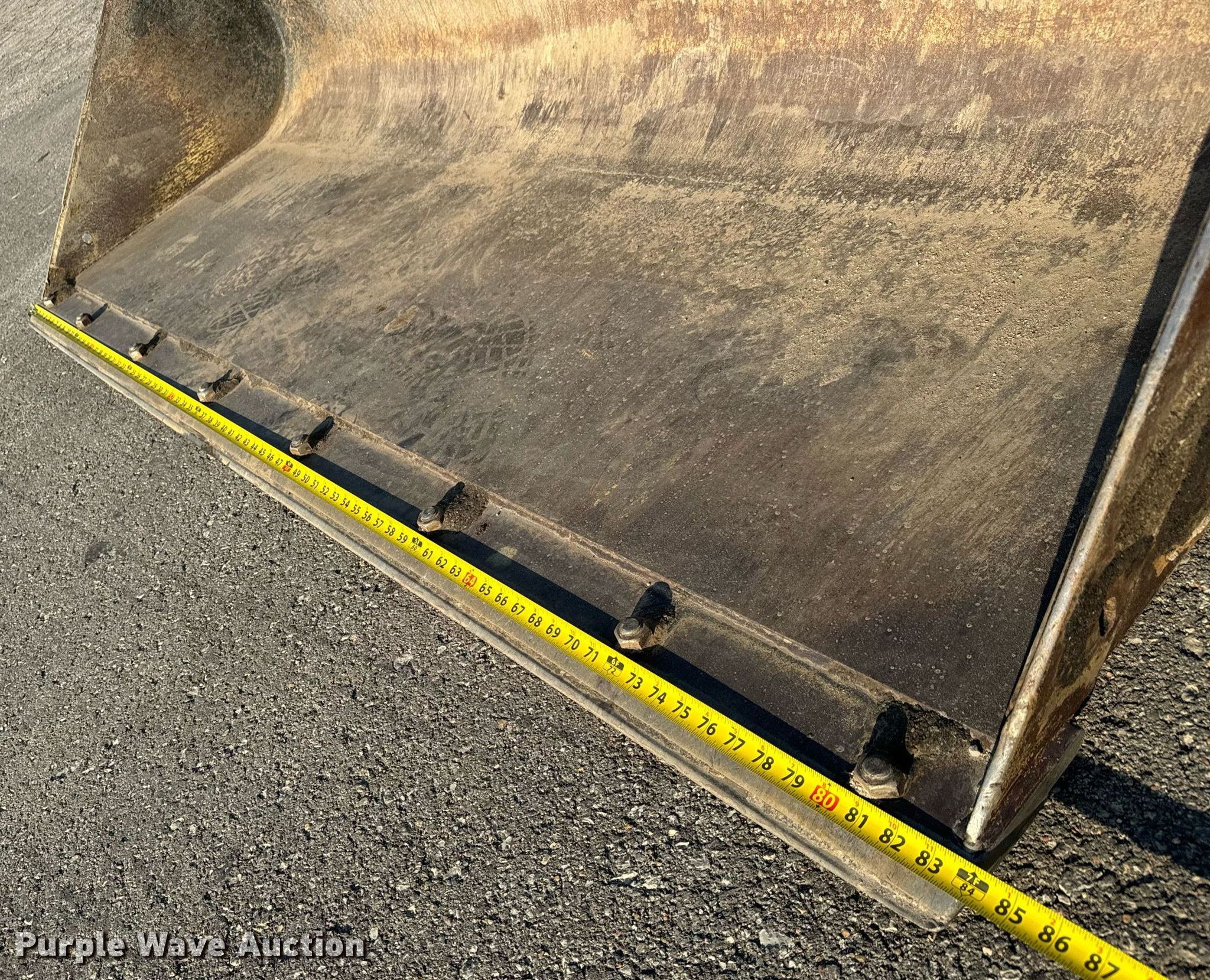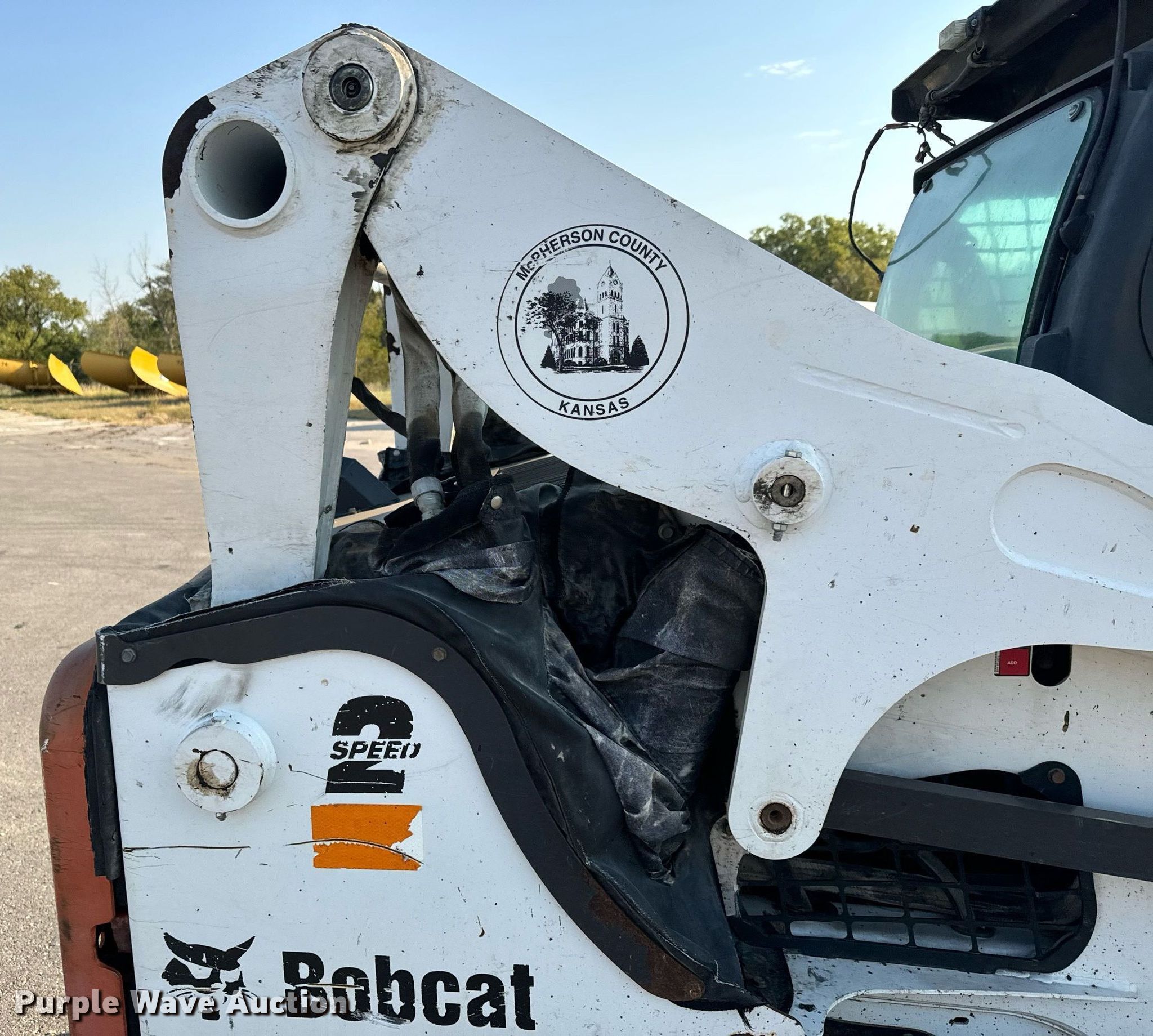 2012 Bobcat S750 skid steer loader. Hours: 3,715 on meter, Serial: A3P212852. Engine Kubota V3800-T, Cylinders: 4, Fuel type: Diesel. Transmission Hydrostatic, Two speed travel. Operators station Enclosed cab, AC, Heat, Bucket control: Hand, Pattern changer, Electronic Monitoring System panel. Features Auxiliary hydraulics, Auxiliary electrical outlet, Quick coupler: Hydraulic, Bucket John Deere Worksite Pro C84, Width: 84", Cutting edge: Bolt-on. Tires Size: 12-16.5. Notes (4) tires included. McPherson County Public Works. McPherson, KS 67460