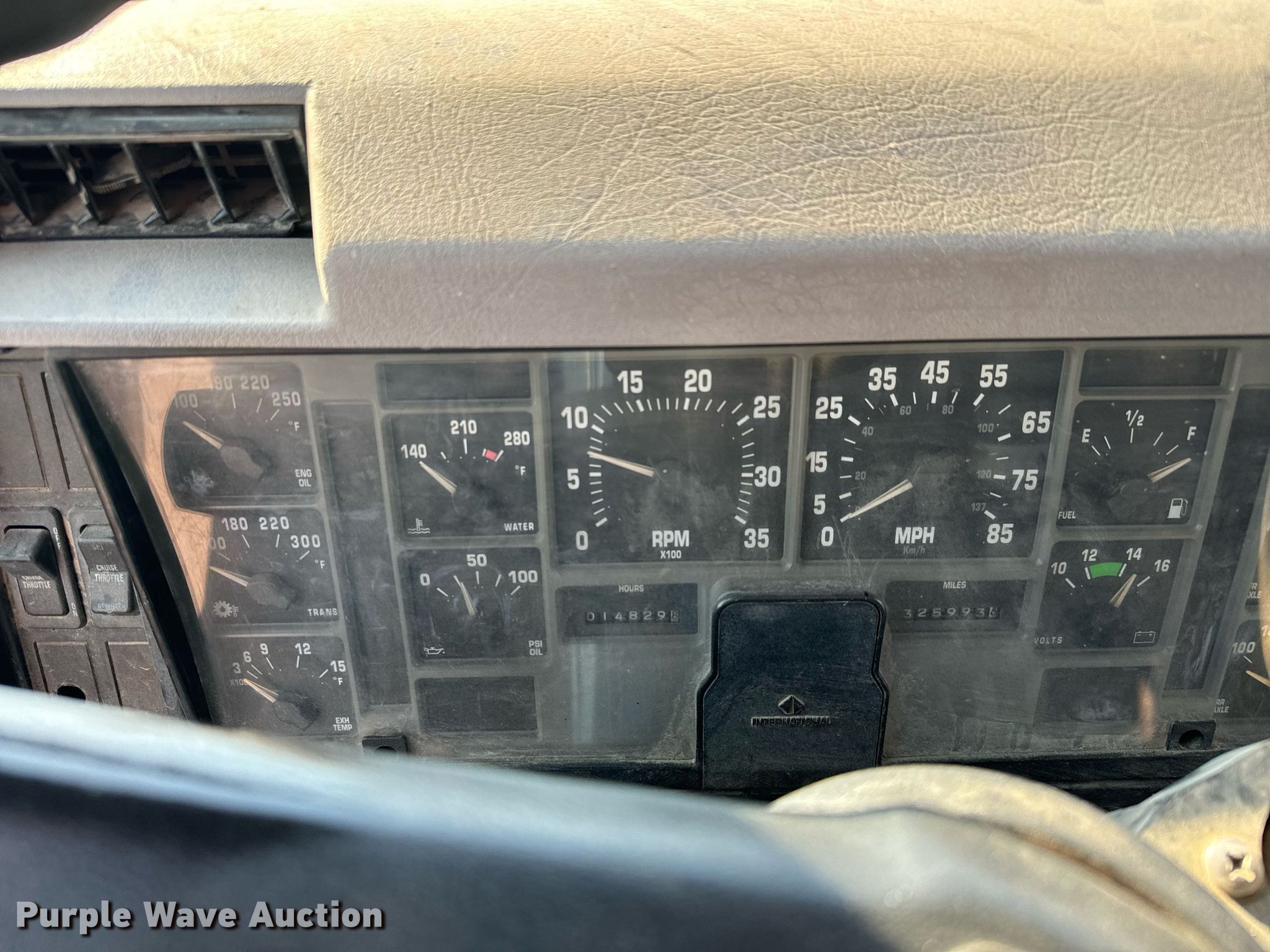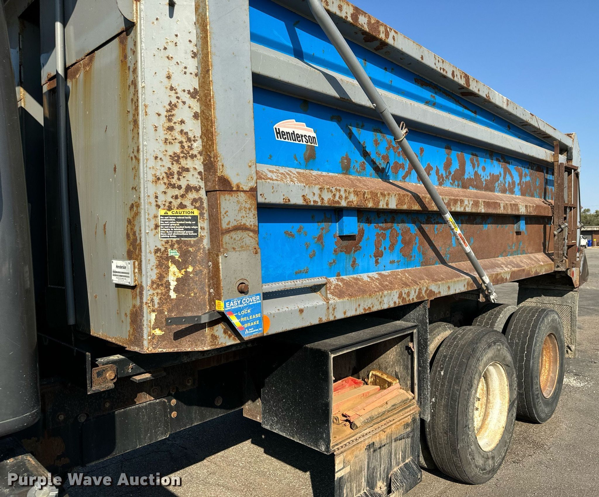 2000 International 2574 dump truck. Miles: 325,994 on odometer, Hours: 14,830 on meter, VIN: 1HSGGAXT9YH249255. Engine Caterpillar C12, Displacement: 12.0L, Cylinders: 6, Fuel type: Diesel. Transmission Eaton Fuller, Manual, Speed: 10. Chassis Double frame, Axles: Tandem, Differential lock: Inter-axle, Suspension: Spring over walking beam, Brakes: Air, PTO, GVWR: 50,000 lbs. Interior AC, Heat, Cruise control. Features Dump bed Henderson XDX15X44, 15' L x 96" W, Side height: 48" to 54", Bed type: Steel, Roll tarp, Ram: Single, End gate: Air operated. Tires Front: 315/80R22.5, Rear: 11R22.5. Notes Windshield chipped or cracked. Kansas title. Title distribution may be delayed up to 14 days from verification of funds. McPherson County Public Works. McPherson, KS 67460