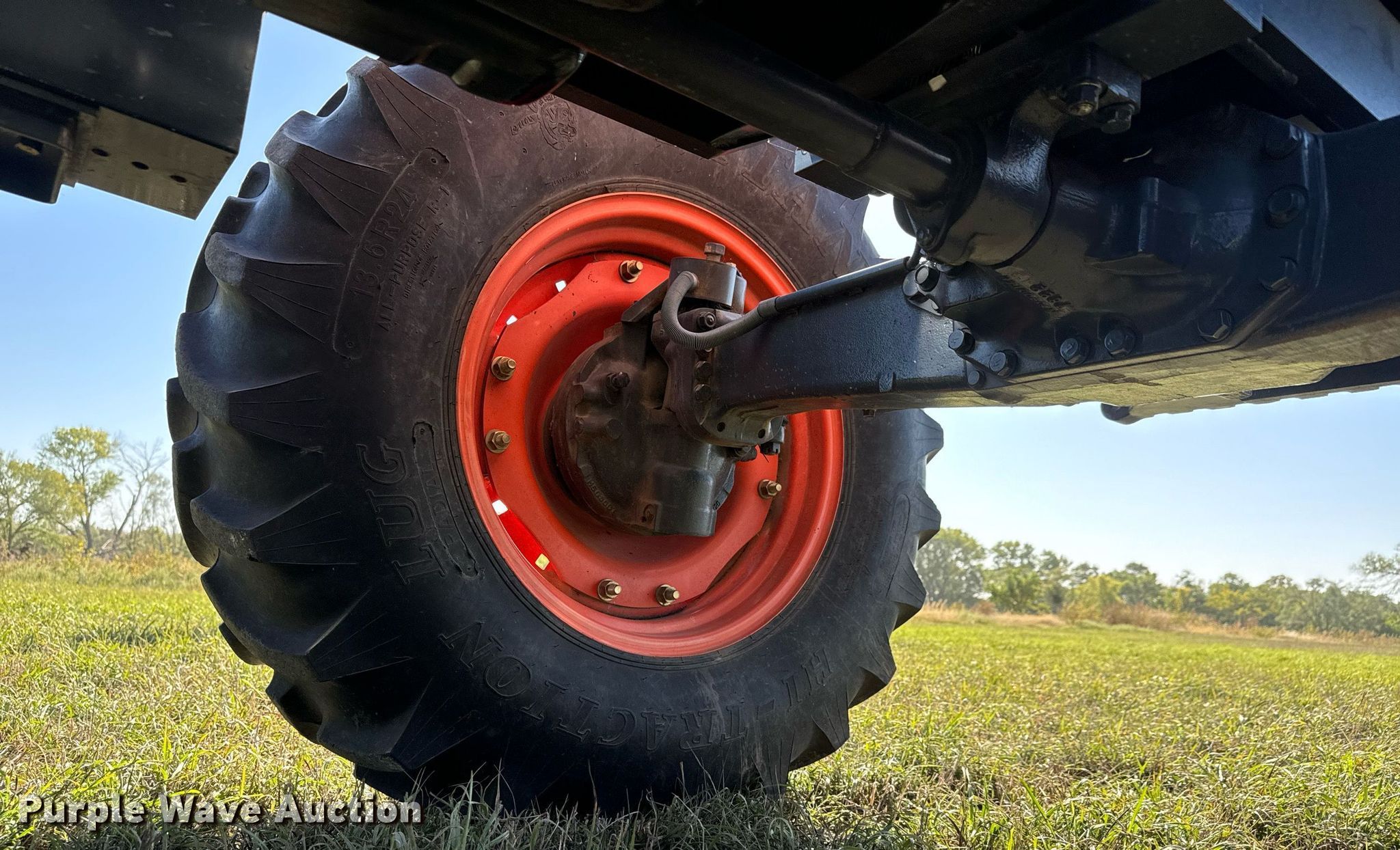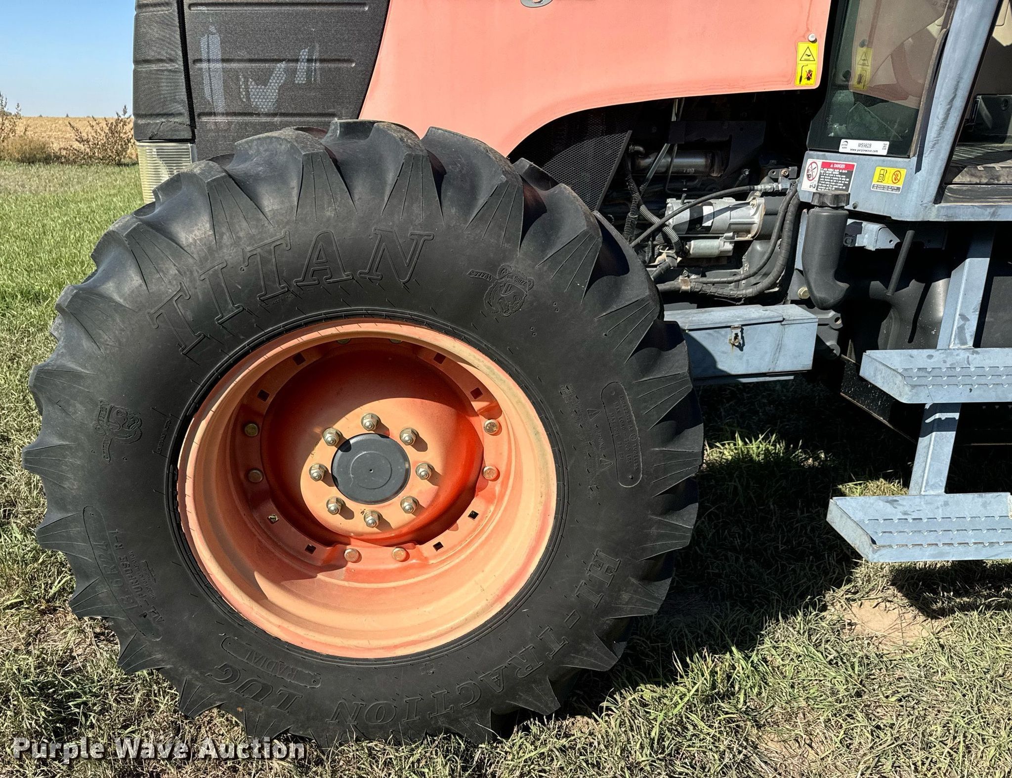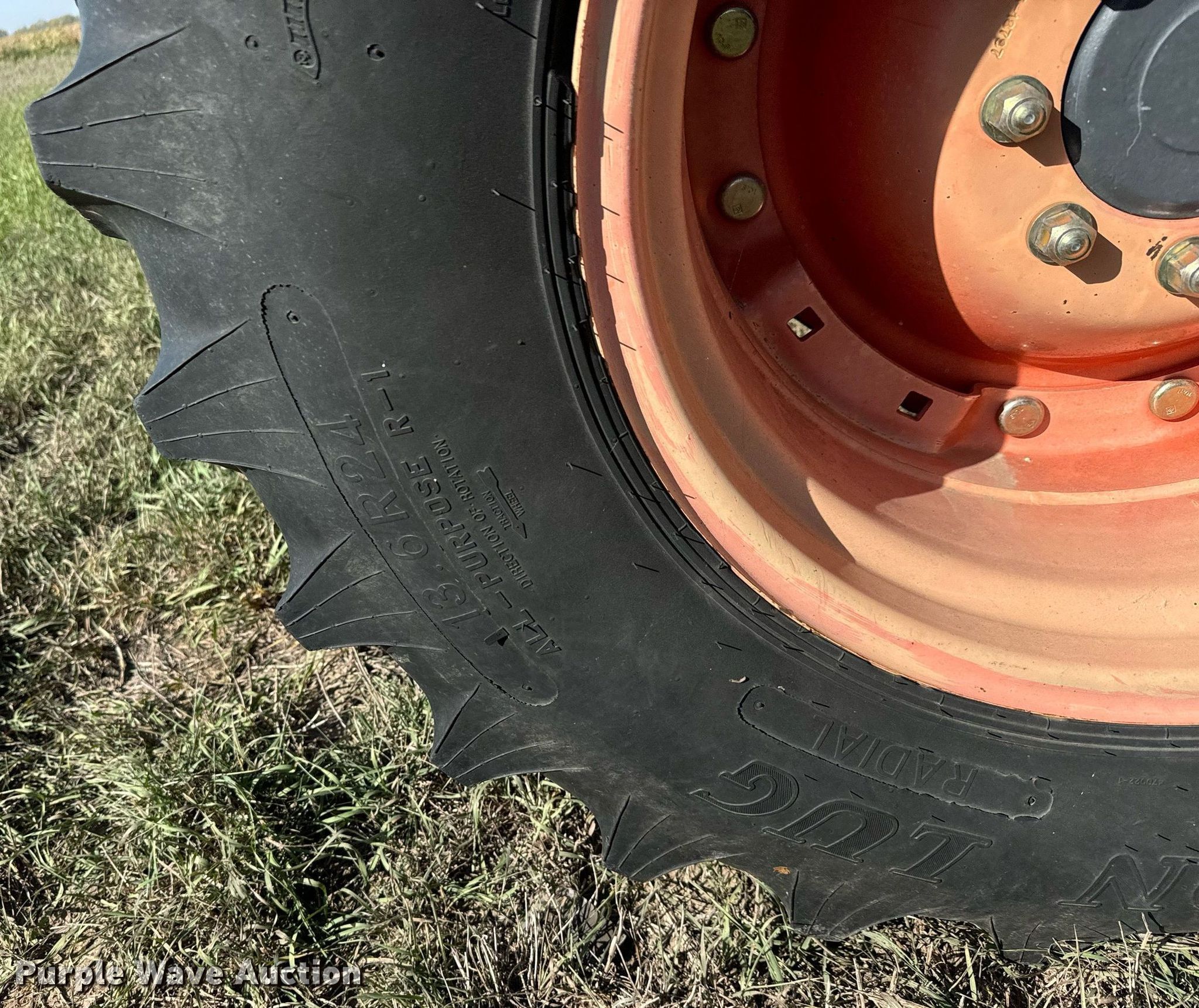 2008 Kubota M108X MFWD tractor. Hours: 993 on meter, Serial: 50702. Engine Cylinders: 4, Fuel type: Diesel. Transmission Powershift, 16F - 16R, Left-hand reverser, Differential lock. Operators station AC, Heat. Features PTO: 540, Three point Top link, Seven pin outlet, Hydraulic remote sets Rear: 2. Tires Front: 13.6R24, Rear: 18.4R34. Notes Warning indicator: General warning, Three point warning, Three point issues, will not lower on its own, Front right tire leaks air. Darlington Township. Newton, KS 67114