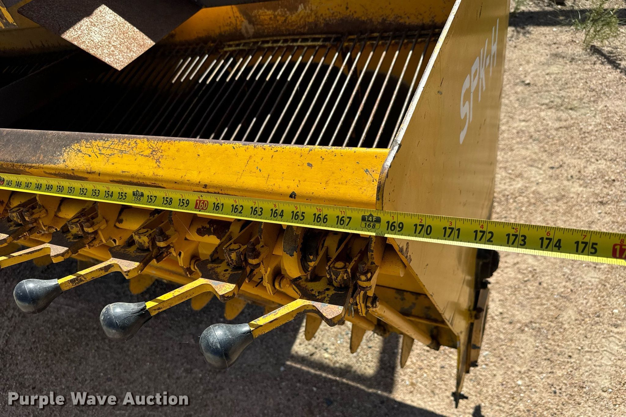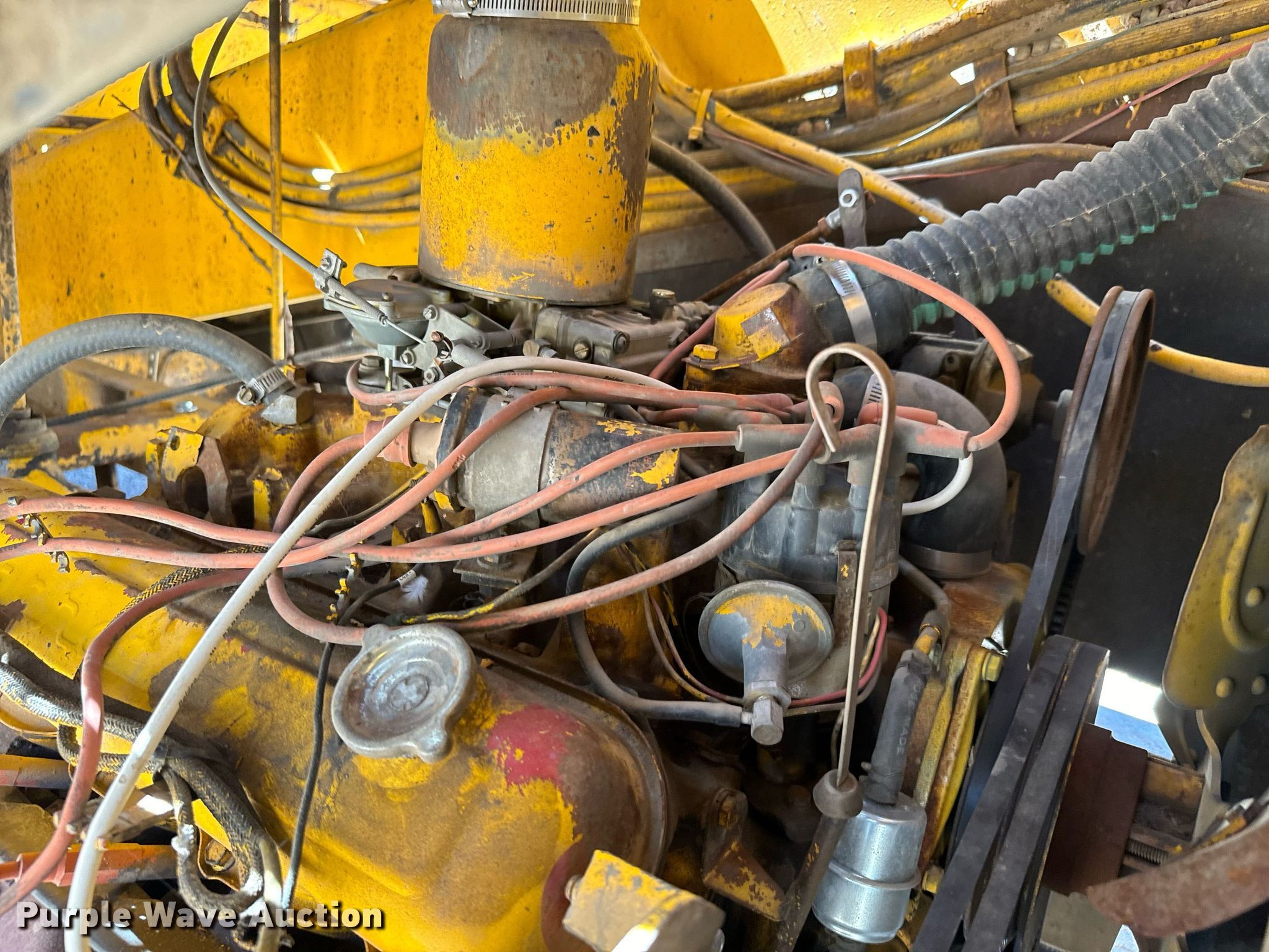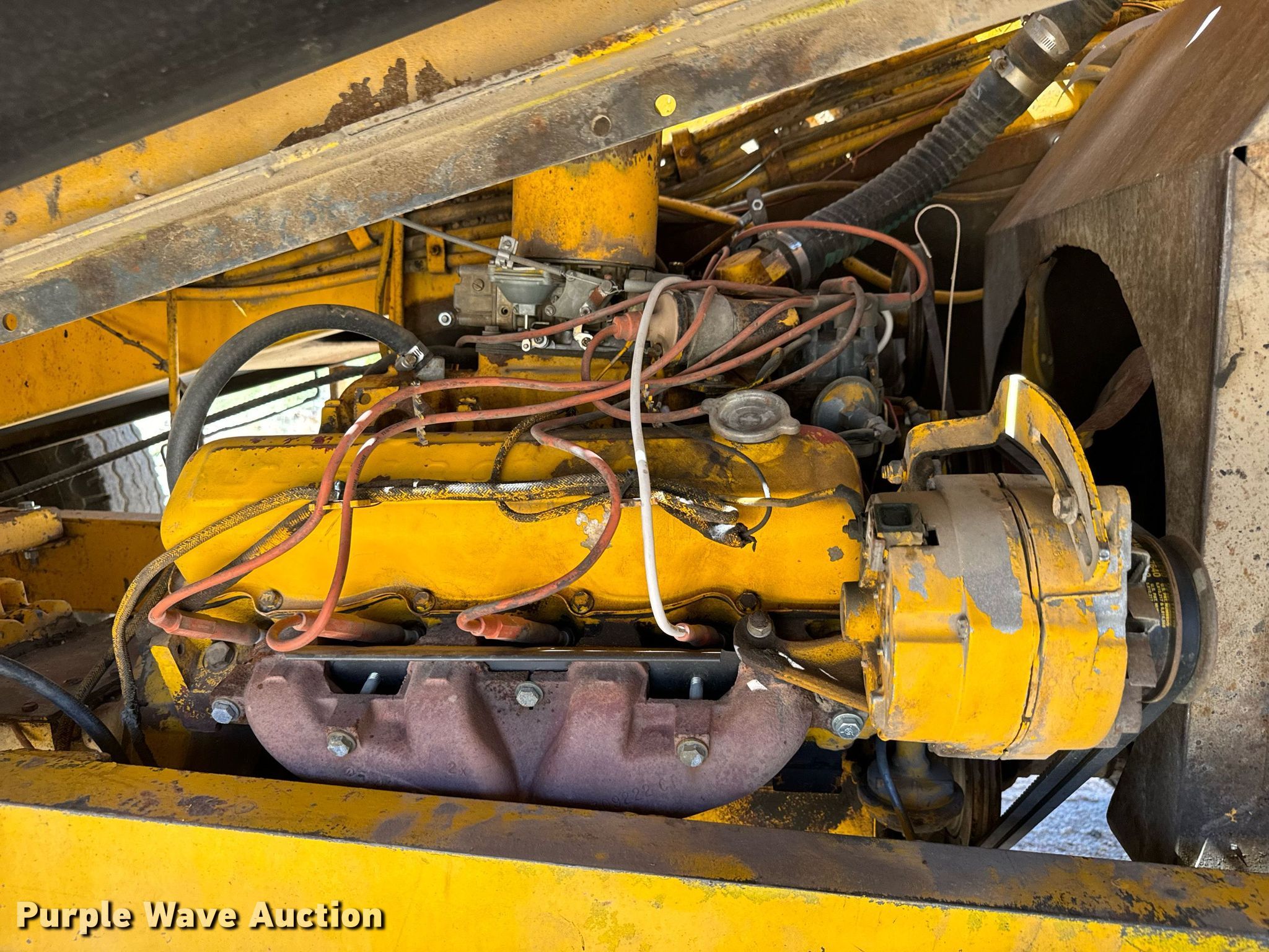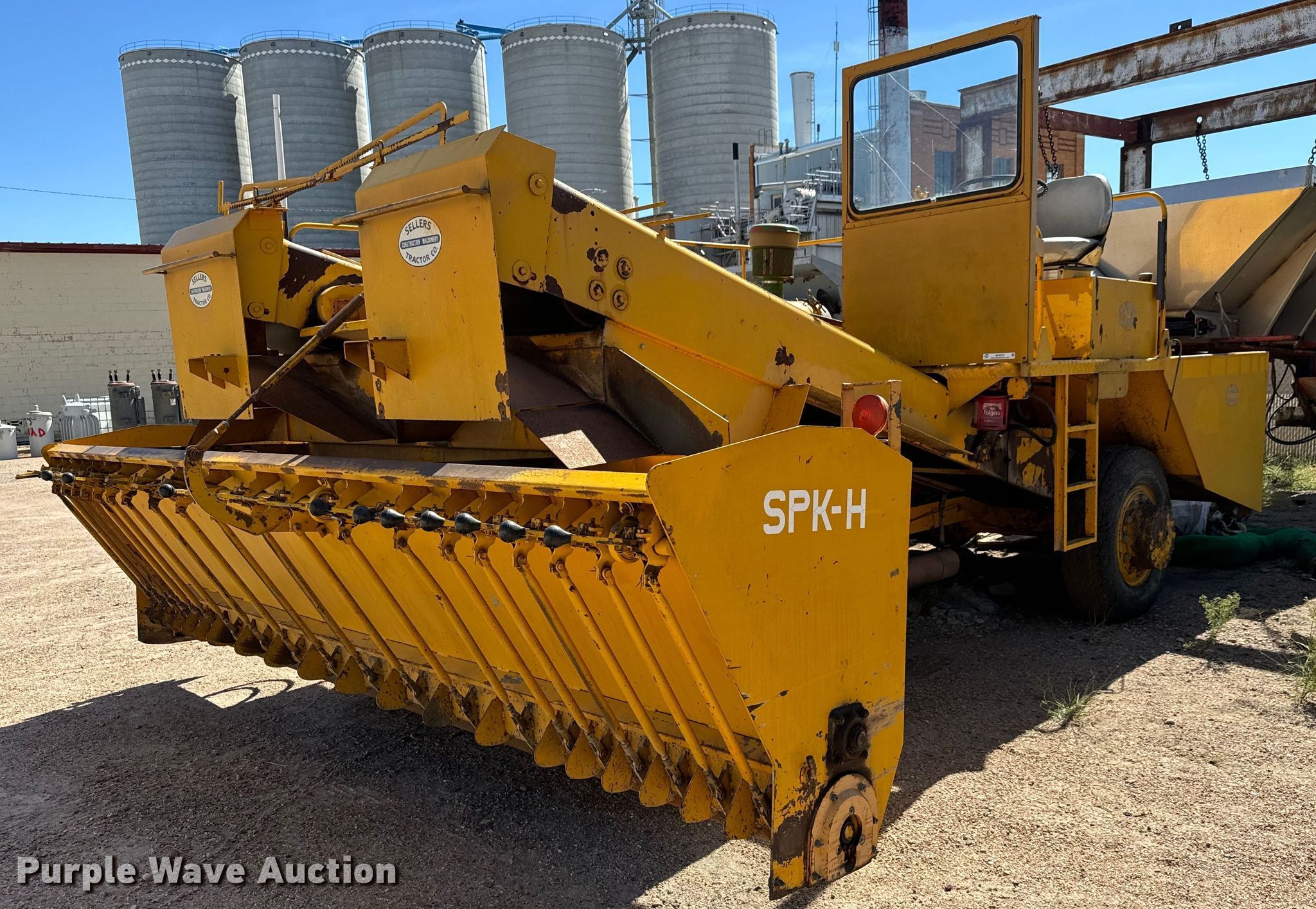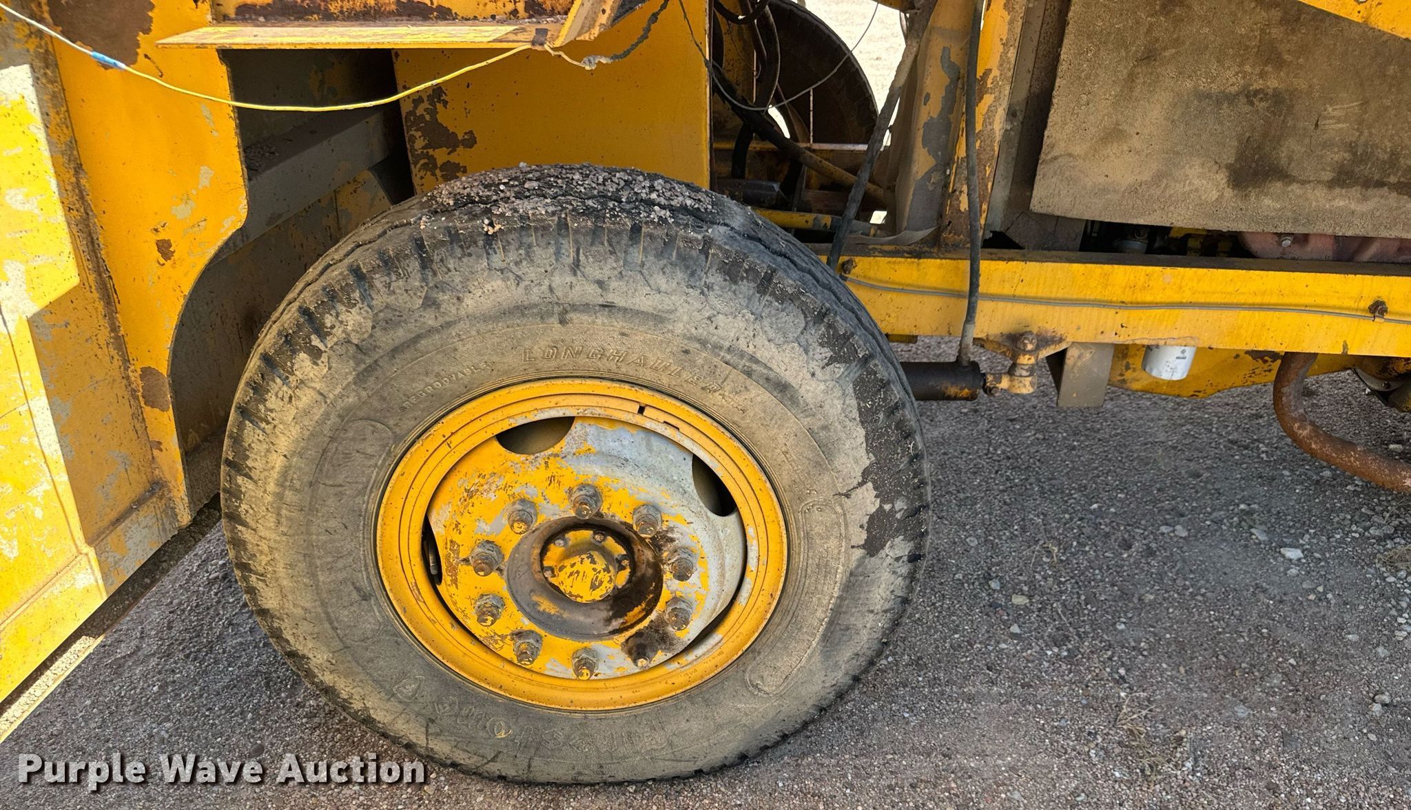 Koehring SPK-H chip spreader. Hours: 924 on meter, Serial: 86318. Engine Cylinders: 8, Fuel type: Gas. Transmission Hydrostatic. Features Front spread hopper width: 14', Material conveyor Width: 20", Truck hitch. Tires Size: 10.00-20. Notes Possible fuel issues, old fuel, Windshield cracked, Unknown operating condition. City of Larned. Larned, KS 67550