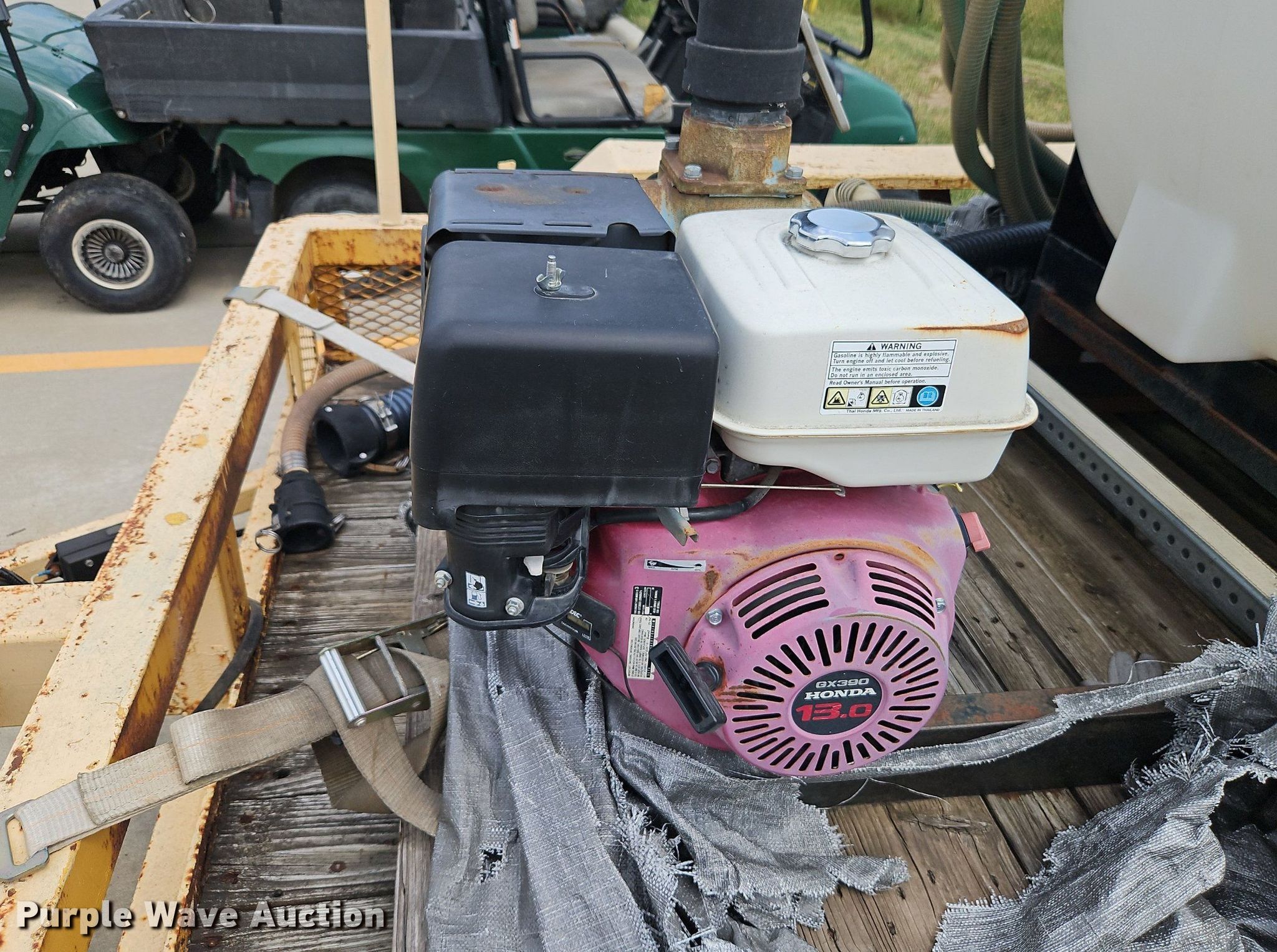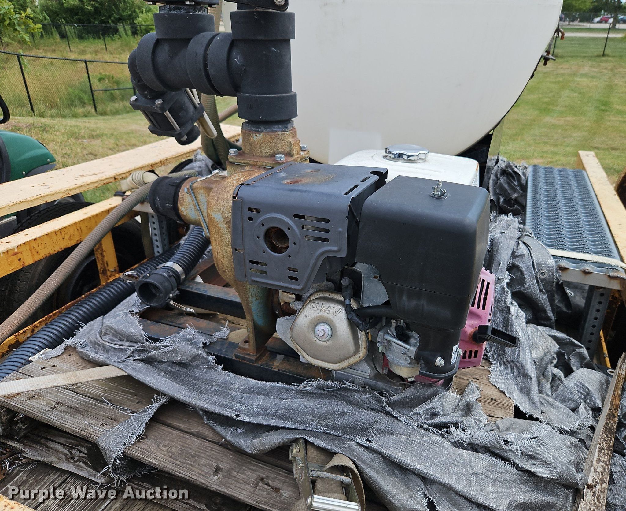 1993 Shop built hydroseeder. VIN: KS112411. Engine Honda GX390, Cylinders: 1, Fuel type: Gas. Features Gallon capacity: 200, Hose Diameter: 1.5", Nozzle, Tank. Trailer 14' 6" L x 94" W, Suspension: Spring, Brakes: Electric, Axles: Tandem, Tire size: ST225/75R15, Pintle hitch. Kansas title. Title distribution may be delayed up to 14 days from verification of funds. Overland Park, KS 66213