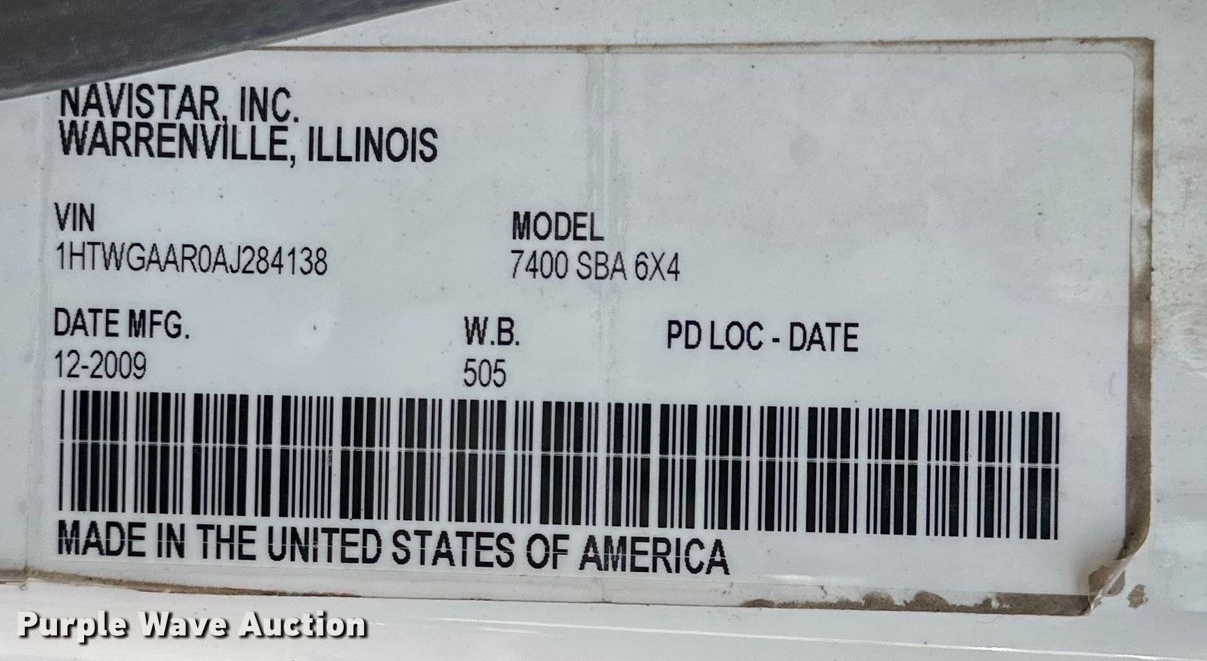 - VIN: 1HTWGAAR0AJ284138
