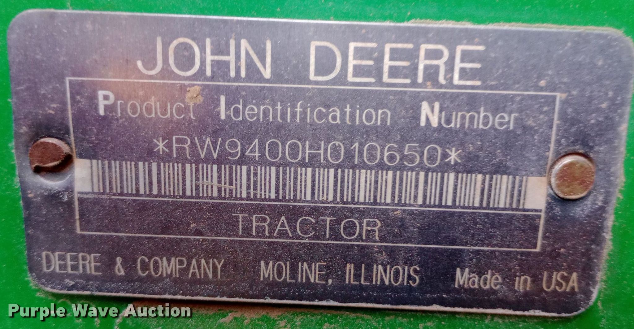 Purple Wave is selling a used Articulated 4-Wheel Drive Tractor in Oklahoma. This item is a 1998 John Deere 9400 4WD tractor with the following: Hours: 173 on meter, Actual hours unknown, Serial: RW9400H010650