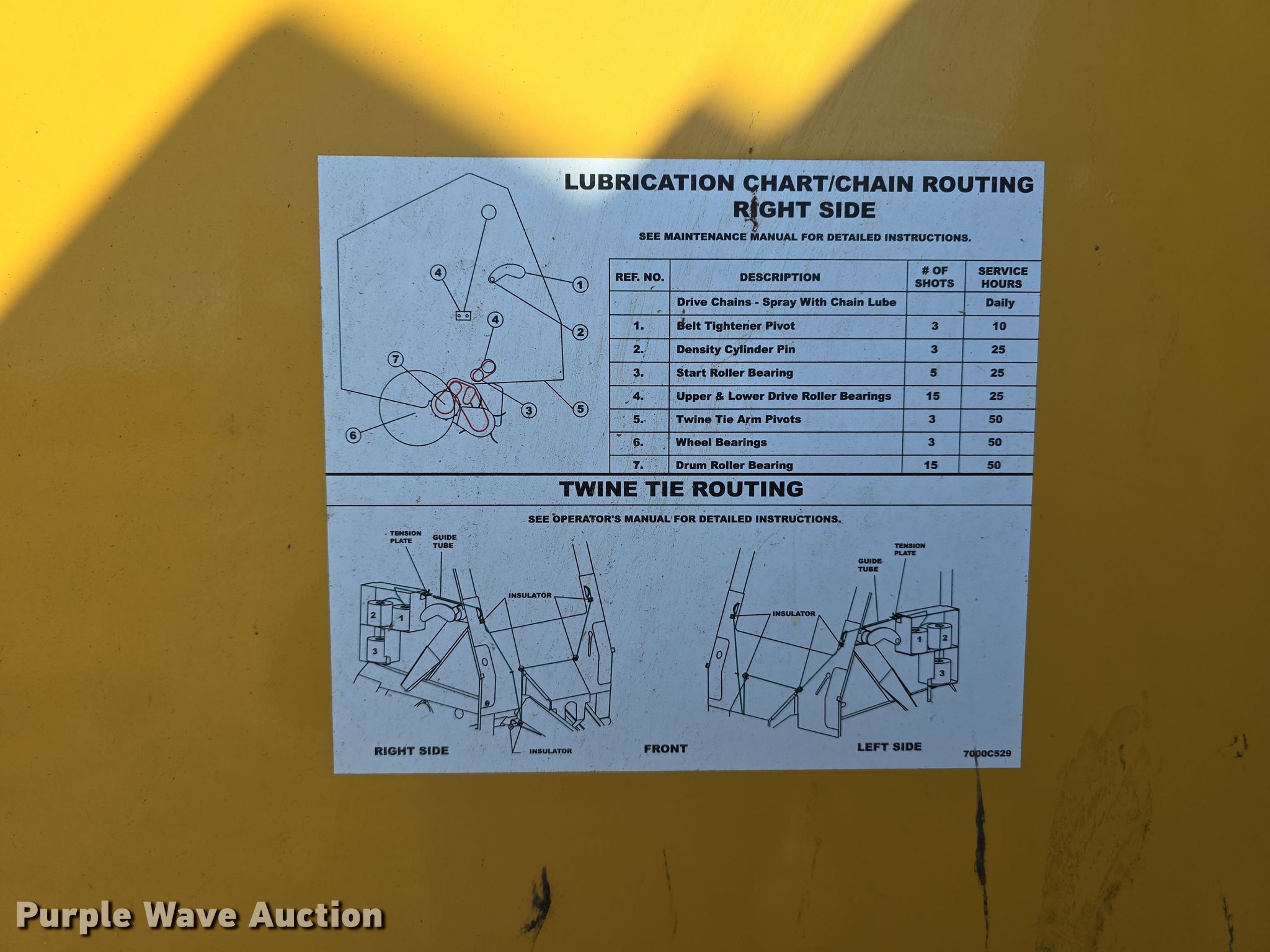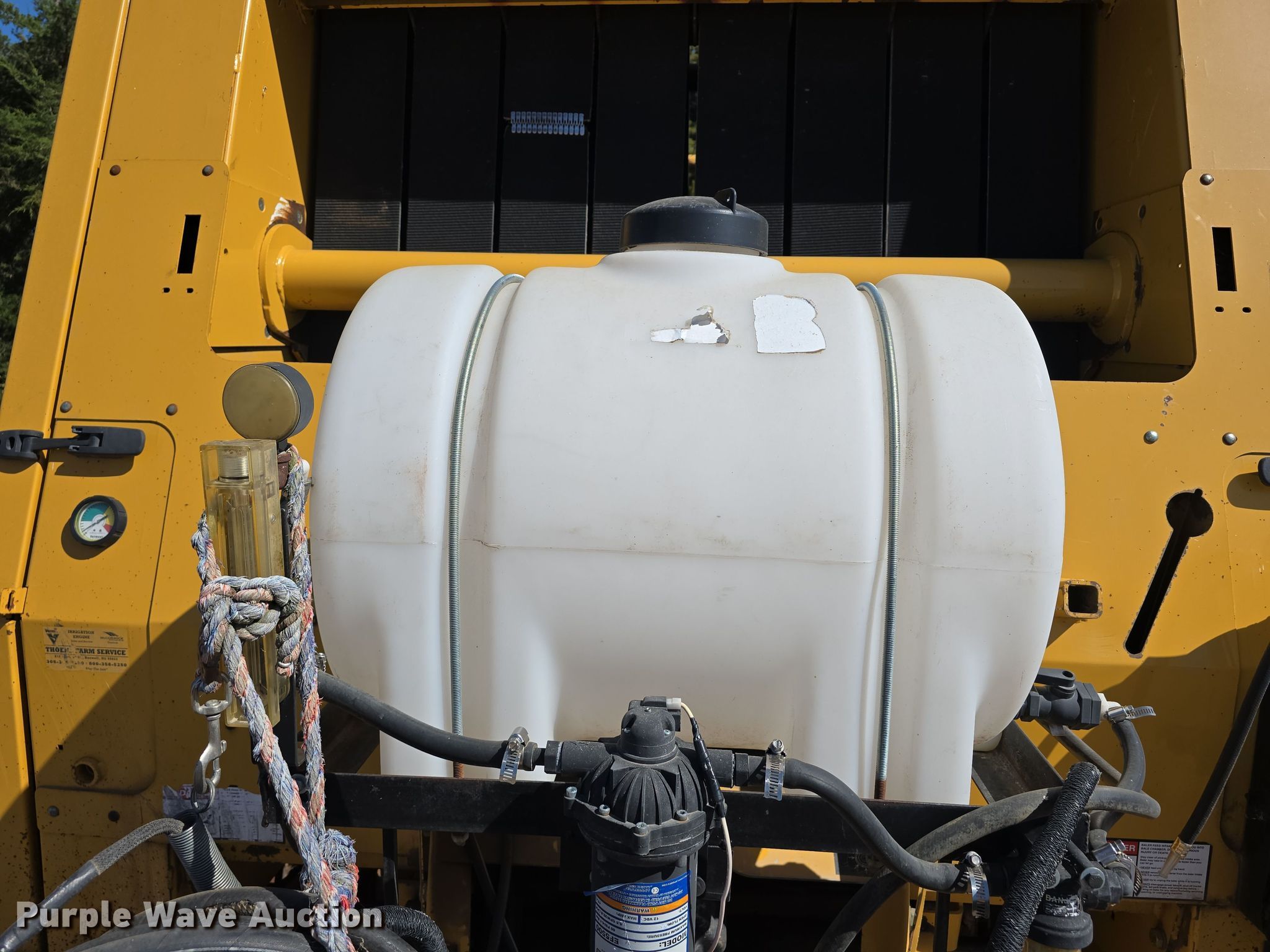 2014 Vermeer 605SM Cornstalk Special round baler. Serial: 1VR316143E1009114. Features PTO: 1 3/4" 1000, Auto lube, Gauge wheels Size: 7.10-16HD, Pickup width: 85"", Hydraulic pickup lift, Preservative applicator system Tank size: 35 gallons, 12V pump, Bale size: 5'x6', Twine tie, Net-wrap, Bale ramp. Tires Size: 21.5L-16.1SL. Notes Fire extinguisher included. Prime Contracting. Ashton, NE 68817