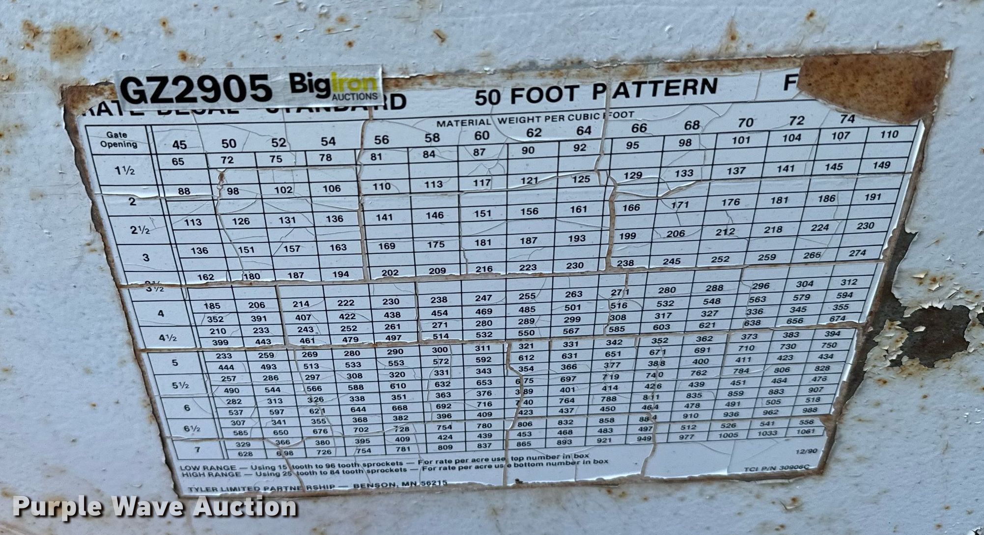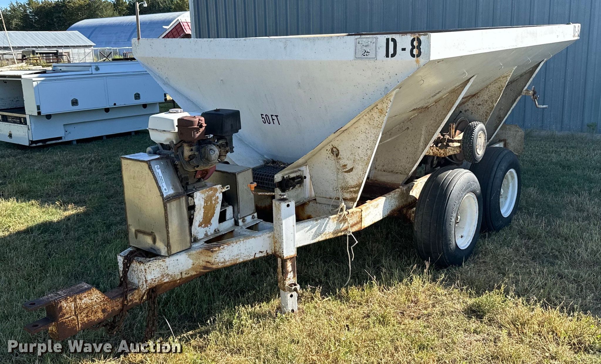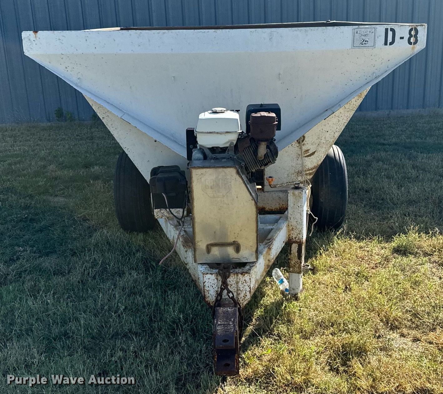 Spreader. Engine. Honda, Cylinders: 1, Fuel type: Gas, HP: 13. Features Dry fertilizer spreader Stainless steel, Ground driven, Conveyor belt Width: 10".. Tires Size: 11L-15SL. Schoenberger Land & Cattle. Ogallah, KS 67656