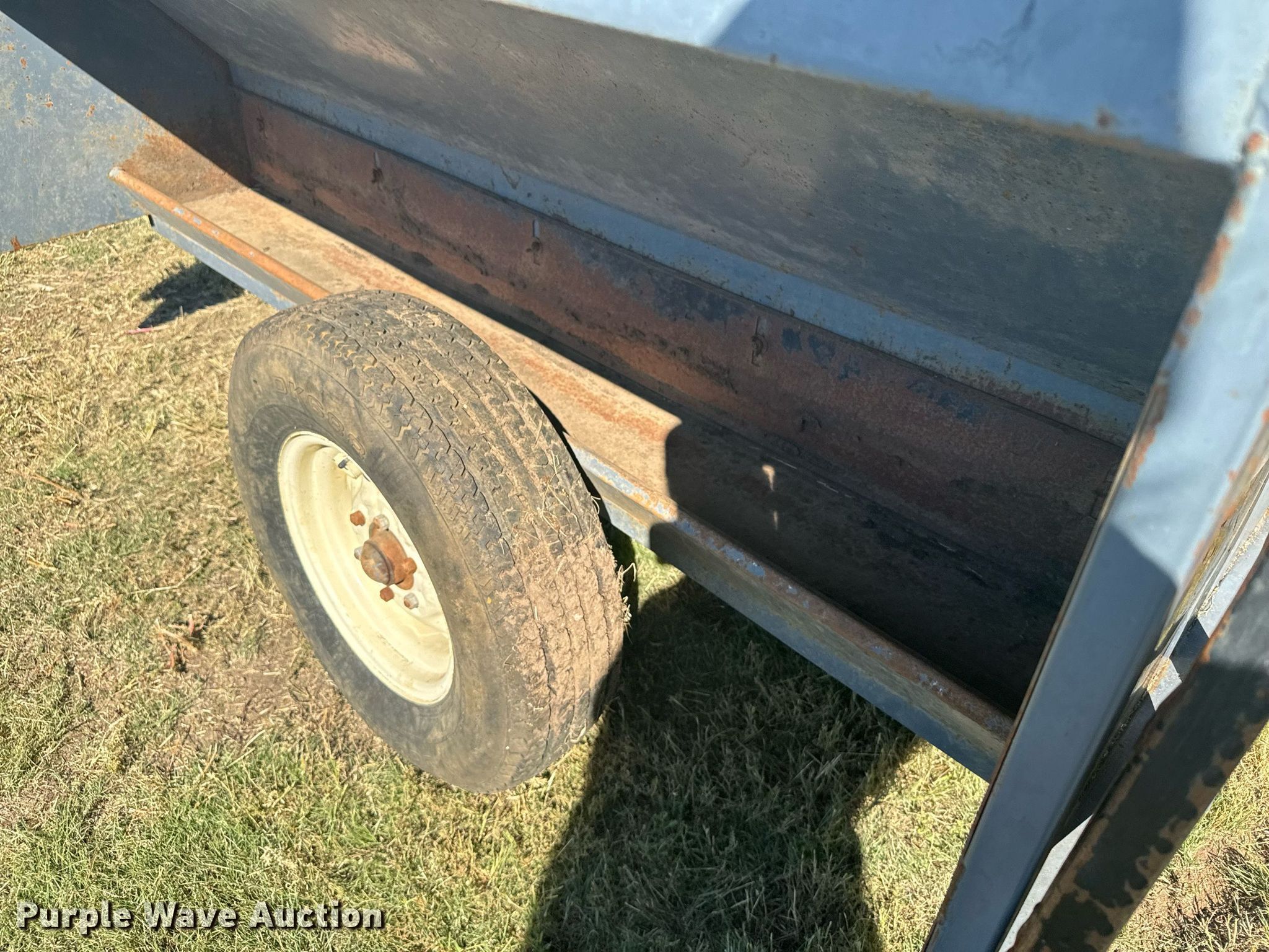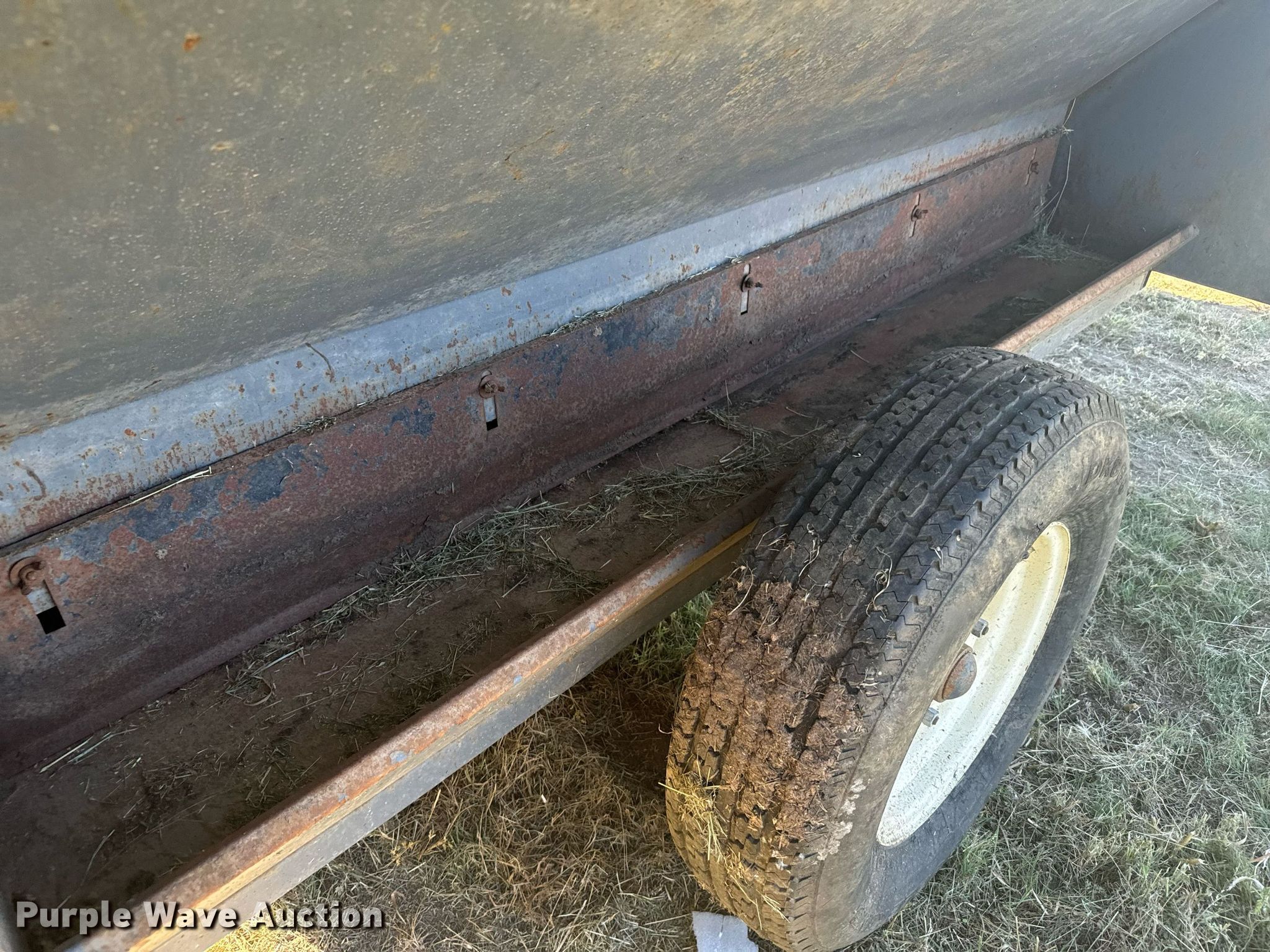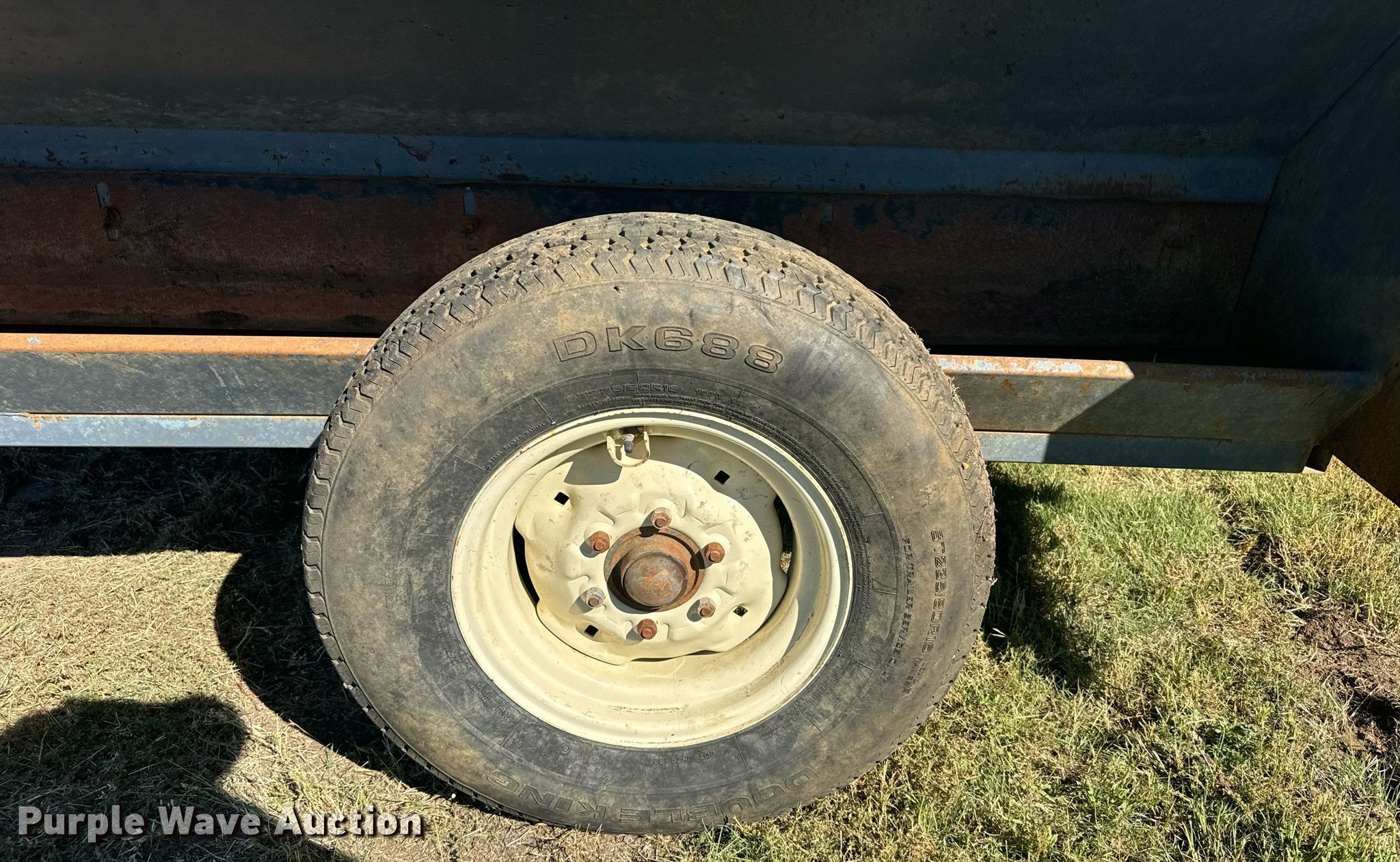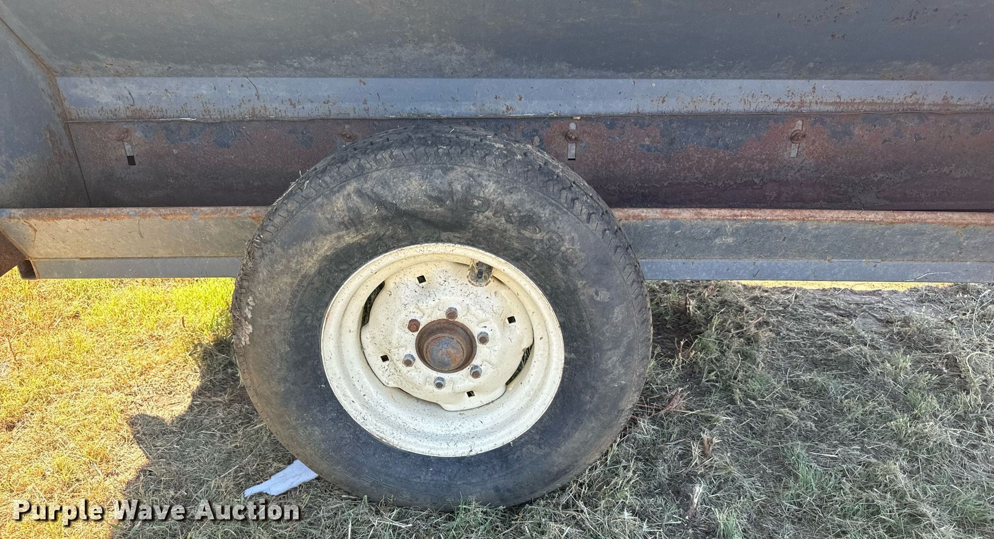 L-H creep feeder. Dimensions. Overall: 11' L x 89" W, Body: 8' L x 84" W. Features Body type: Steel. Chassis Landing gear: Single. Tires Steel wheels, Size: 225/80R16. Schoenberger Land & Cattle. Ogallah, KS 67656