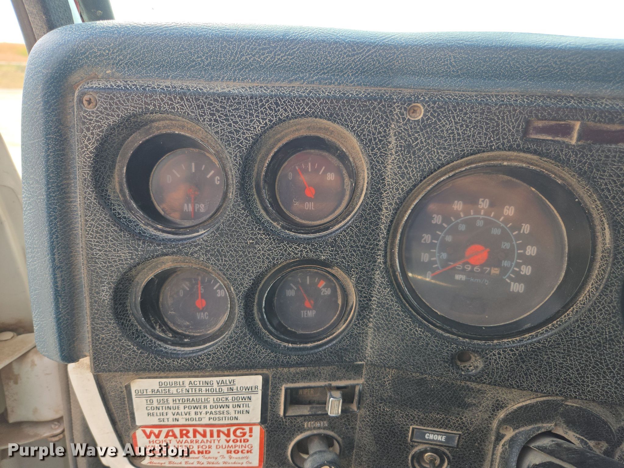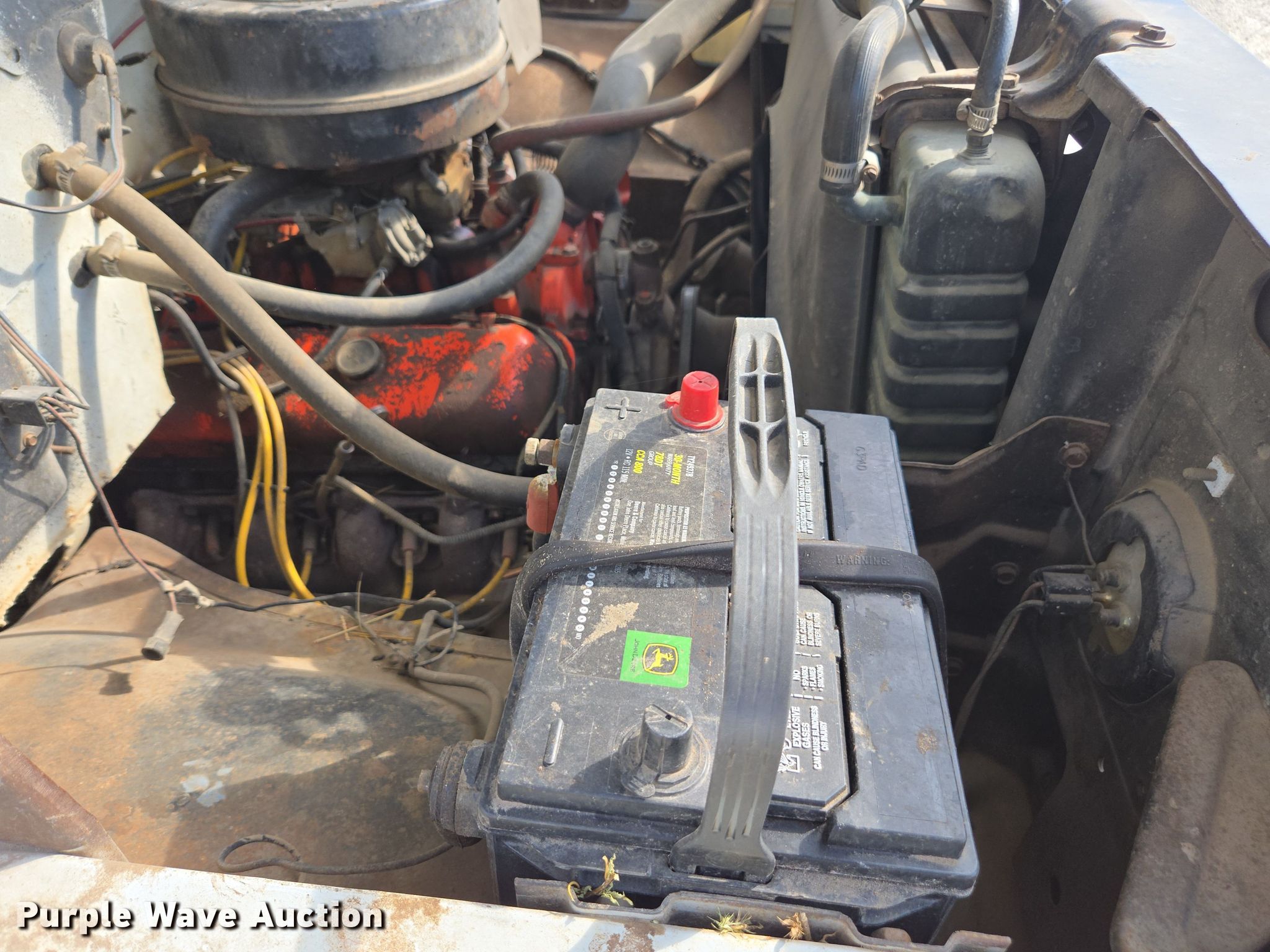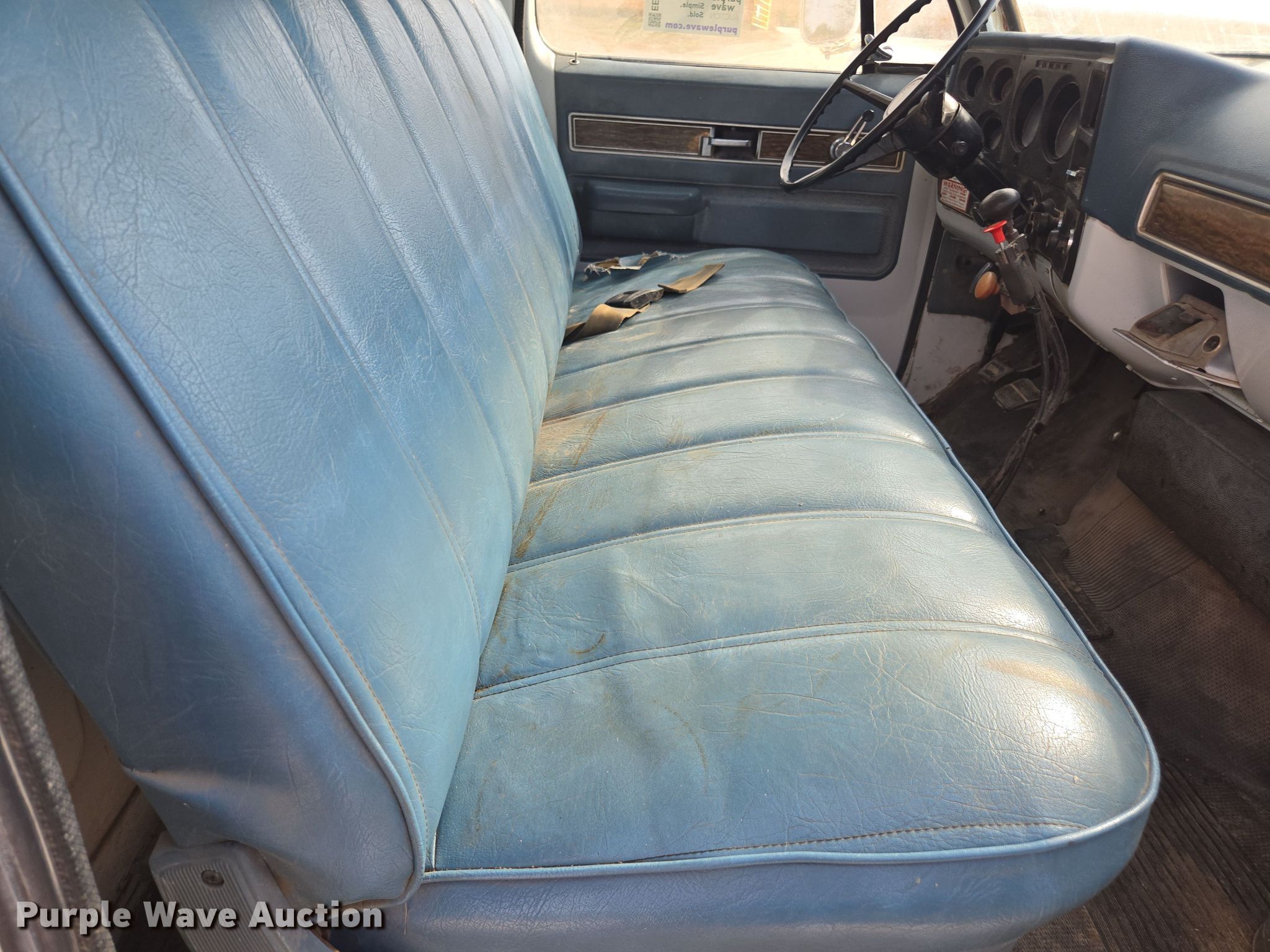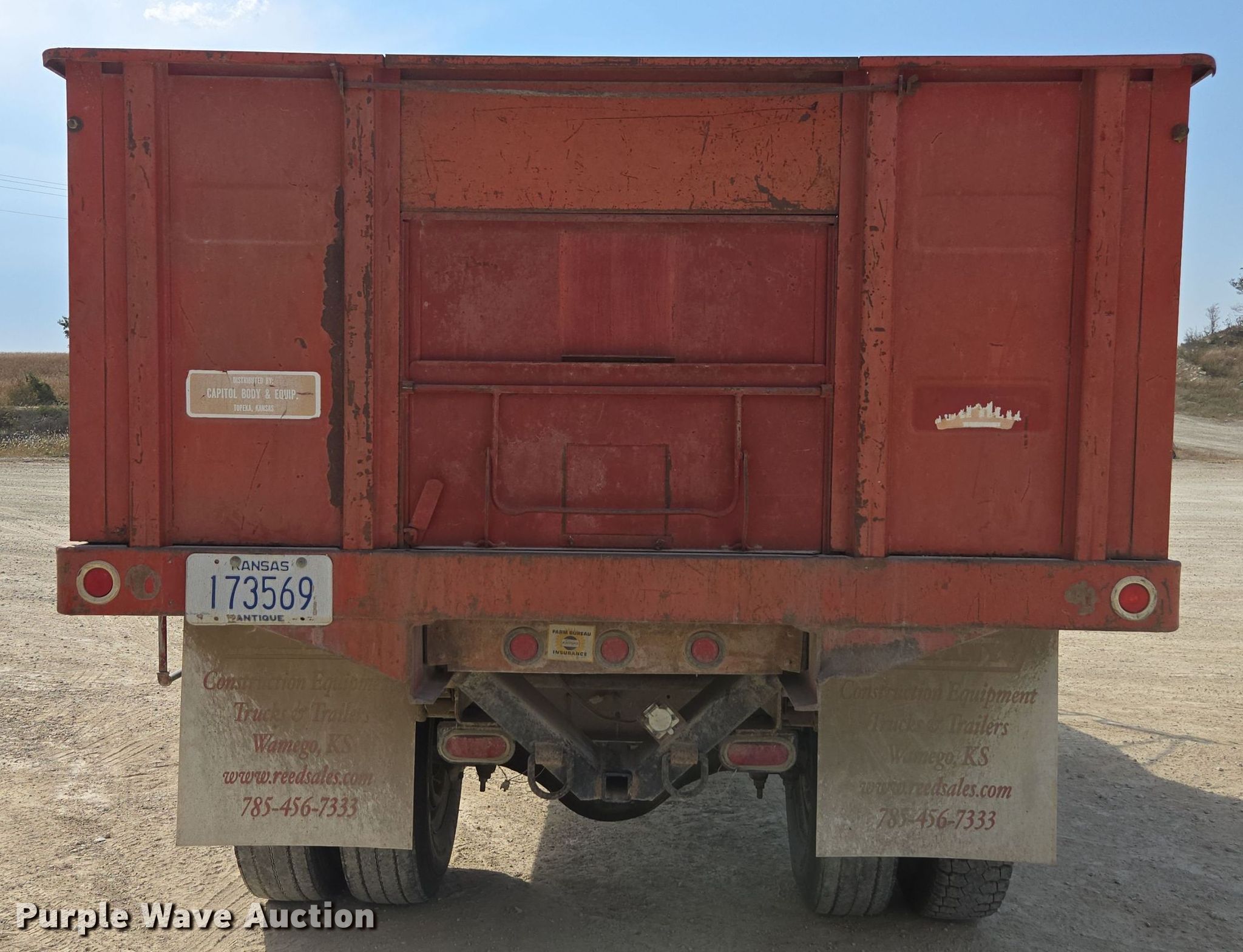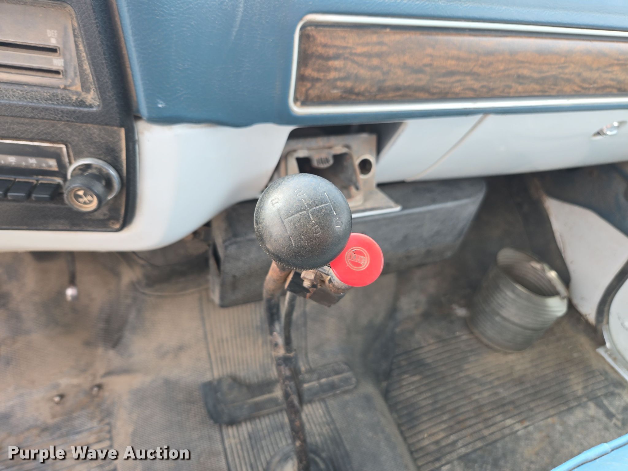 1976 Chevrolet C65 grain truck. Miles: 75,968 on odometer, VIN: CCE676V126212. Engine Cylinders: 8, Fuel type: Gas. Transmission Manual, Speed: 5, plus 2. Chassis Axles: Single, Suspension: Spring, Brakes: Hydraulic, PTO. Interior Heat. Features Dump bed Capitol, 16' L x 94" W, Side height: 40", Side board height: 9", Bed type: Steel, Ram: Single, End gate: Manual. Tires Front: 9.00R20, Rear: 10.00R20. Notes Windshield chipped or cracked. Kansas antique title. Saint George, KS 66535