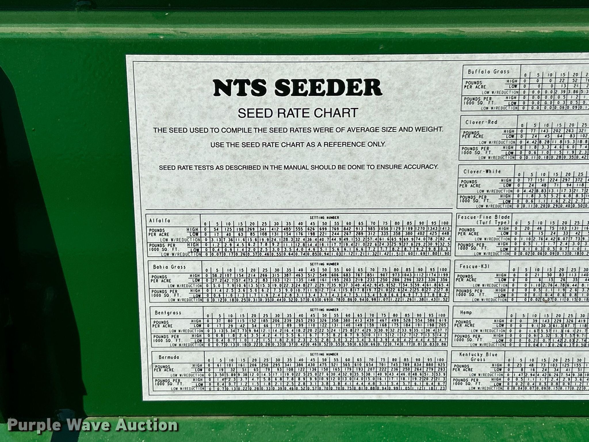 2020 Great Plains NTS2609 no-till seeder. Width: 8.5', Row units: 14, Row spacing: 7", Serial: GP-D1506L. Features Seed delivery Bulk fill system, Native grasses, Row units Meter drive: Electric, Down pressure: Hydraulic, Electronics Monitor Great Plains Acre Counter, Acres: 93 on meter.. Tires Transport tire size: 6.70-15SL Quantity: 2. Bland, MO 65014
