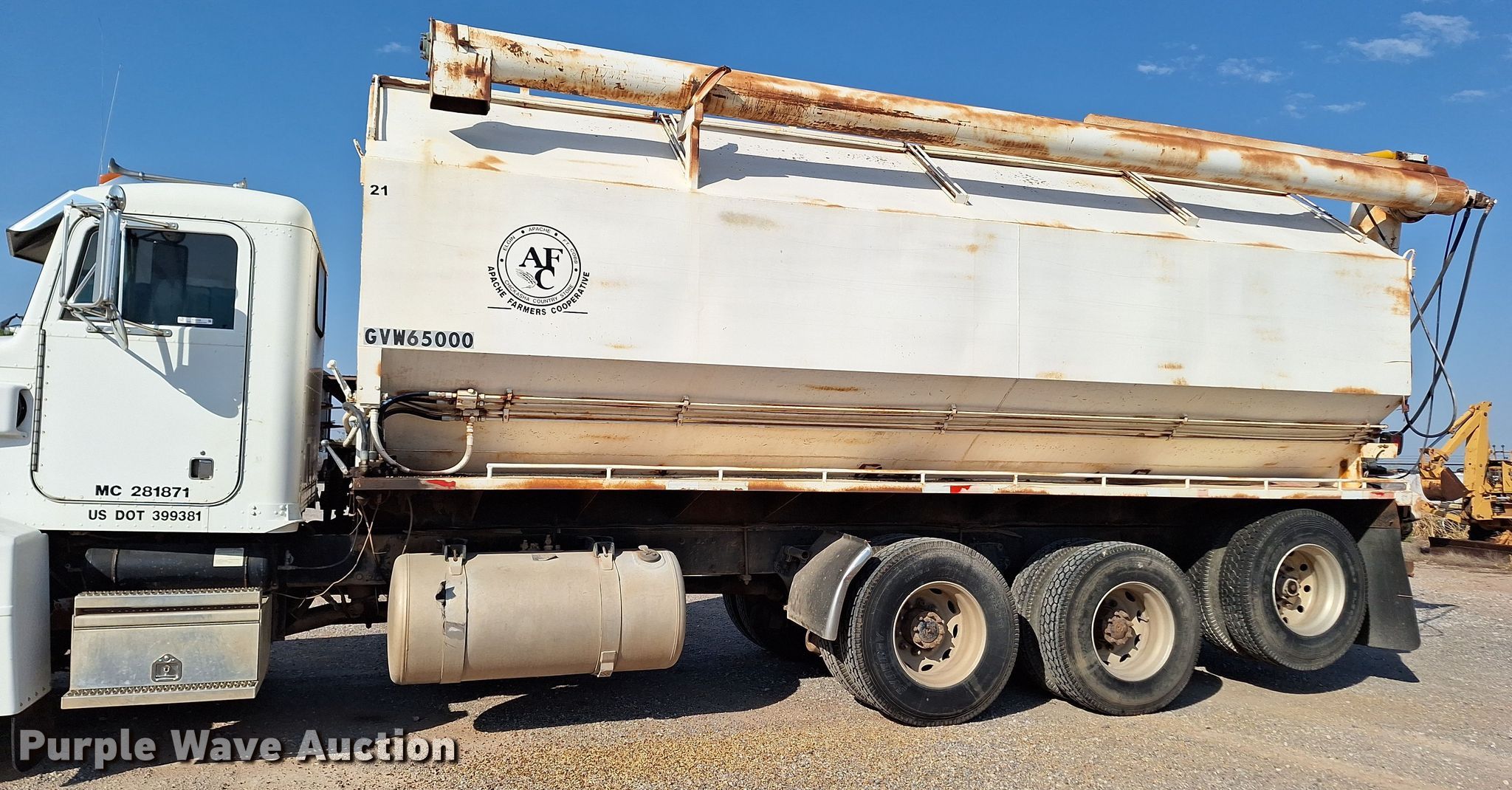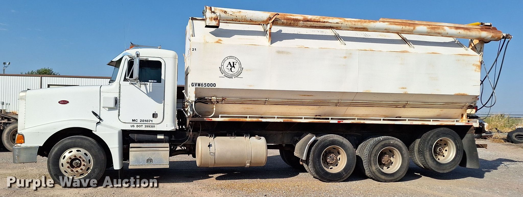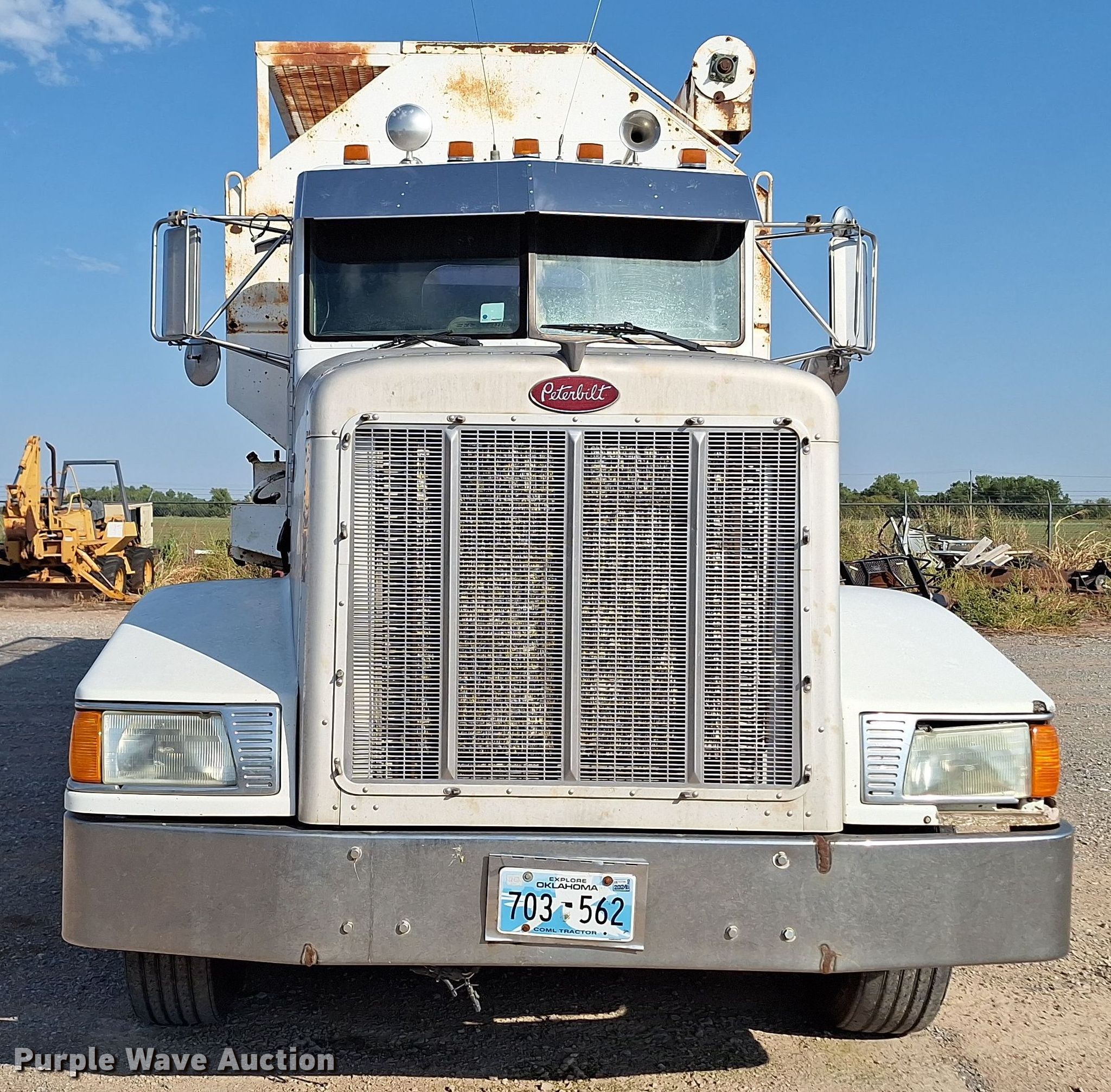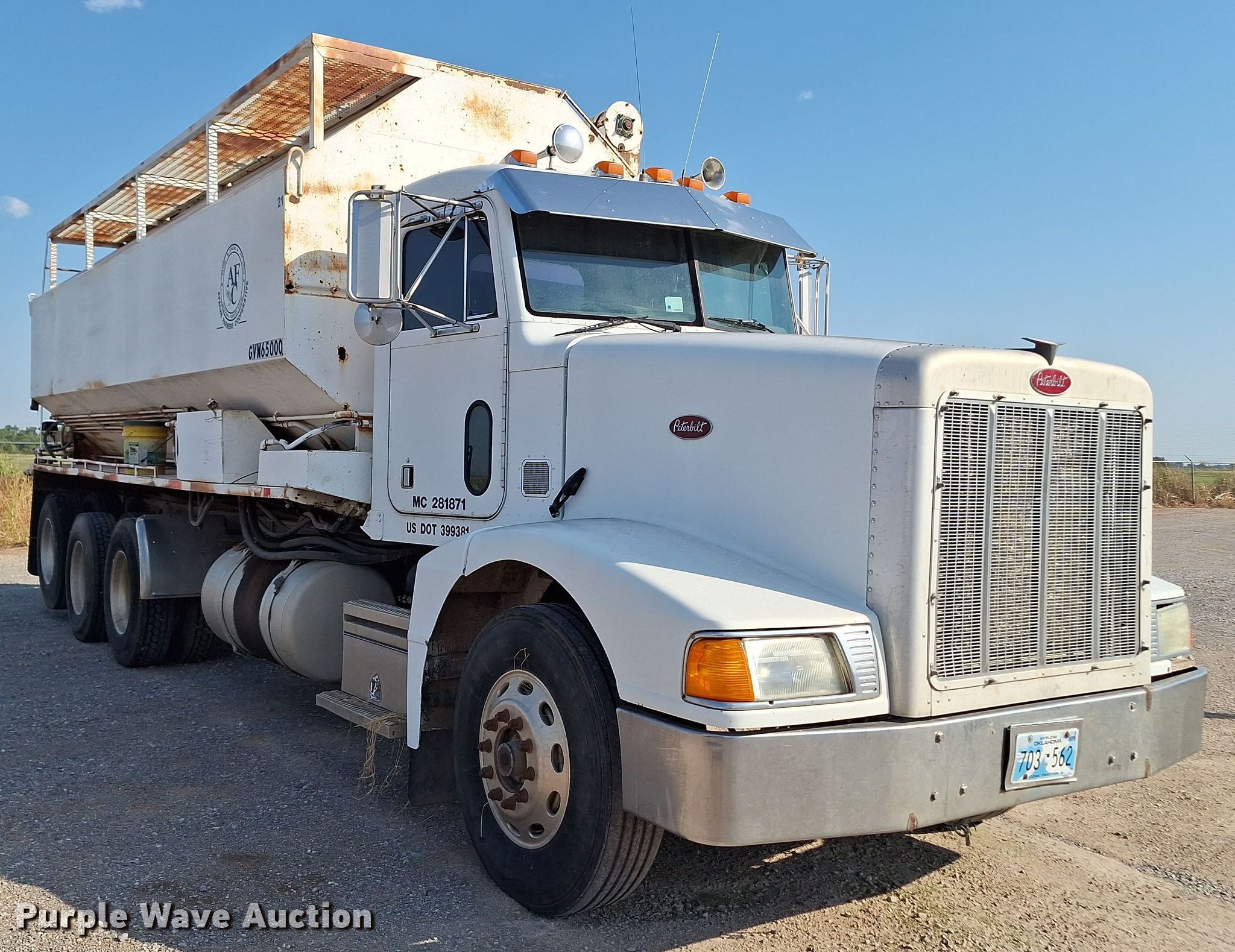 Purple Wave is selling a used Fertilizer or Feed Delivery Truck in Oklahoma. This item is a 1995 Peterbilt 377 feed delivery truck with the following: Miles: 1,664,813 on odometer, Hours: 1,378 on meter, VIN: 1XPCD69X9SD372449