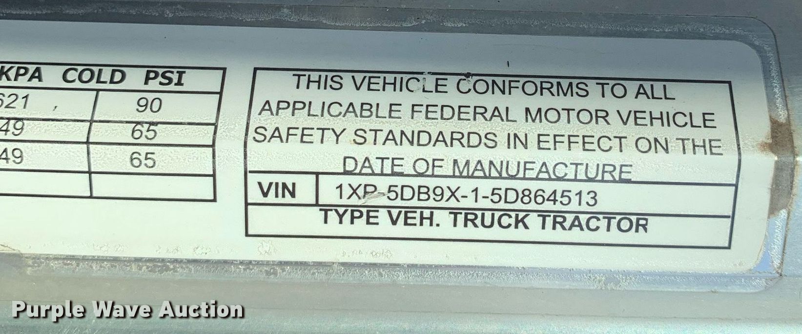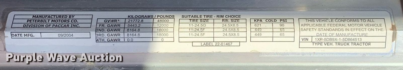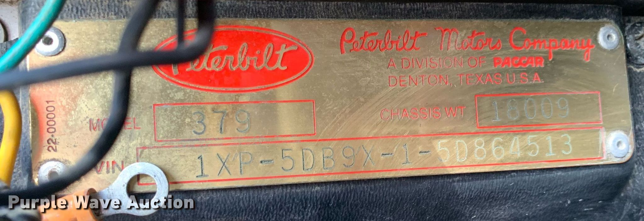Purple Wave is selling a used Truck Tractor in Texas. This item is a 2005 Peterbilt 379 semi truck with the following: Miles: 117 on odometer, Actual milage unknown, VIN: 1XP5DB9X15D864513