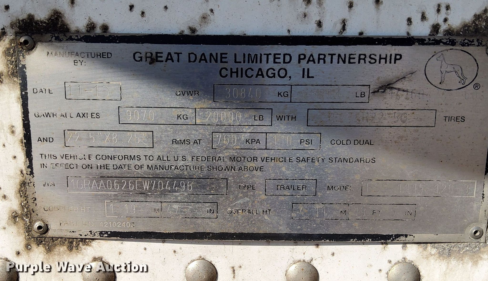 Purple Wave is selling a used Refrigerated Van Trailer in Colorado. This item is a 2014 Great Dane ESS-1119-12053 refrigerated van trailer with the following: VIN: 1GRAA0626EW704496
