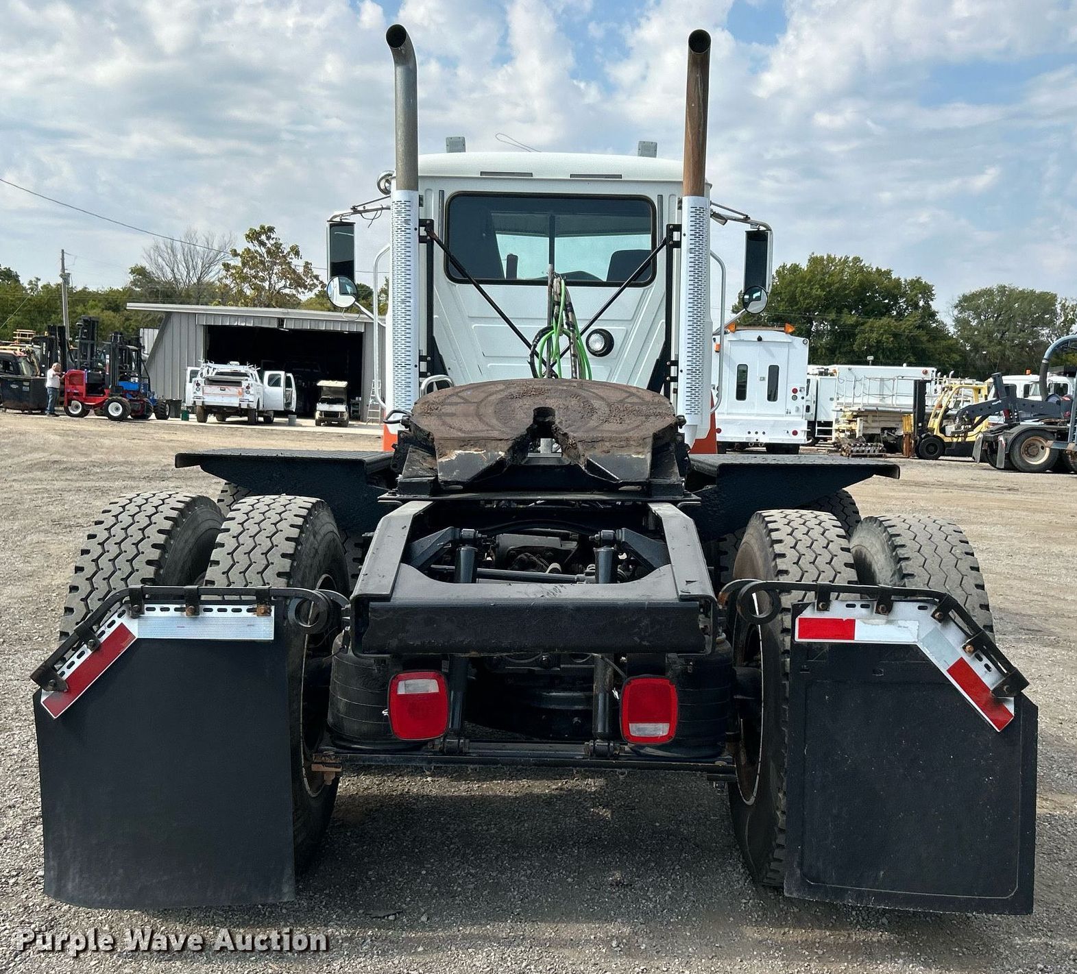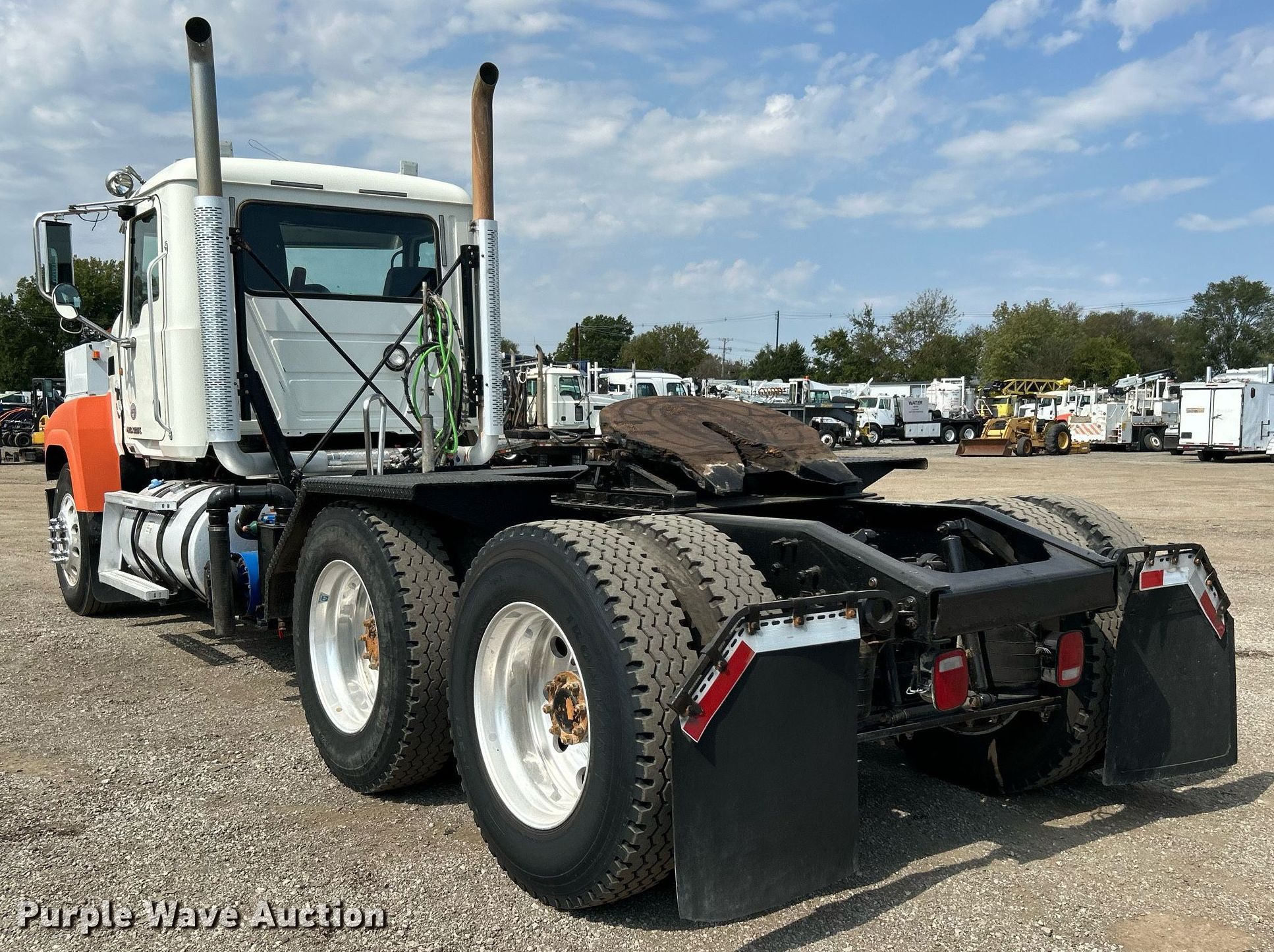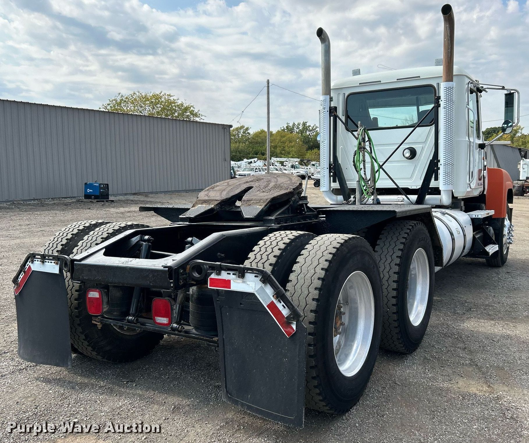 2013 Mack CHU613 semi truck. Miles: 547,123 on odometer, VIN: 1M1AN07YXDM014682. Engine Mack MP8, Displacement: 12.7L, Cylinders: 6, Fuel type: Diesel. Transmission Eaton Fuller, Manual, Speed: 13. Chassis Axles: Tandem, Differential lock: Inter-axle, Suspension: Air Dump valves, Brakes: Air, PTO, GVWR: 52,320 lbs FAWR: 14,320 lbs, IAWR: 19,000 lbs, RAWR: 19,000 lbs. Interior AC, Heat, Heated mirrors, Power windows, Power locks, Cruise control, Air ride cab. Features Deck plate: Aluminum, Fifth wheel type: Fixed, Fuel tank: Dual, Pump Fruitland. Tires Size: 11R24.5. Notes Dash warning indicator: ABS, Fault code, ATC. Oklahoma title. Title distribution may be delayed up to 14 days from verification of funds. Collinsville, OK 74021