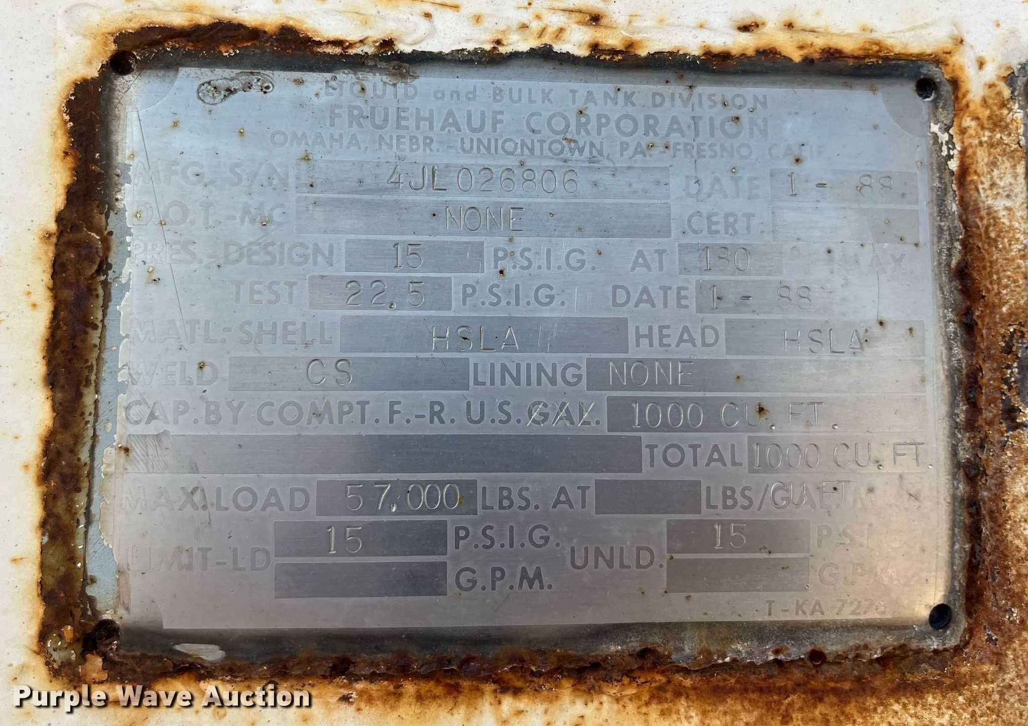 Purple Wave is selling a used Tank Trailer in Missouri. This item is a 1988 Fruehauf HEB-F2-J 1000 pneumatic dry bulk trailer with the following: Overall: 41' 4" L x 97" W