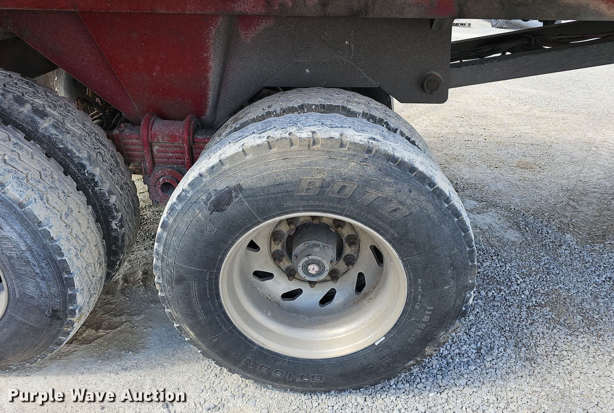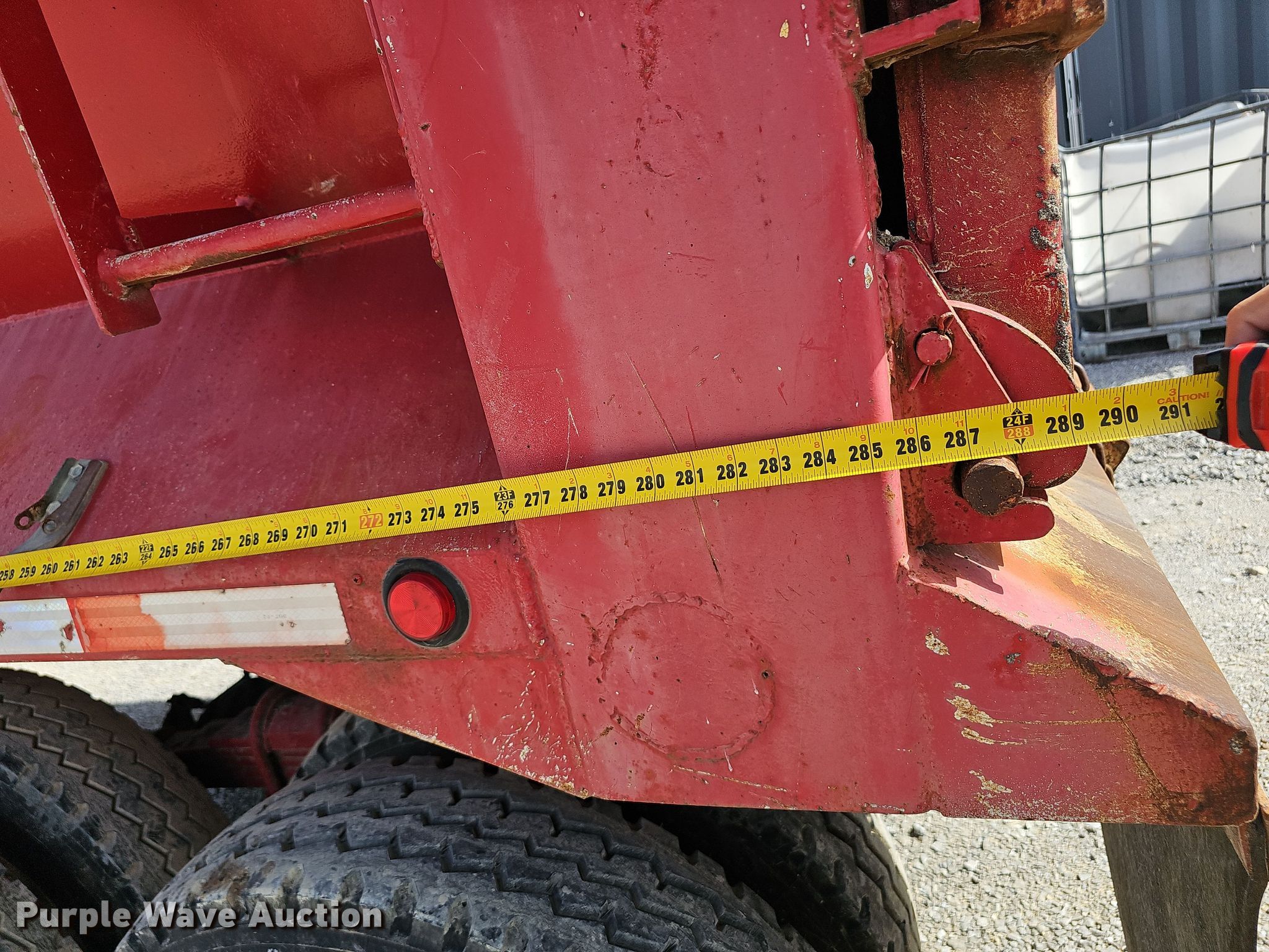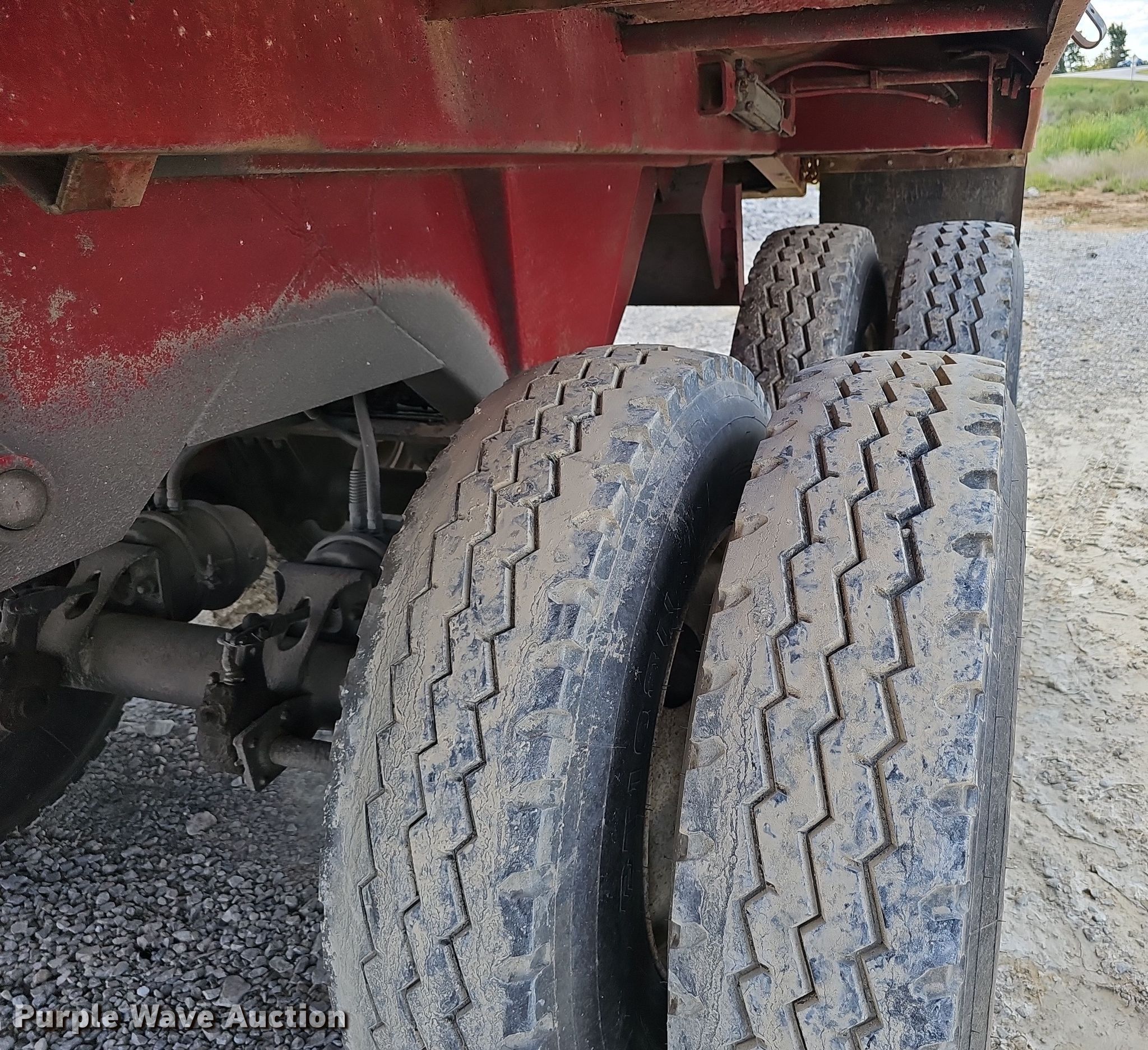 1989 Hilbilt end dump trailer. VIN: 1H9A3E4A0K1015094. Dimensions Overall: 23' 10" L x 98" W, Side height: 54". Features Body type: Steel, Ram: Single, End gate: Air operated, Roll tarp. Chassis Landing gear: Dual, Suspension: Spring, Brakes: Air, Axles: Tandem, GVWR: 70,000 lbs. Tires Aluminum wheels, Size: 11R22.5. Notes Semi not included. Missouri title. Lamar, MO 64759