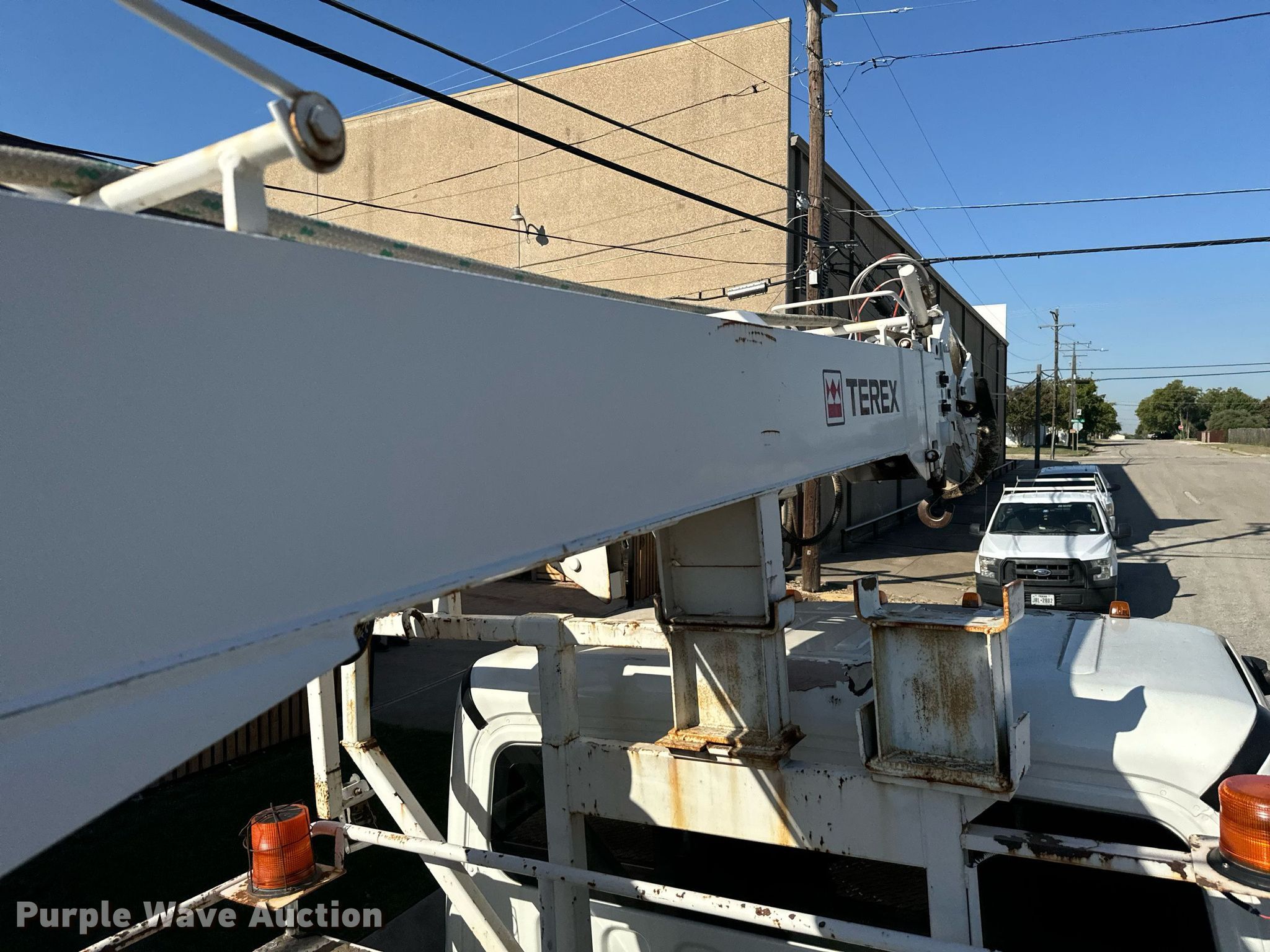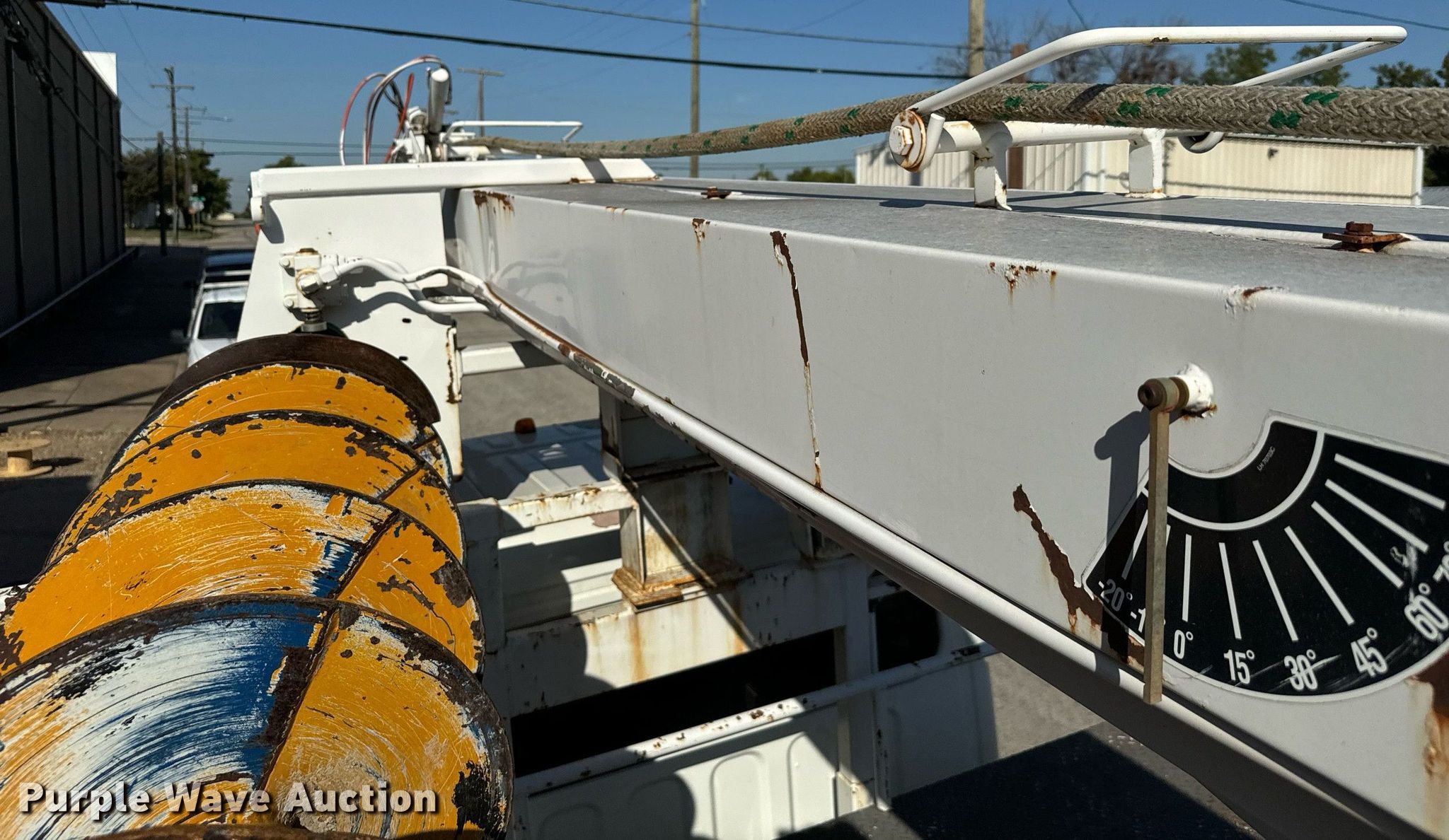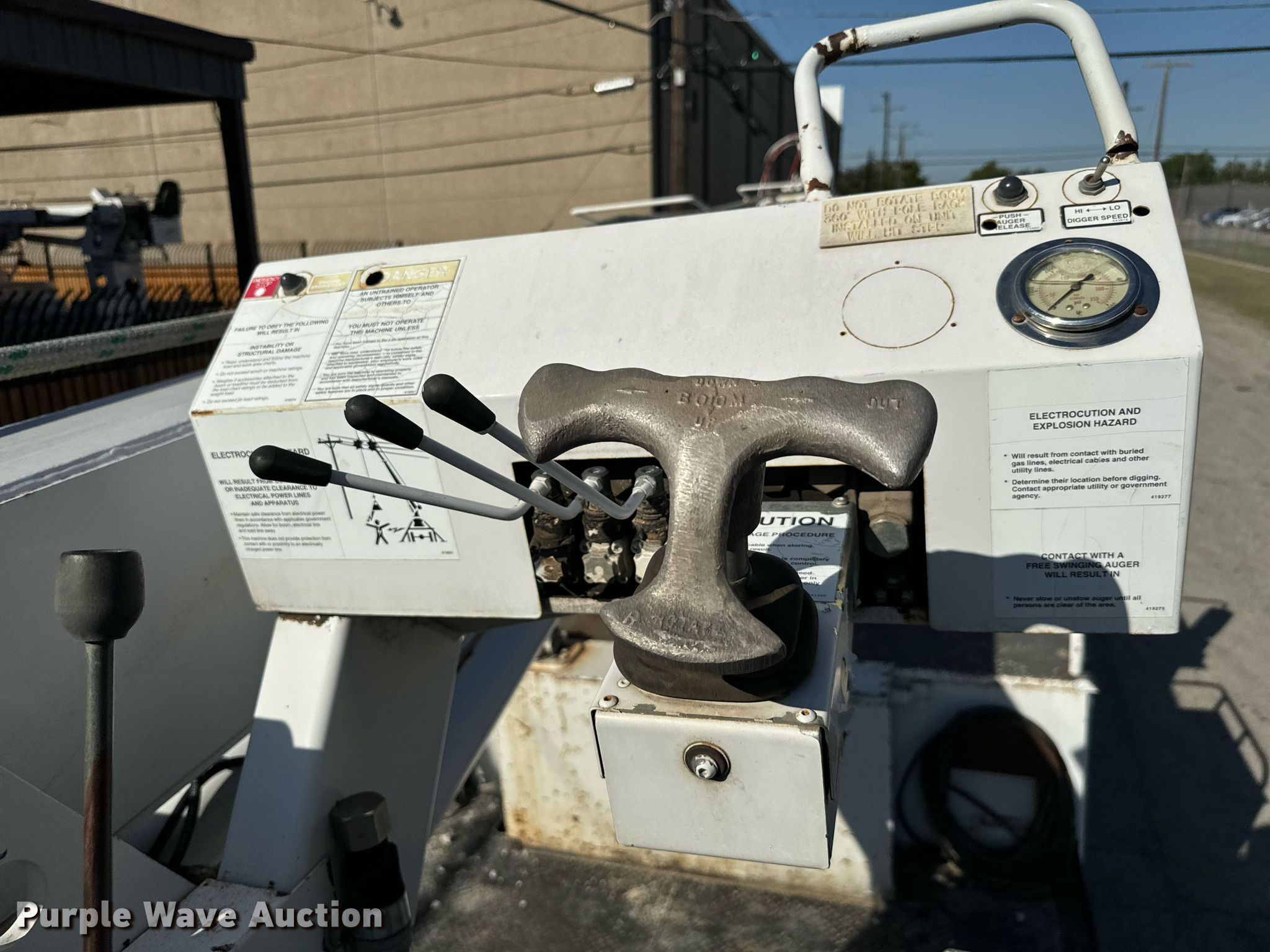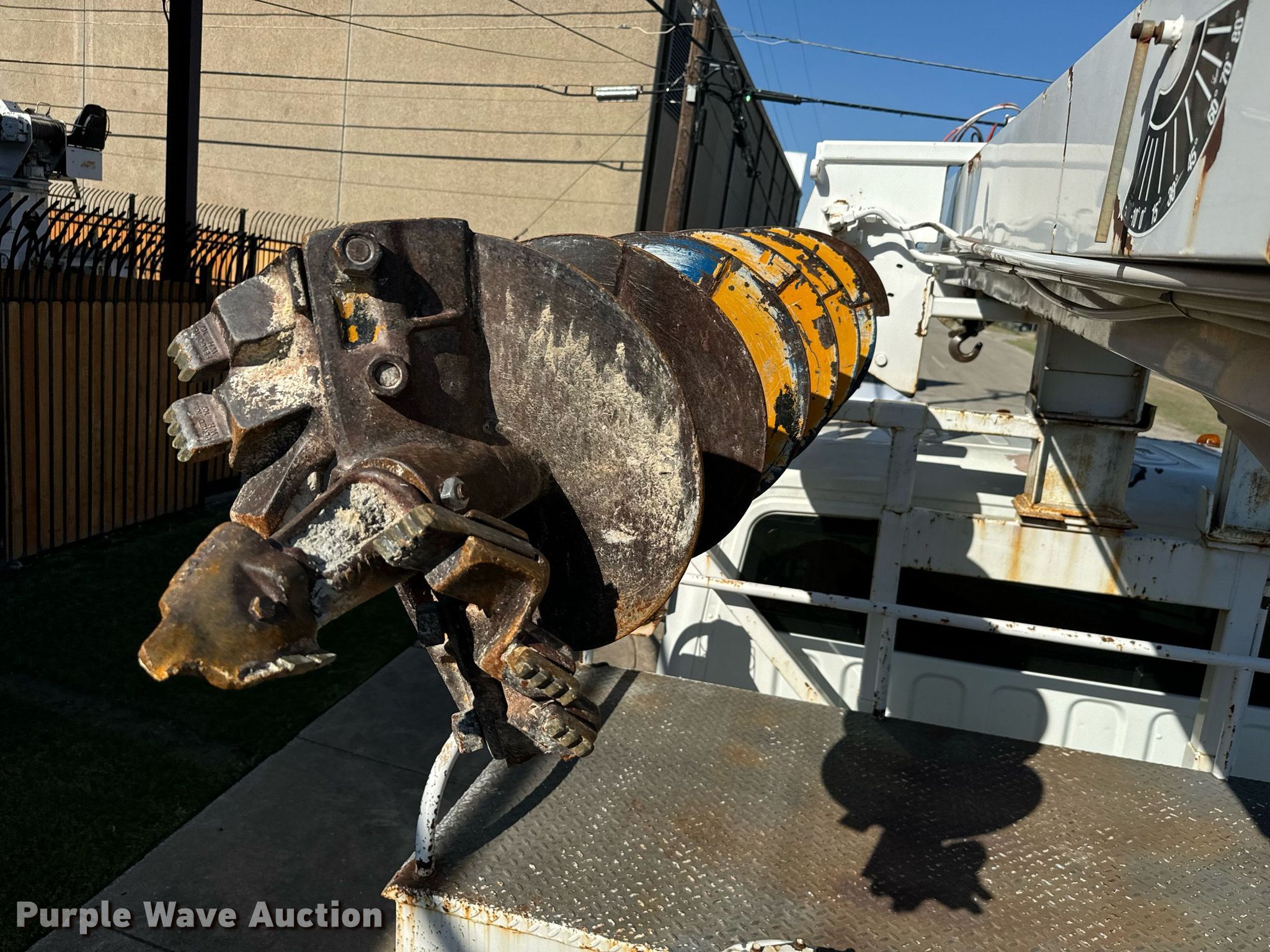 2012 Freightliner Business class M2 digger derrick truck. Miles: 190,178 on odometer, Hours: 9,128 on meter, VIN: 1FVACWDU3CDBH4916. Engine Cummins ISB, Displacement: 6.7L, Fuel type: Diesel. Transmission Automatic. Chassis Axles: Single, Suspension: Spring, Brakes: Hydraulic, PTO, GVWR: 26,000 lbs. Interior AC, Heat, Cruise control, Auxiliary controls. Features Bed 16' 3" L x 8' W, Boom Terex Commander C4047, Maximum lift capacity: 27,500 lbs, Maximum lift height: 47', Boom type: Telescopic, Boom controls Platform/ basket, Material handler, Auger Diameter: 18".. Tires Size: 11R22.5. Notes Dash warning indicator: Check engine. Texas title. Title distribution may be delayed up to 14 days from verification of funds. Trademark Electric Inc. Fort Worth, TX 76116