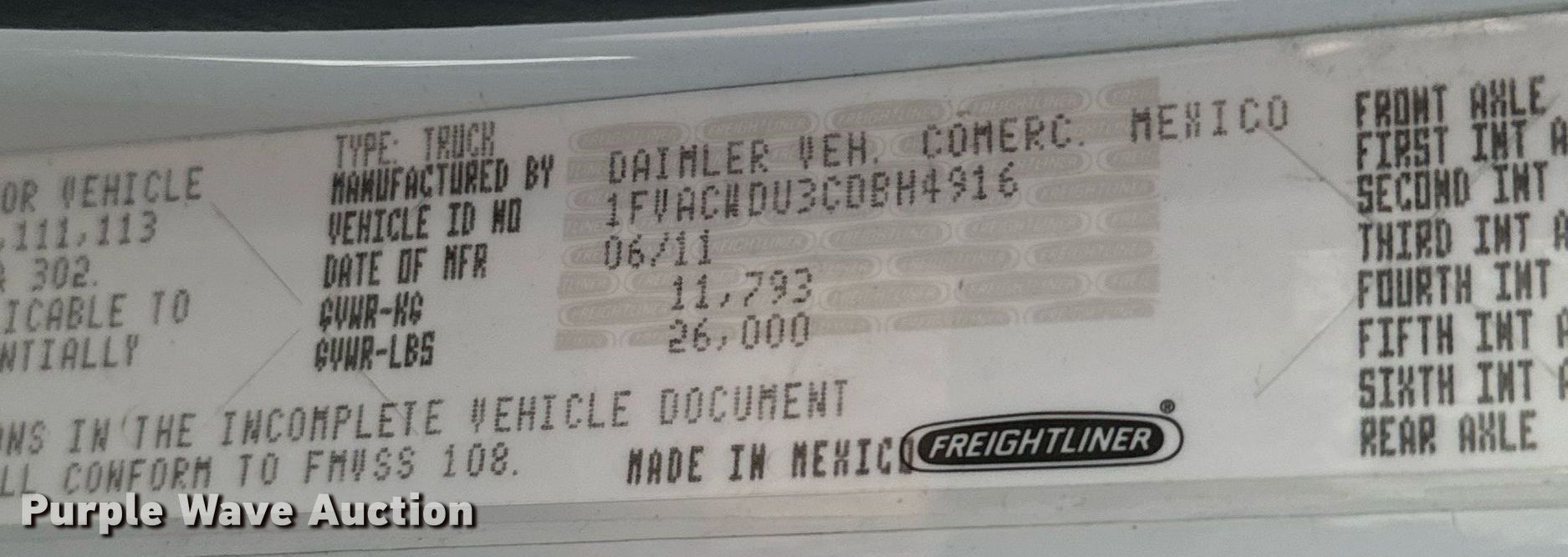 Purple Wave is selling a used Digger Derrick Truck in Texas. This item is a 2012 Freightliner Business class M2 digger derrick truck with the following: Miles: 190,178 on odometer, Hours: 9,128 on meter, VIN: 1FVACWDU3CDBH4916