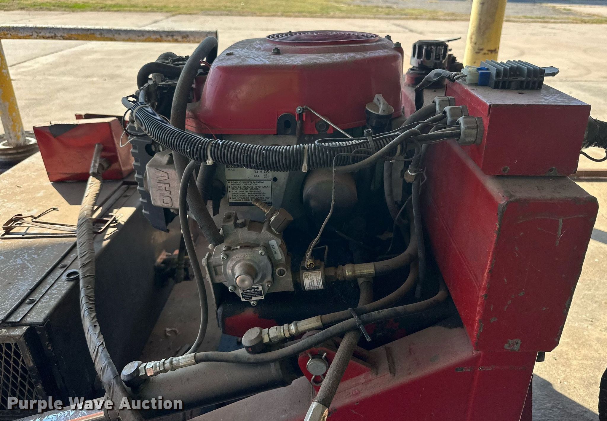 Master Sweep M9000 sweeper. Hours: Unknown, Serial: 480020. Engine Model: GXV620, Displacement: 614 cc, Cylinders: 1, Fuel type: LPG, HP: 20. Features Hydraulic lift. Plains Cotton Cooperative Association. Altus, OK 73521