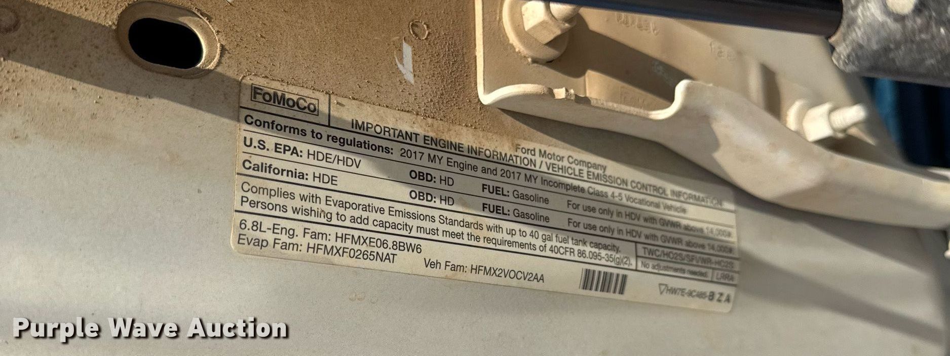 2017 Ford F450 Super Duty XL truck cab and chassis. Miles: 228,398 on odometer, VIN: 1FD0W4HY6HEE02082. Engine Displacement: 6.8L V10 SOHC, Cylinders: 10, Fuel type: Gas. Transmission Automatic, Four wheel drive. Interior AC, Heat, Heated mirrors, Power windows, Power locks, Cruise control. Tires Size: 225/70R19.5. Notes Windshield chipped or cracked. Texas title. Isbell Construction. Florence, TX 76527
