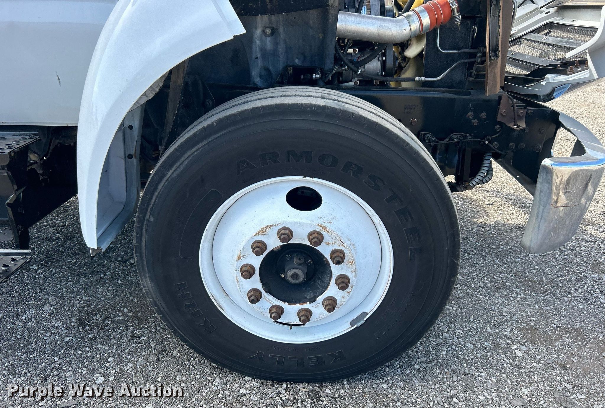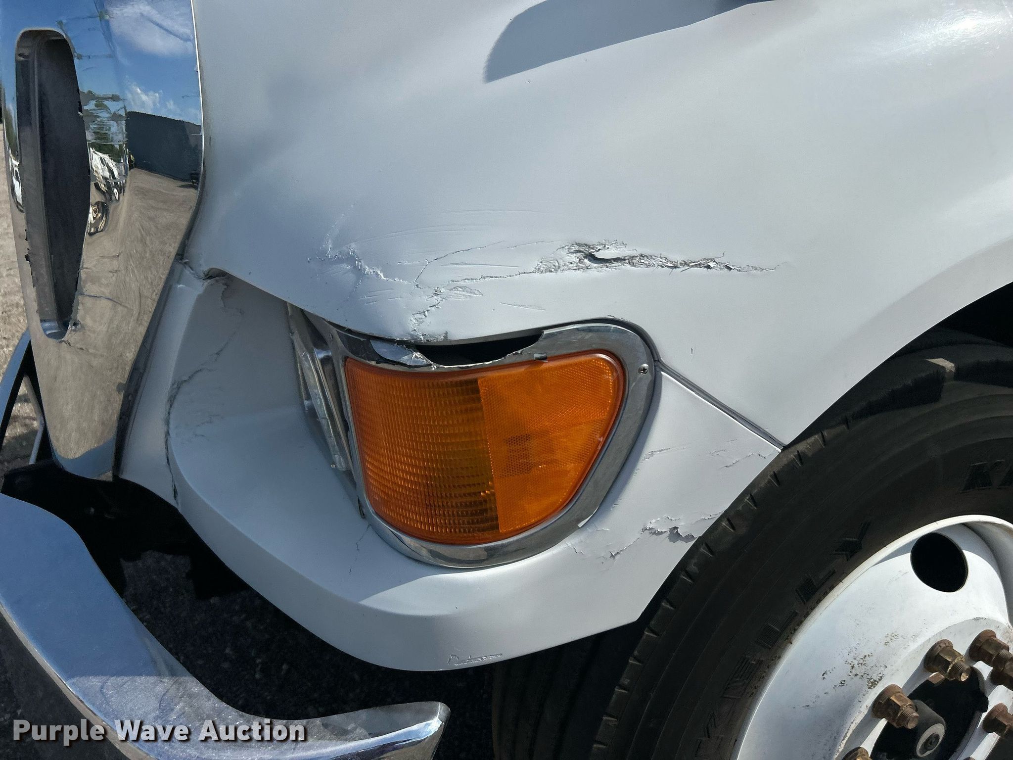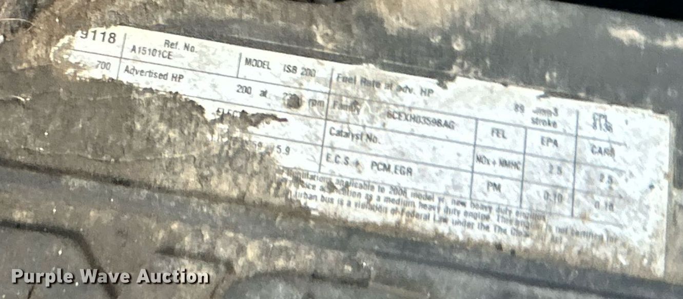 2007 Ford F650 Super Duty flatbed truck. Miles: 184,510 on odometer, VIN: 3FRNF65A97V515351. Engine Cummins ISB 200, Displacement: 5.9L, Cylinders: 6, Fuel type: Diesel, HP: 200. Transmission Automatic. Chassis Axles: Single, Suspension: Spring, Brakes: Hydraulic, GVWR: 26,000 lbs, Wheelbase: 260". Interior AC, Heat, Cruise control. Features Flatbed Supreme Corp, 24' 8" L x 98" W, End gate lift Waltco. Tires Size: 295/75R22.5. Notes Windshield chipped or cracked, AC issues, does not blow cold. Oklahoma title. Title distribution may be delayed up to 14 days from verification of funds. Collinsville, OK 74021