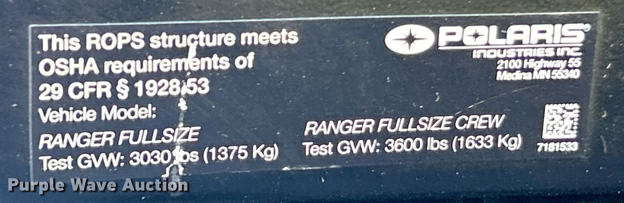 This 2016 Polaris Ranger Crew 900 HD utility vehicle will sell to the highest bidder regardless of price.
