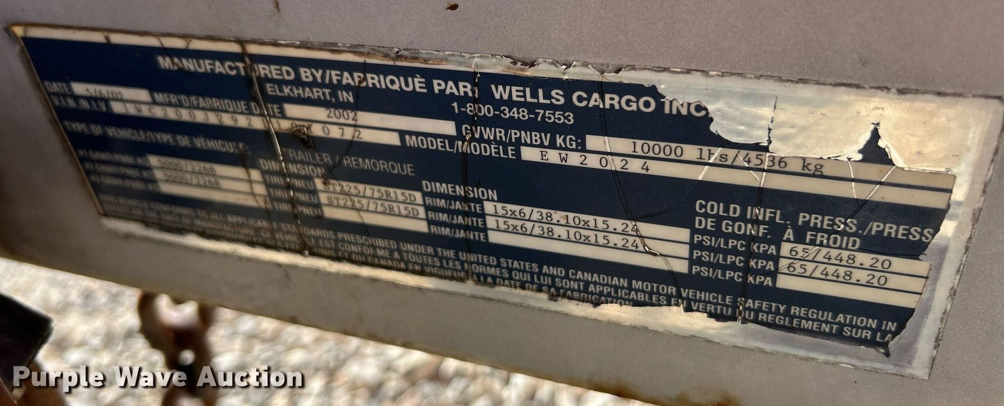Purple Wave is selling a used Enclosed Cargo Trailer in Missouri. This item is a 2002 Wells Cargo enclosed cargo trailer with the following: VIN: 1WC200J2921101072