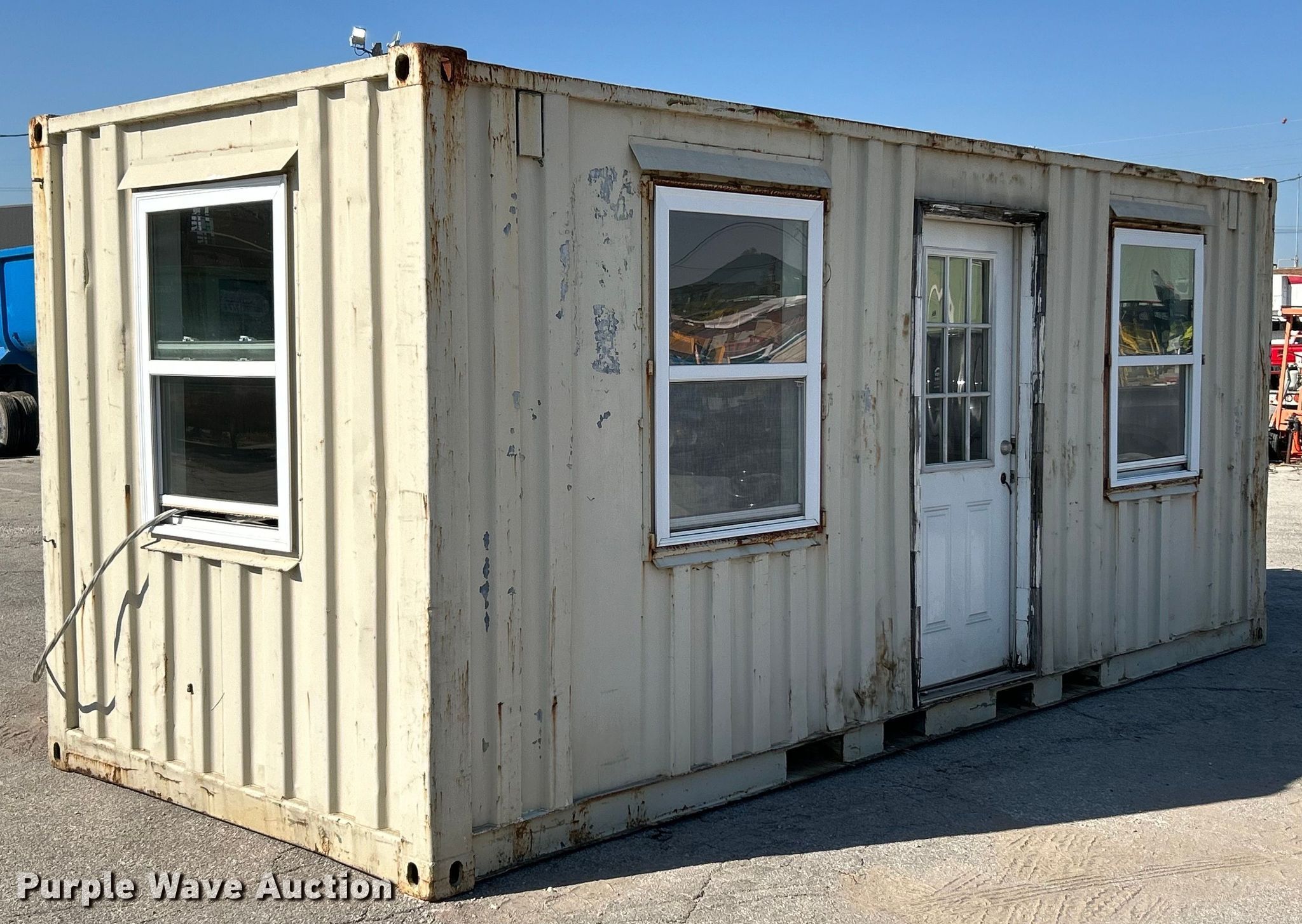 Purple Wave is selling a used Storage or Shipping Container in Missouri. This item is a Office container with the following: 19'10" L x 95" W x 101" H, Contents Included, Hole in floor