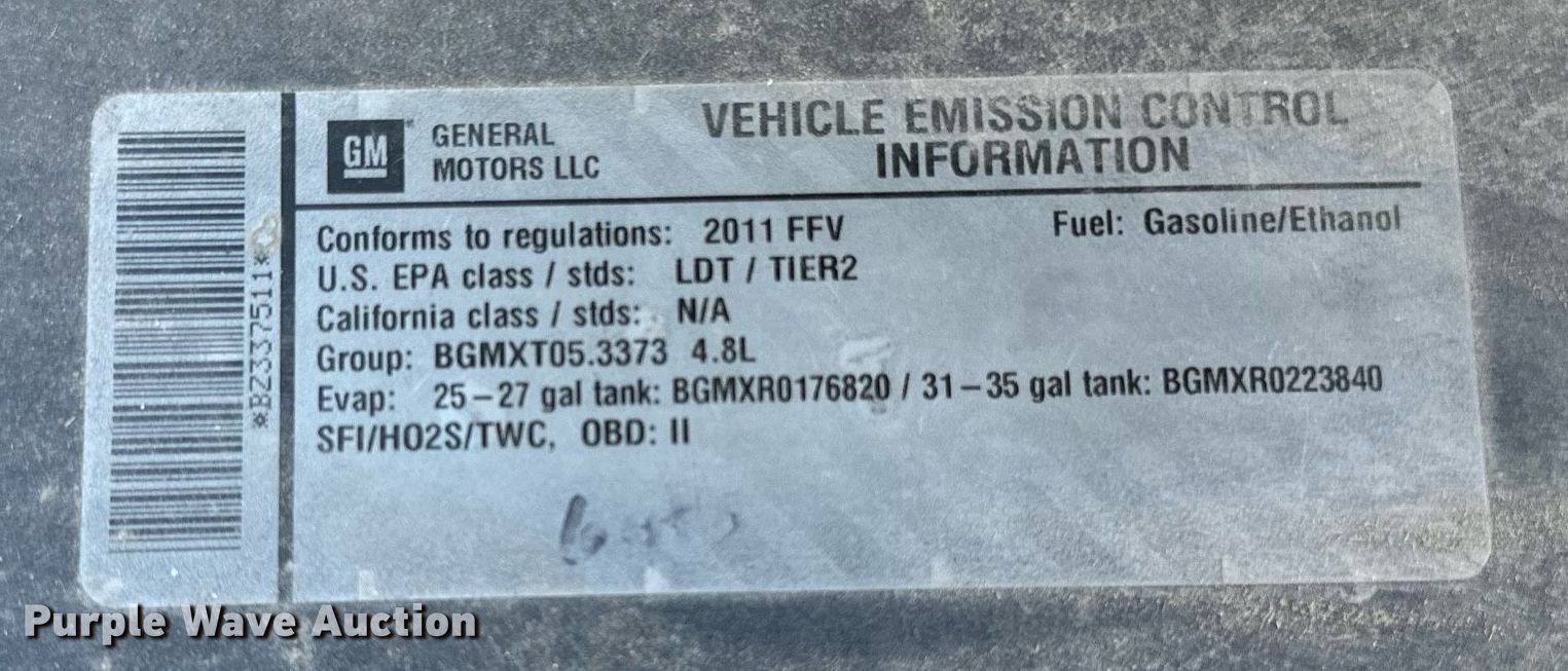 2011 Chevrolet Silverado 1500 pickup truck. Miles: 219,116 on odometer, VIN: 1GCNCPEA1BZ337511. Engine Displacement: 4.8L V8 OHV, Cylinders: 8, Fuel type: Gas. Transmission Automatic. Interior AC, Heat, Cruise control. Tires Size: 245/70R17. Notes Windshield chipped or cracked. Minnesota title. Title distribution may be delayed up to 14 days from verification of funds. People Service Inc.. Arlington, MN 55307