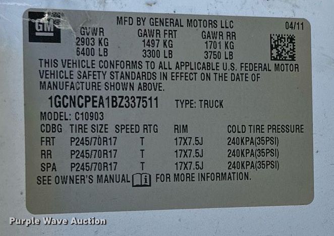 Purple Wave is selling a used 1/2 Ton Pickup or Van in Minnesota. This item is a 2011 Chevrolet Silverado 1500 pickup truck with the following: Miles: 219,116 on odometer, VIN: 1GCNCPEA1BZ337511