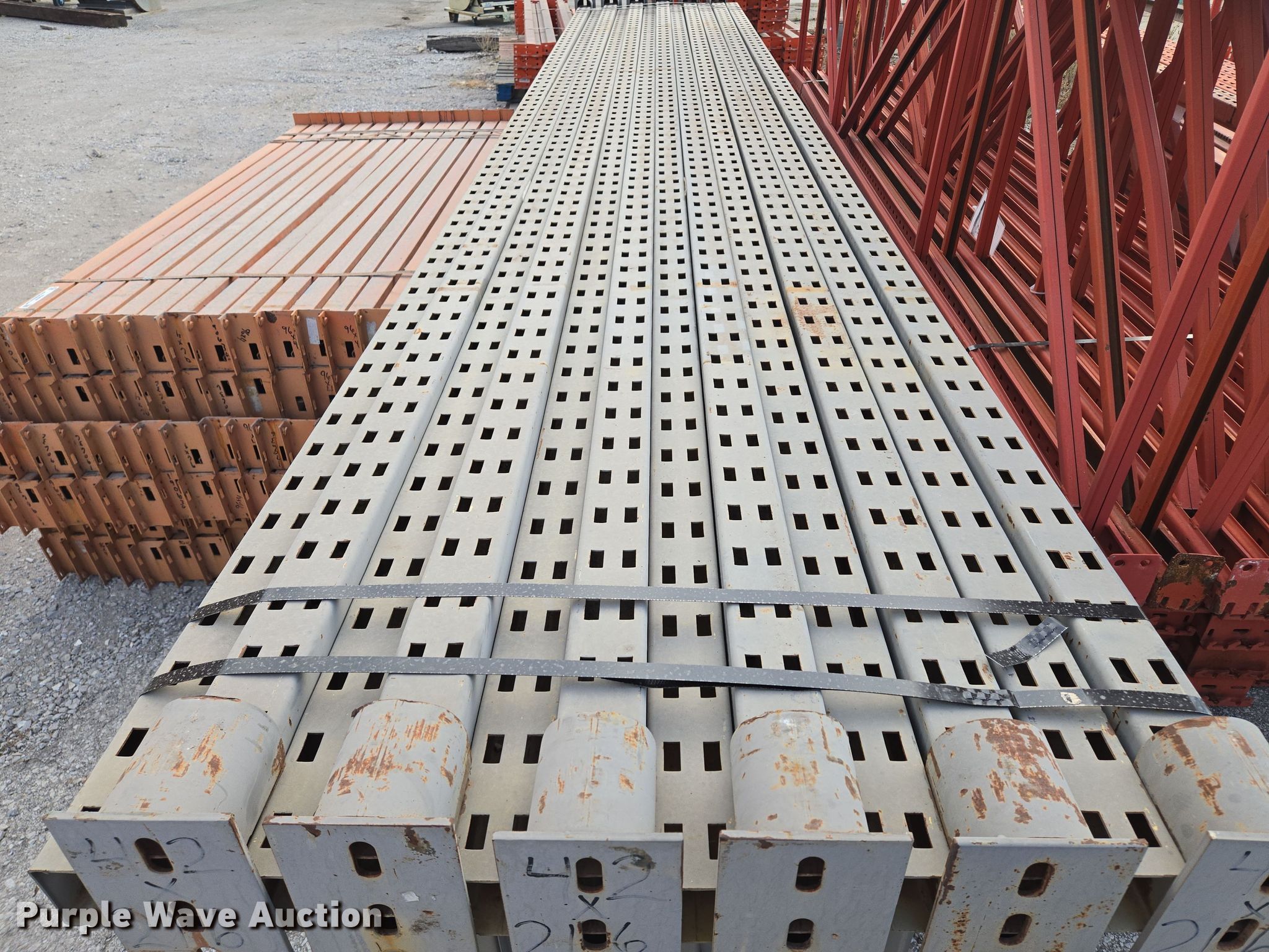 Purple Wave is selling a used Pallet Racking in Missouri. This item is a T-Bolt pallet racking with the following: Unit #: 868099, (12) 42" x 216" uprights, (88) 96" x 4" beams